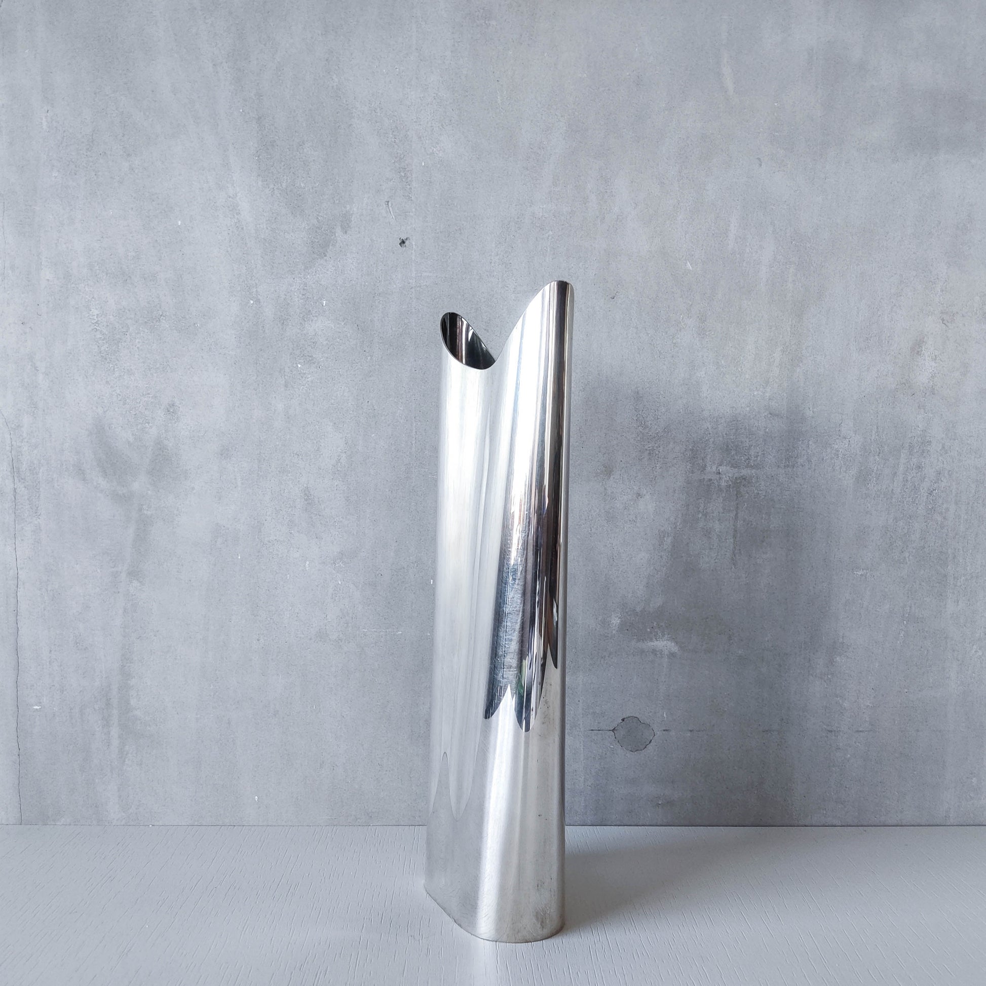 1980s Guido Niest Fala Atelier made in Italy silver plated modernist vase handmade Italy
