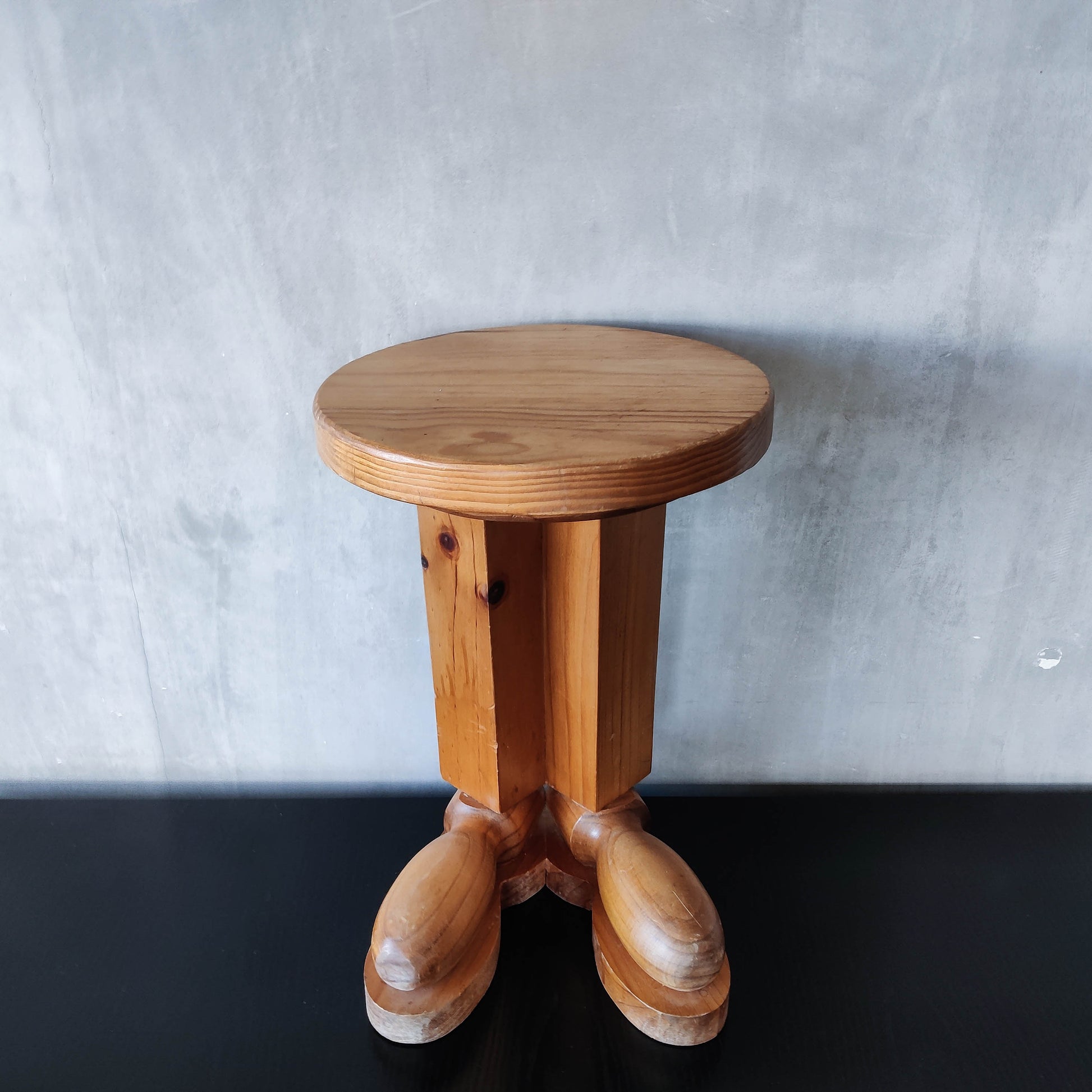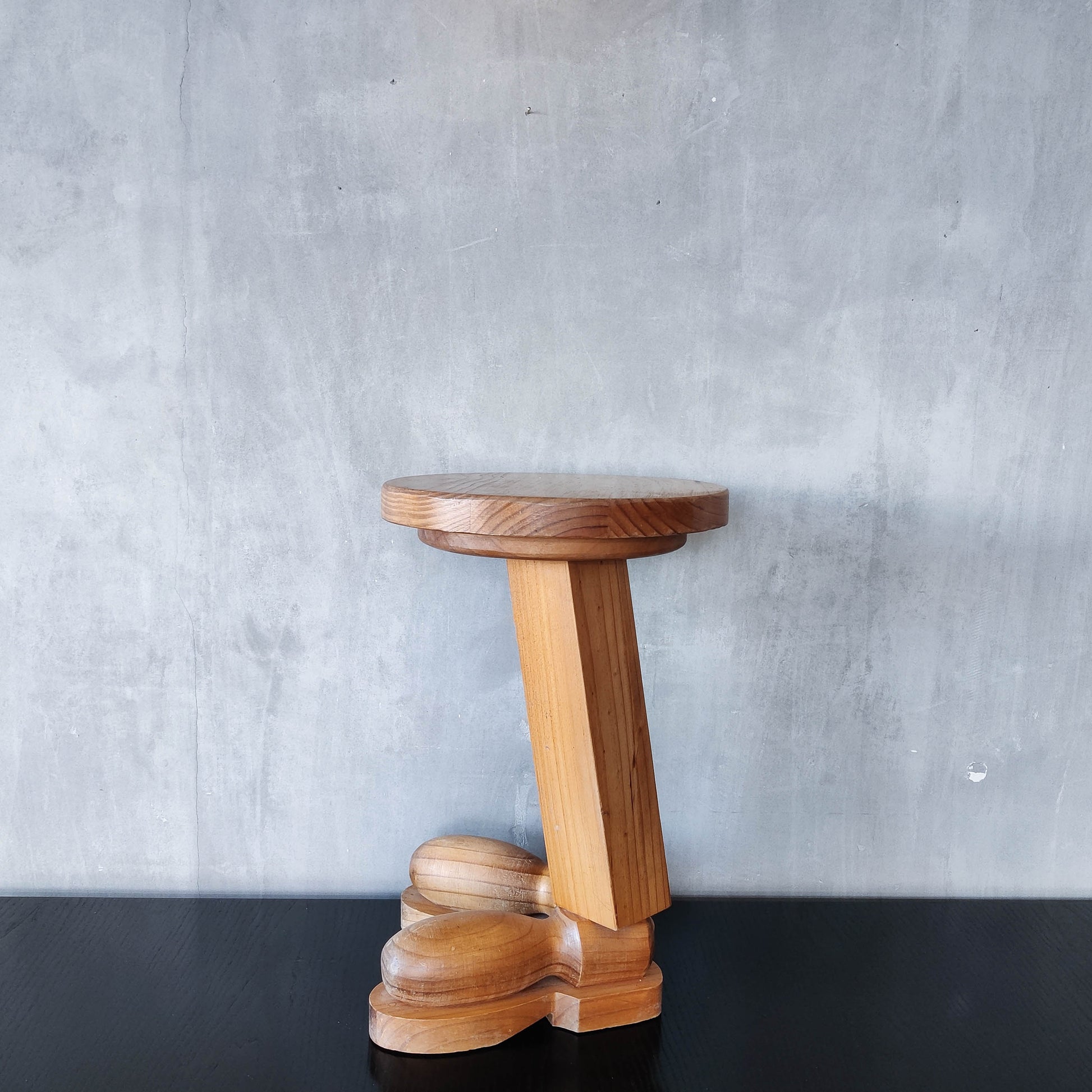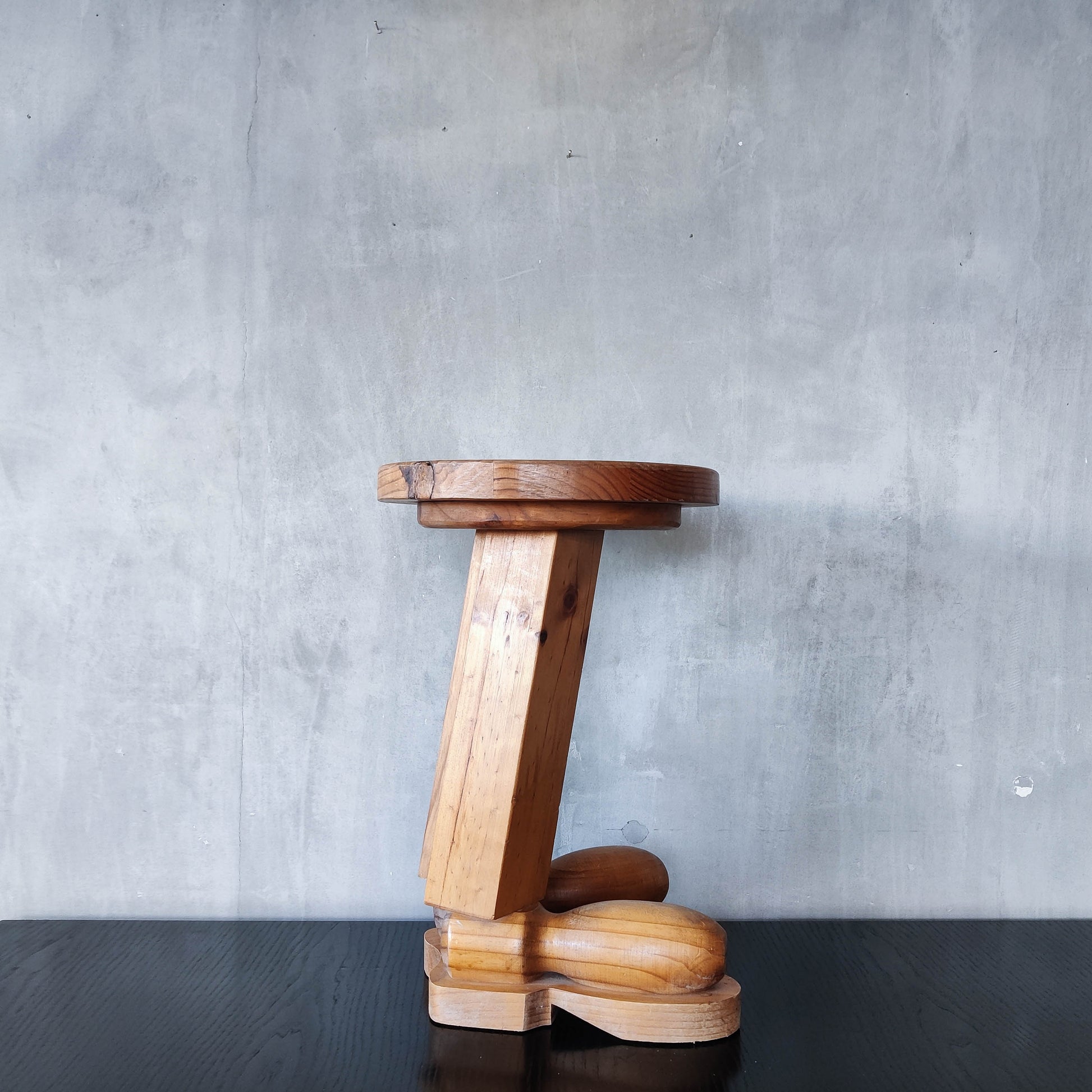 1980s postmodern whimsical pine stool table or plinth footed legs boots