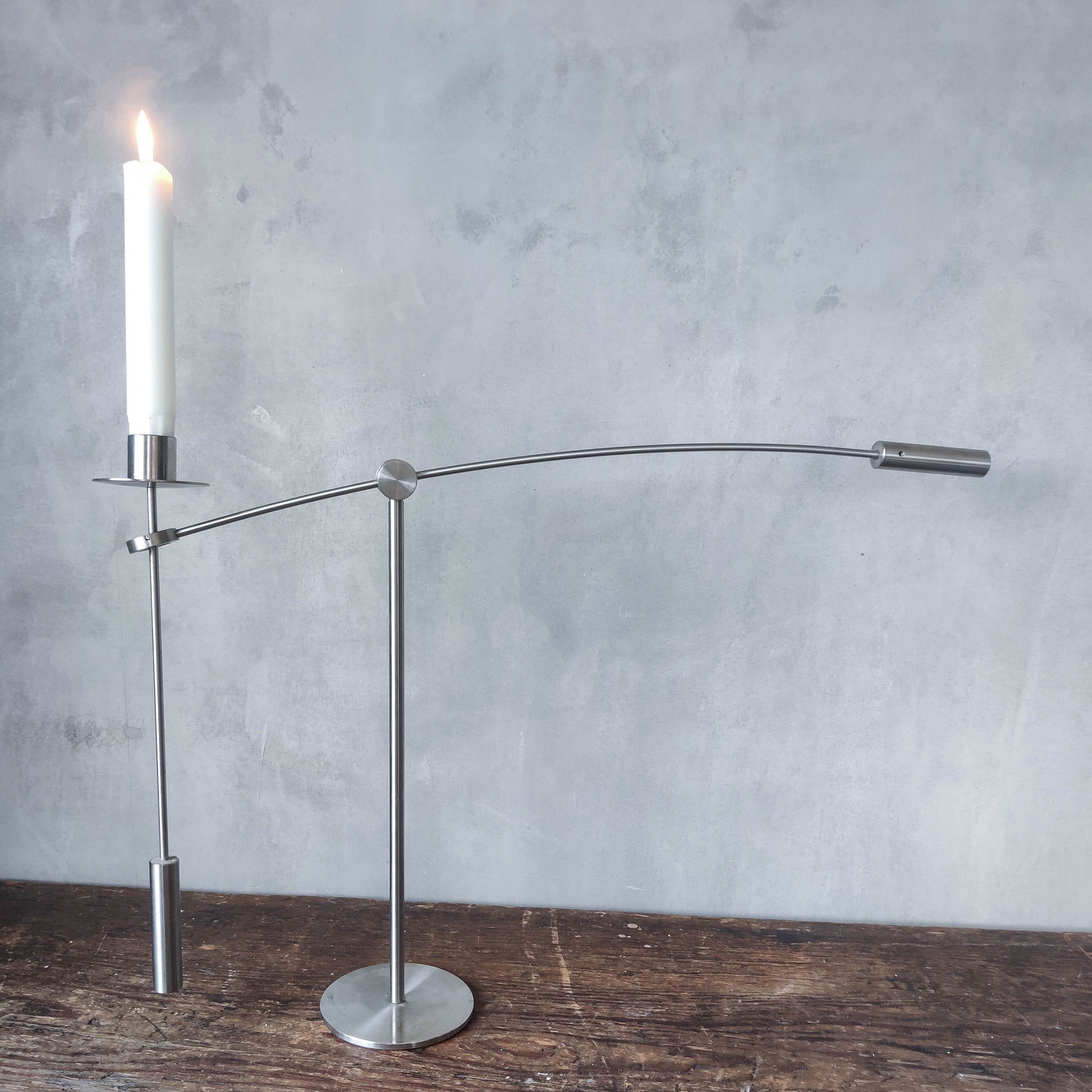 Vintage 1990s steel Duo Design "Libra" kinetic counterweight candle holder Dutch