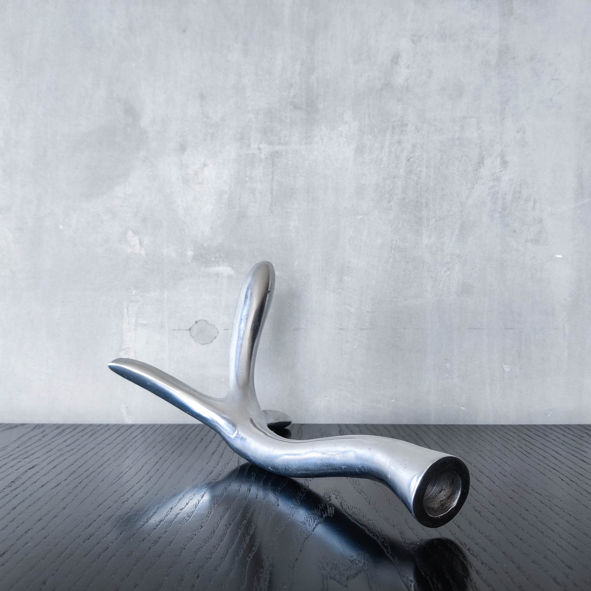 Vintage 1990s cast aluminium sculptural candle holder chrome organic branch form