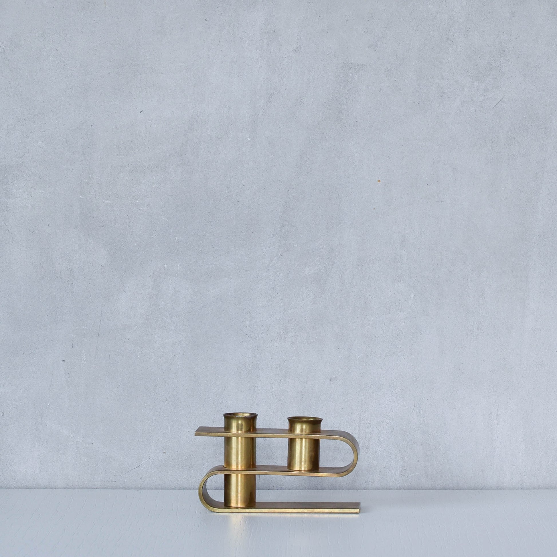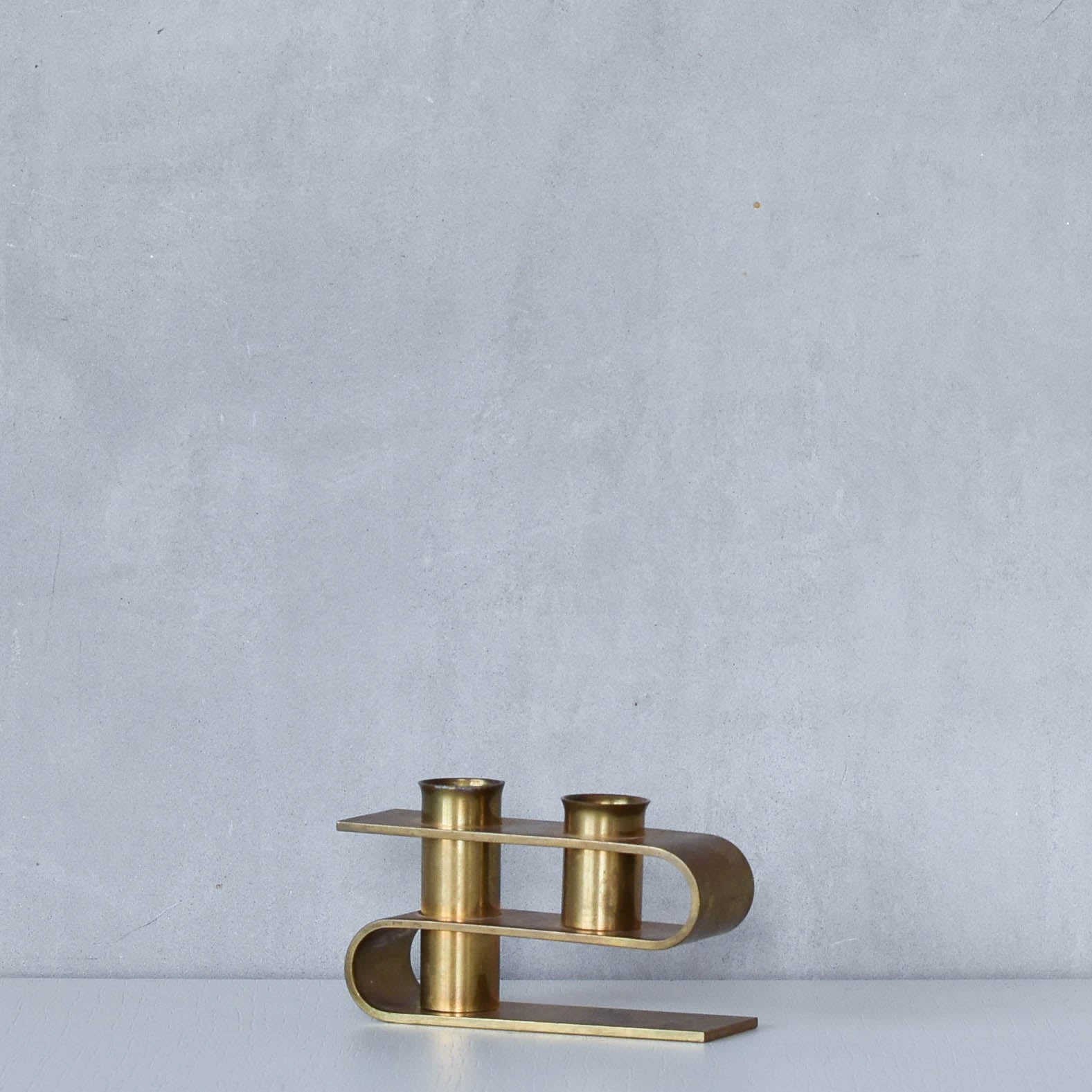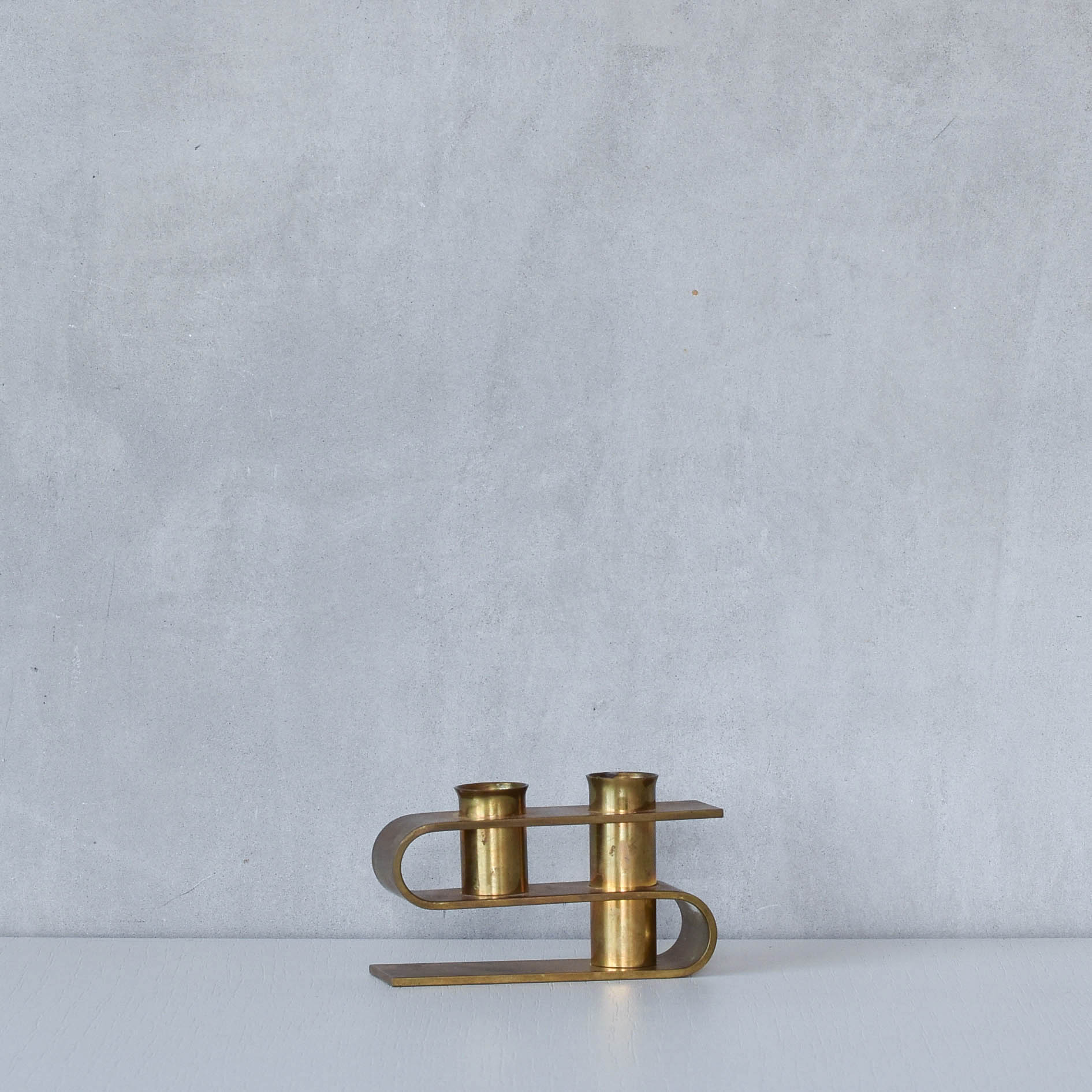 Vintage Scandinavian style sculptural S shaped candle holder brass mid century