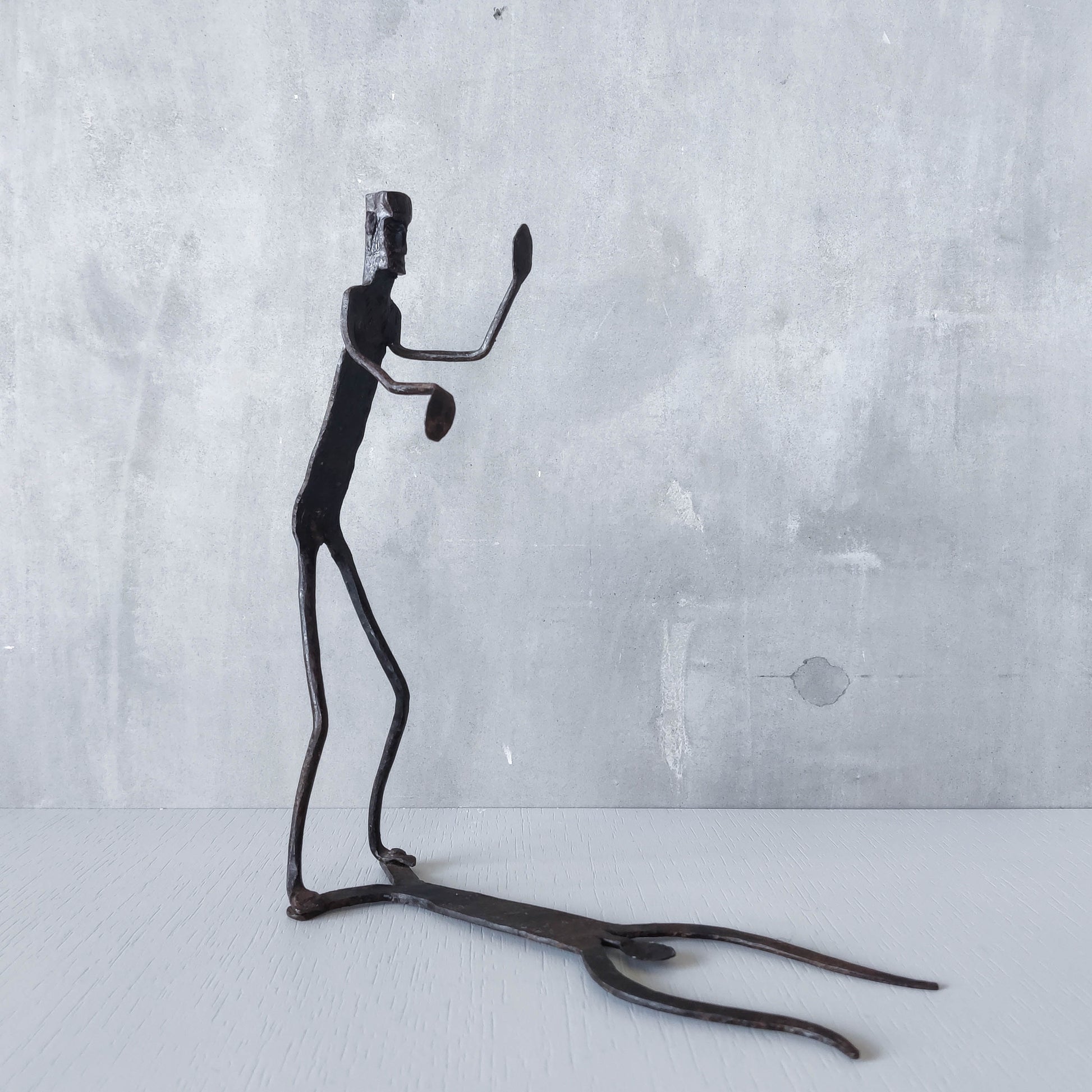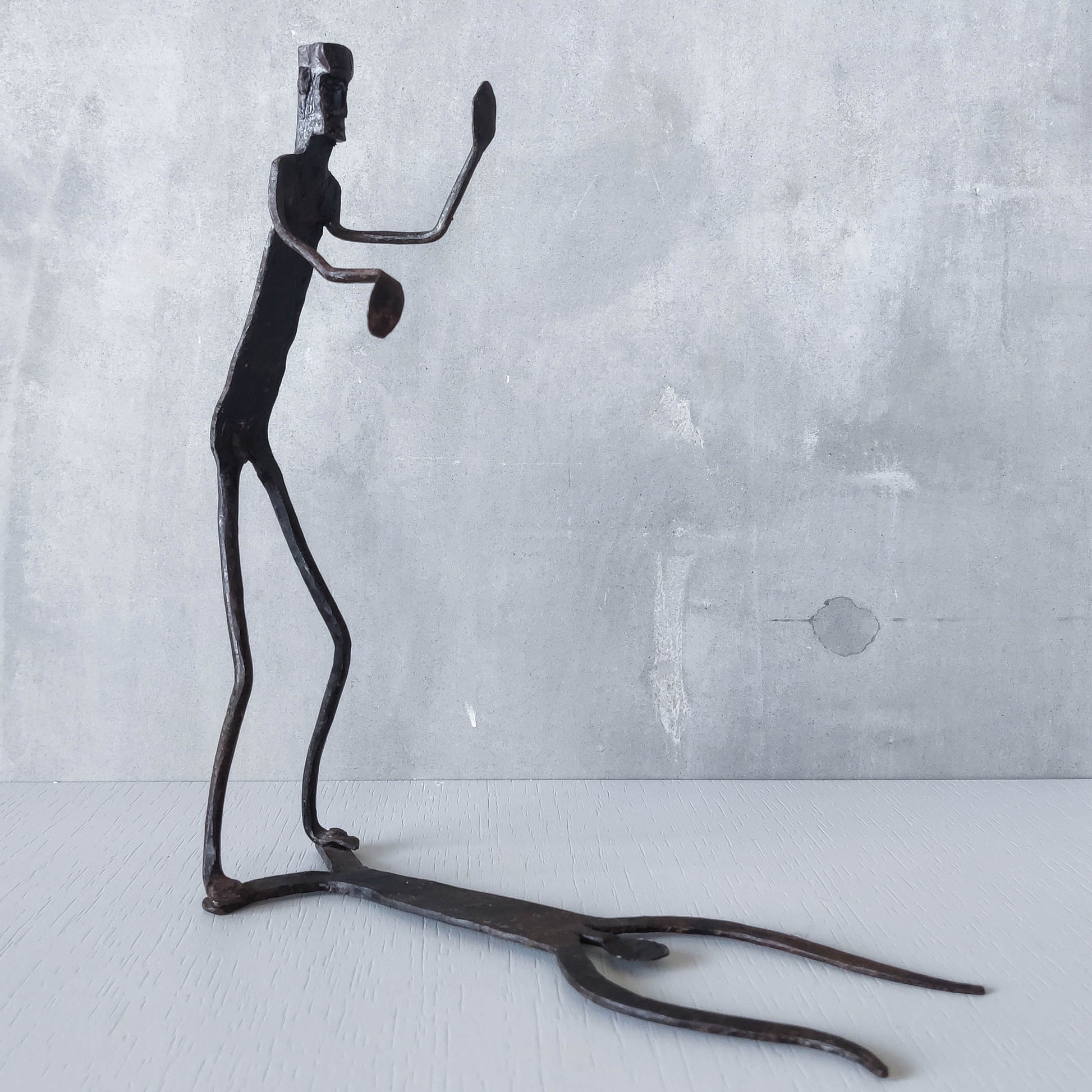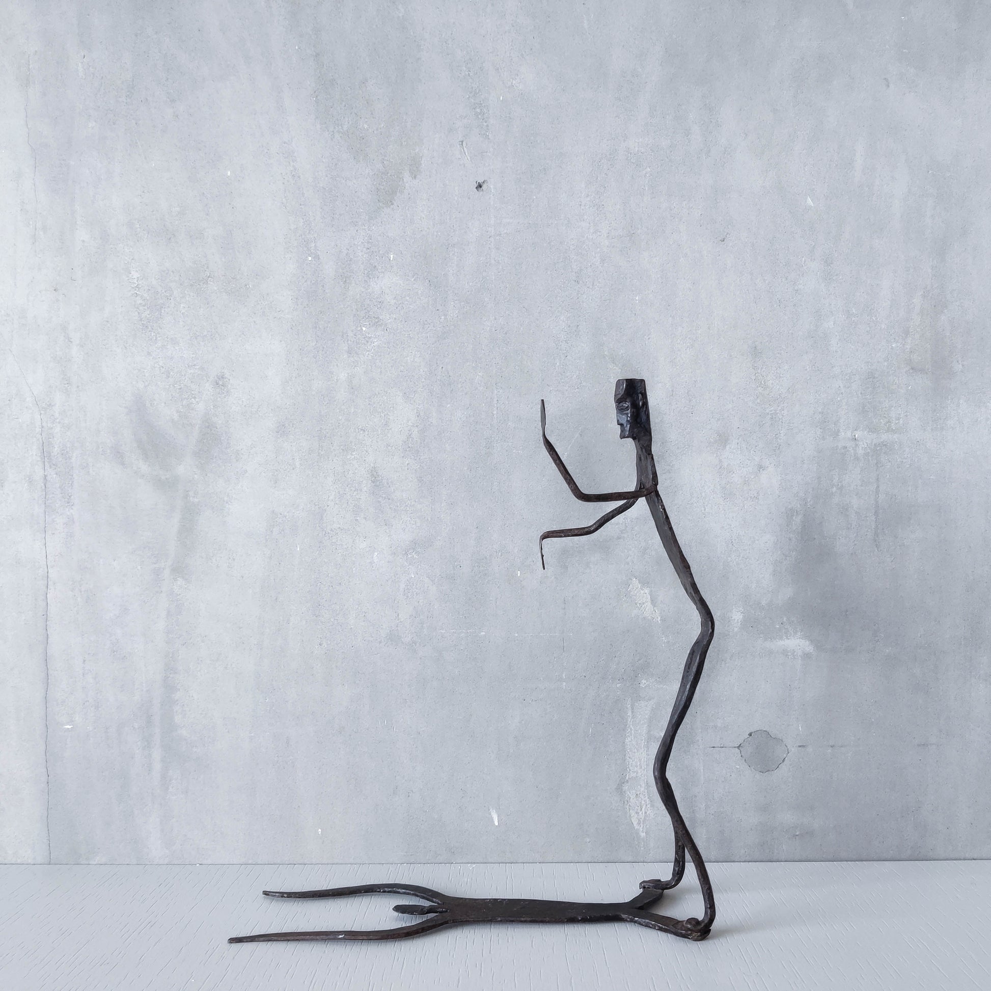 Brutalist wrought iron handmade figure with shadow sculpture or single bookend