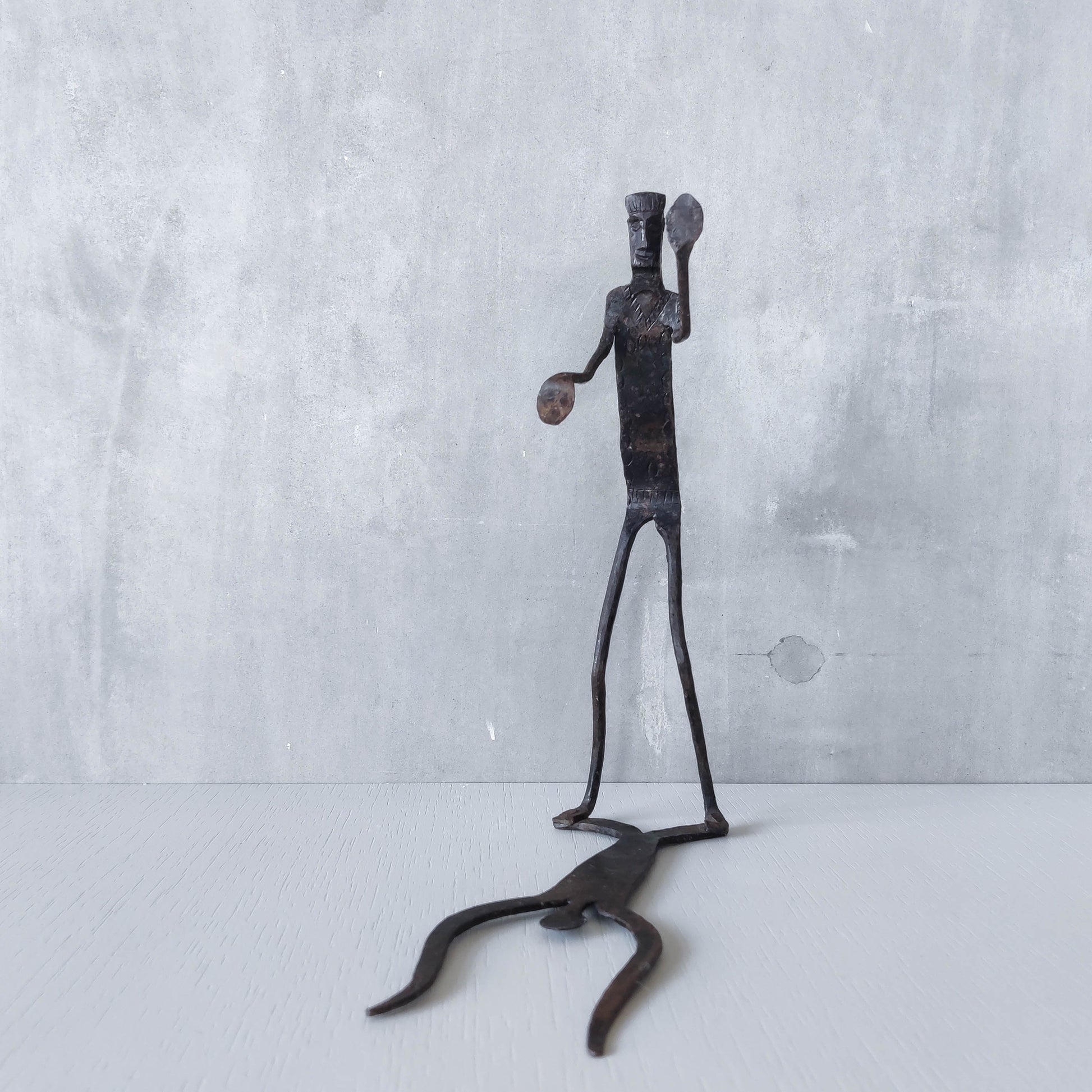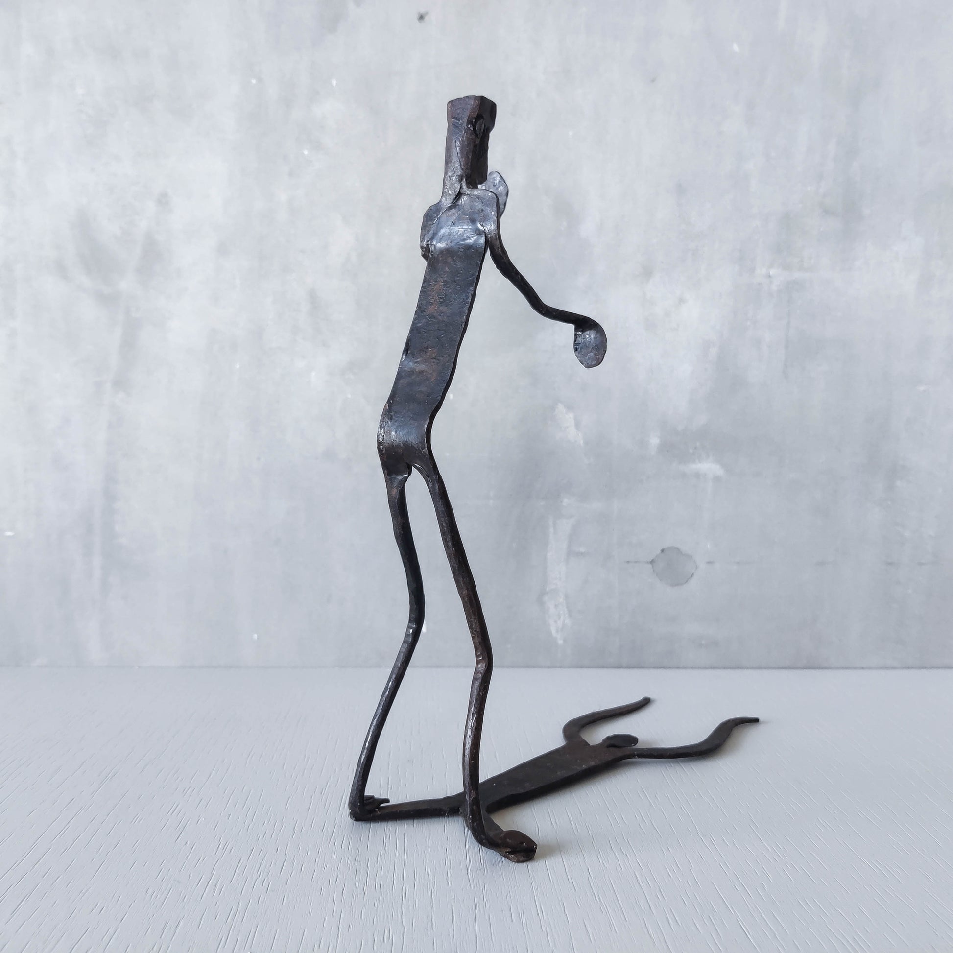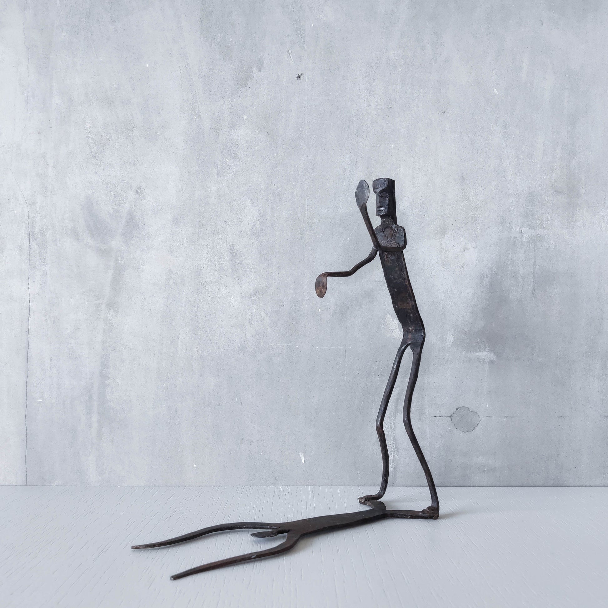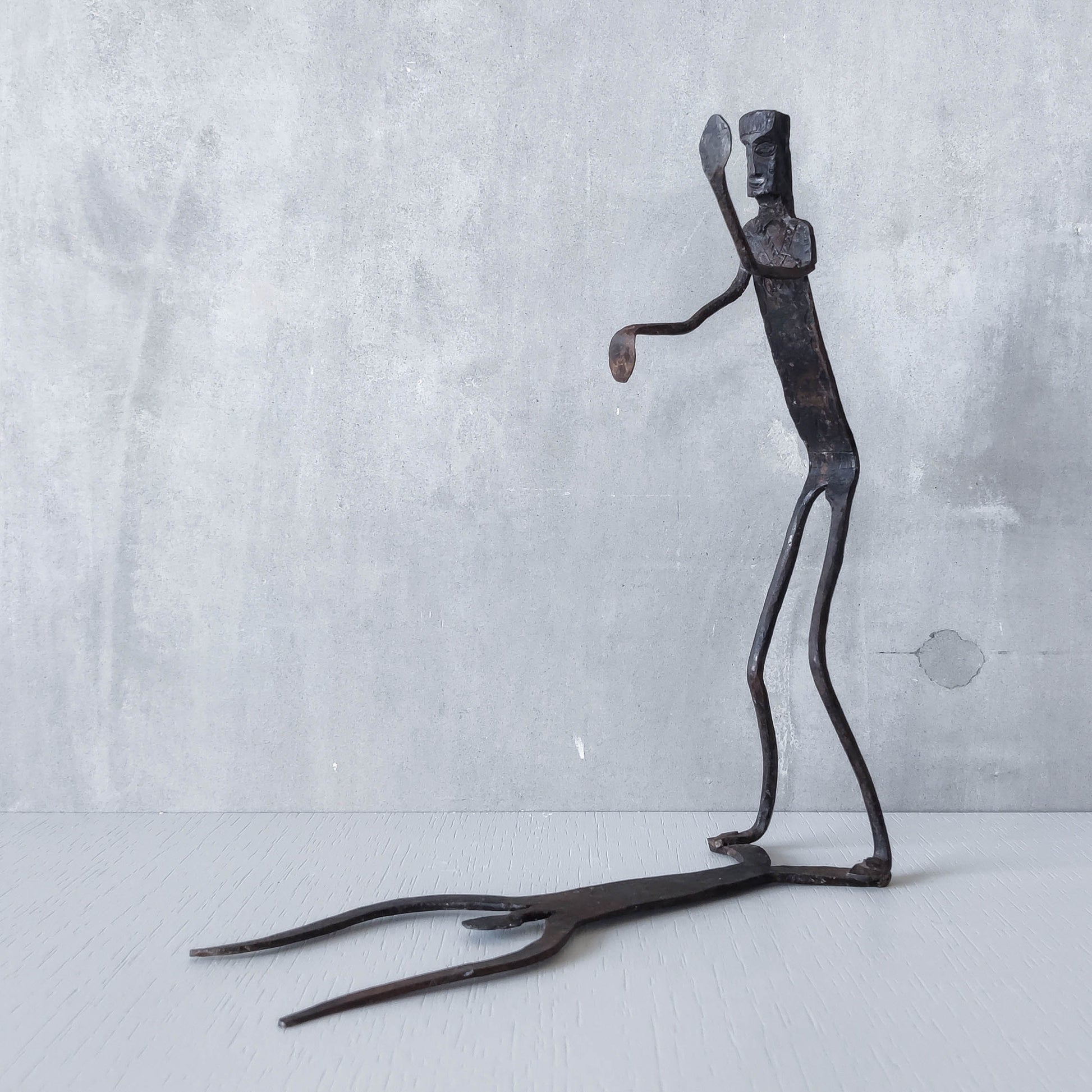 Brutalist wrought iron handmade figure with shadow sculpture or single bookend