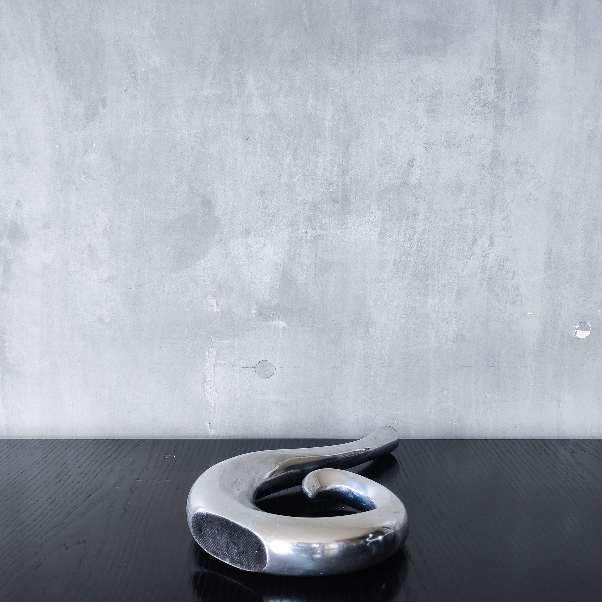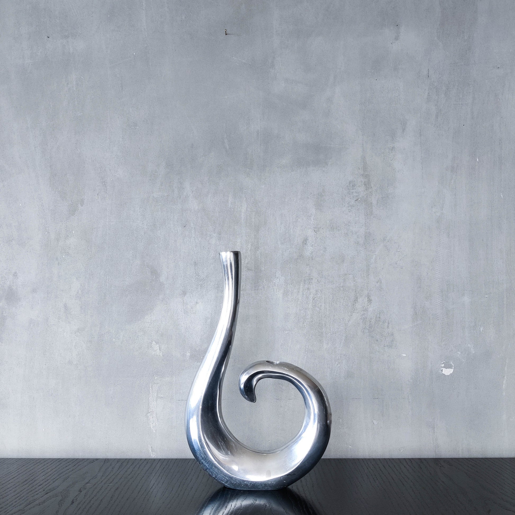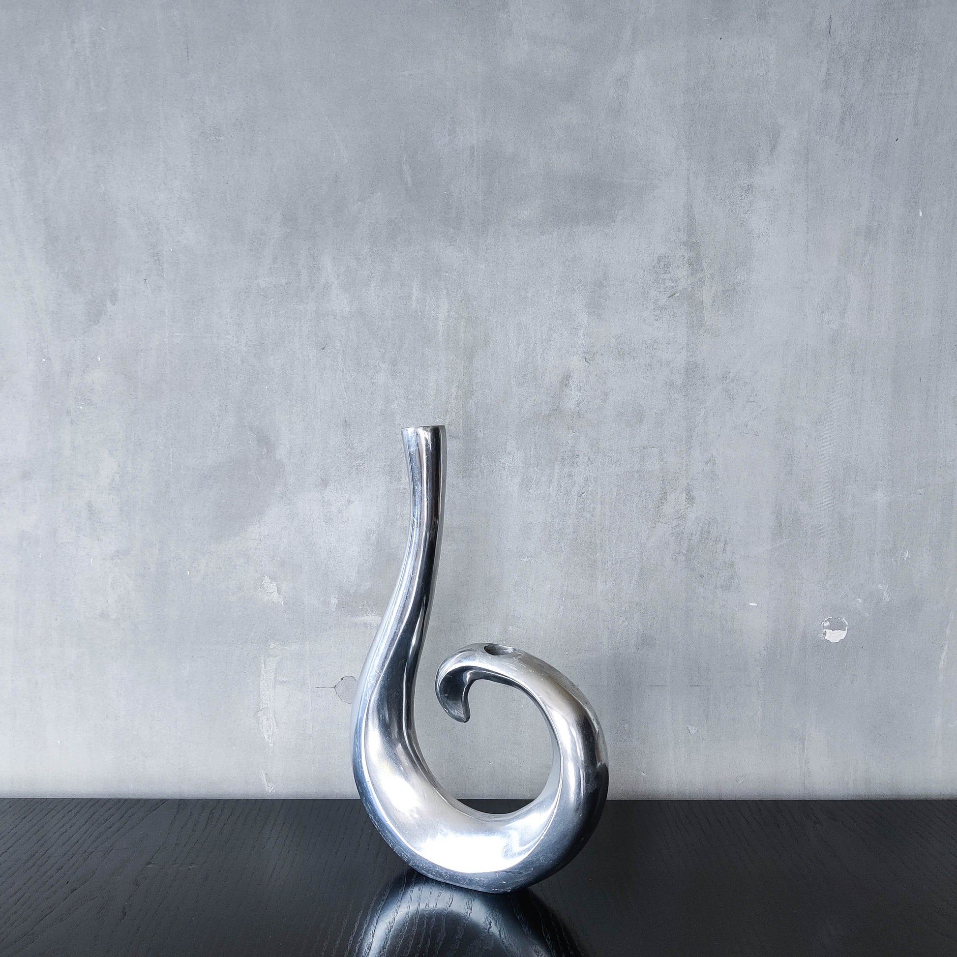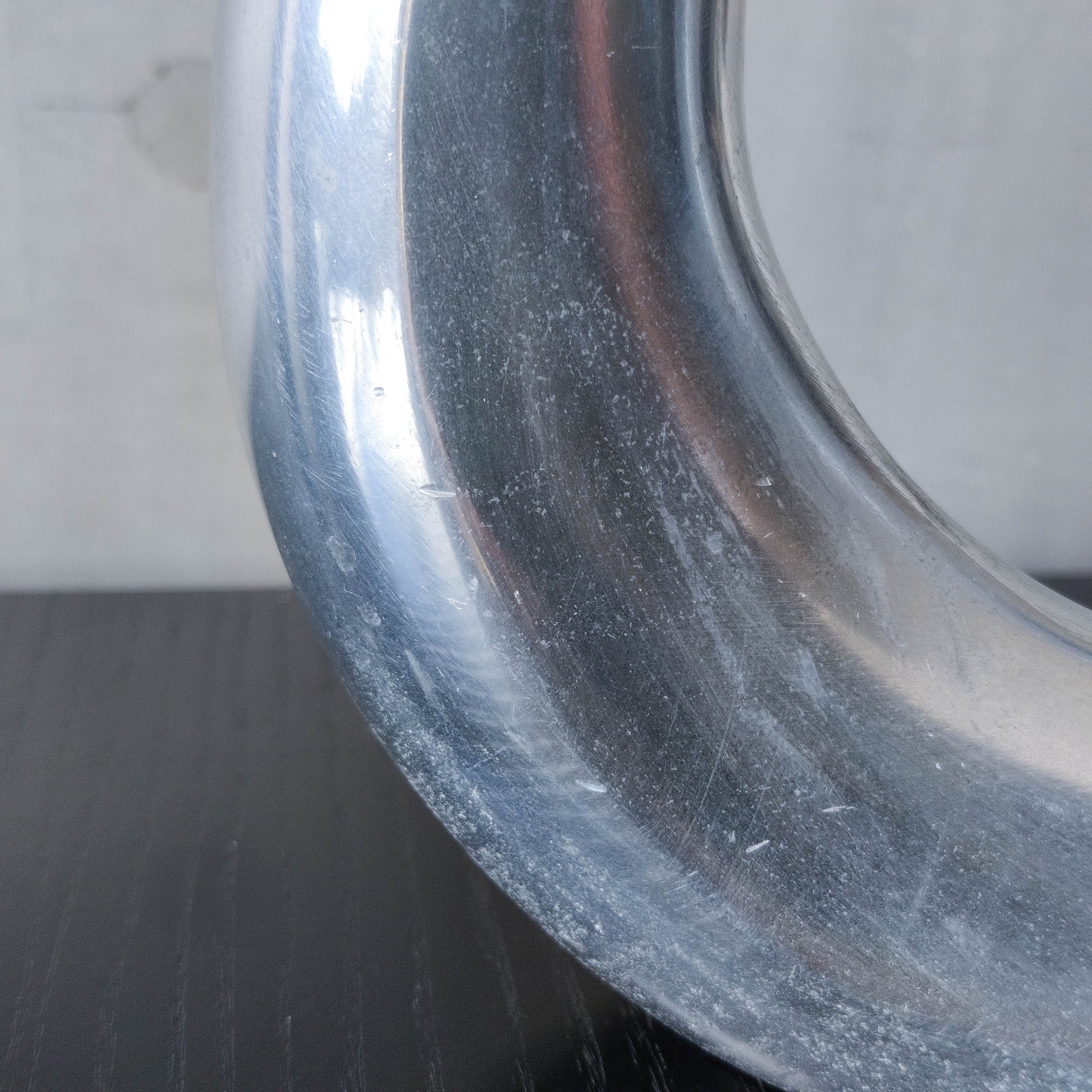 Elegant sculptural cast aluminium (with a chrome look) double candelabra/candle holder for dinner candles. Lovely scale and slightly organic form. Age unknown but I believe circa 1990s. Sorry candles not included. Please see photos and condition description.