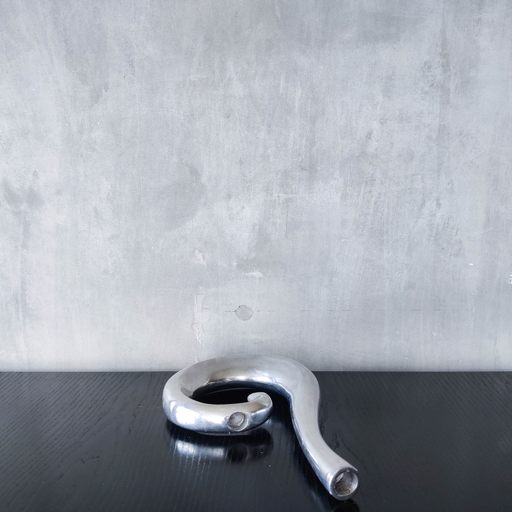 Vintage 1990s cast aluminium sculptural double candle holder candelabra