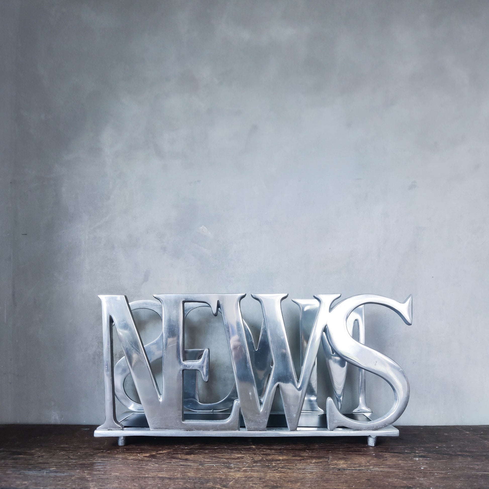 Vintage 00s cast aluminium metal magazine rack holder stand