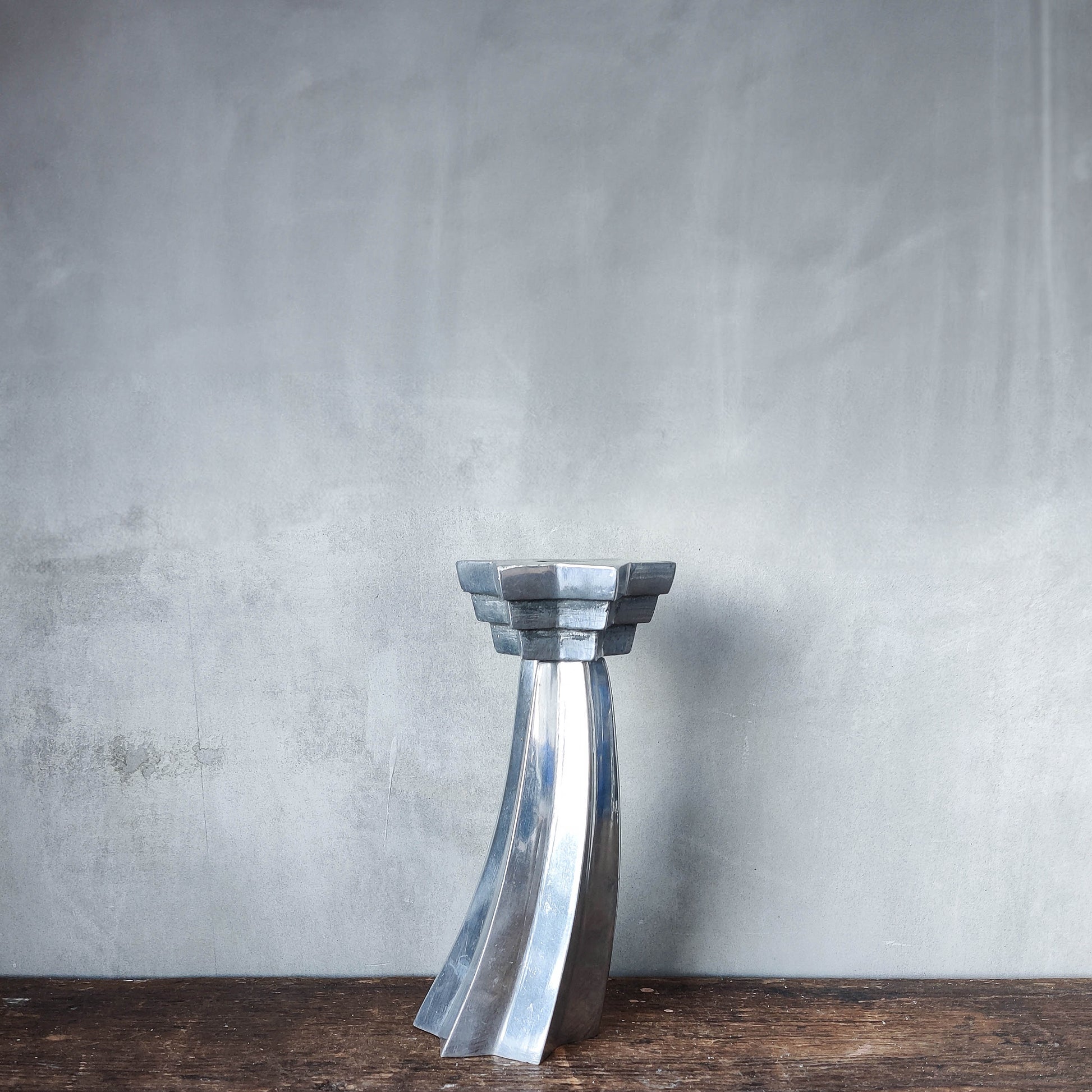 Vintage cast aluminium sculptural Deco stepped star celestial candle holder