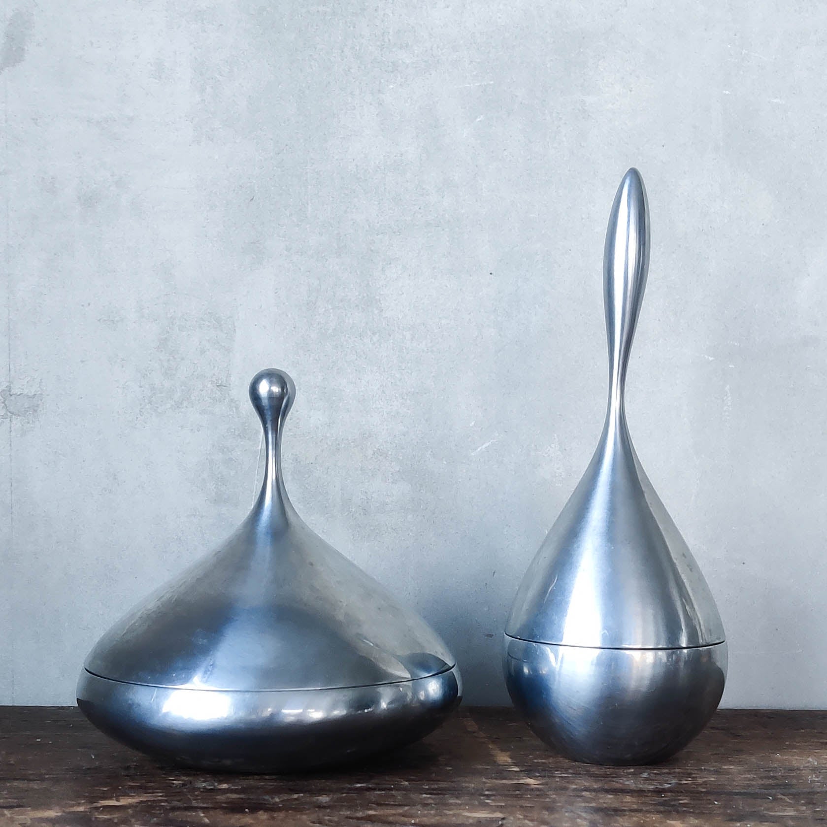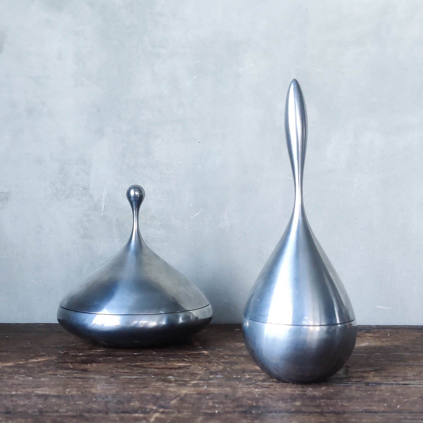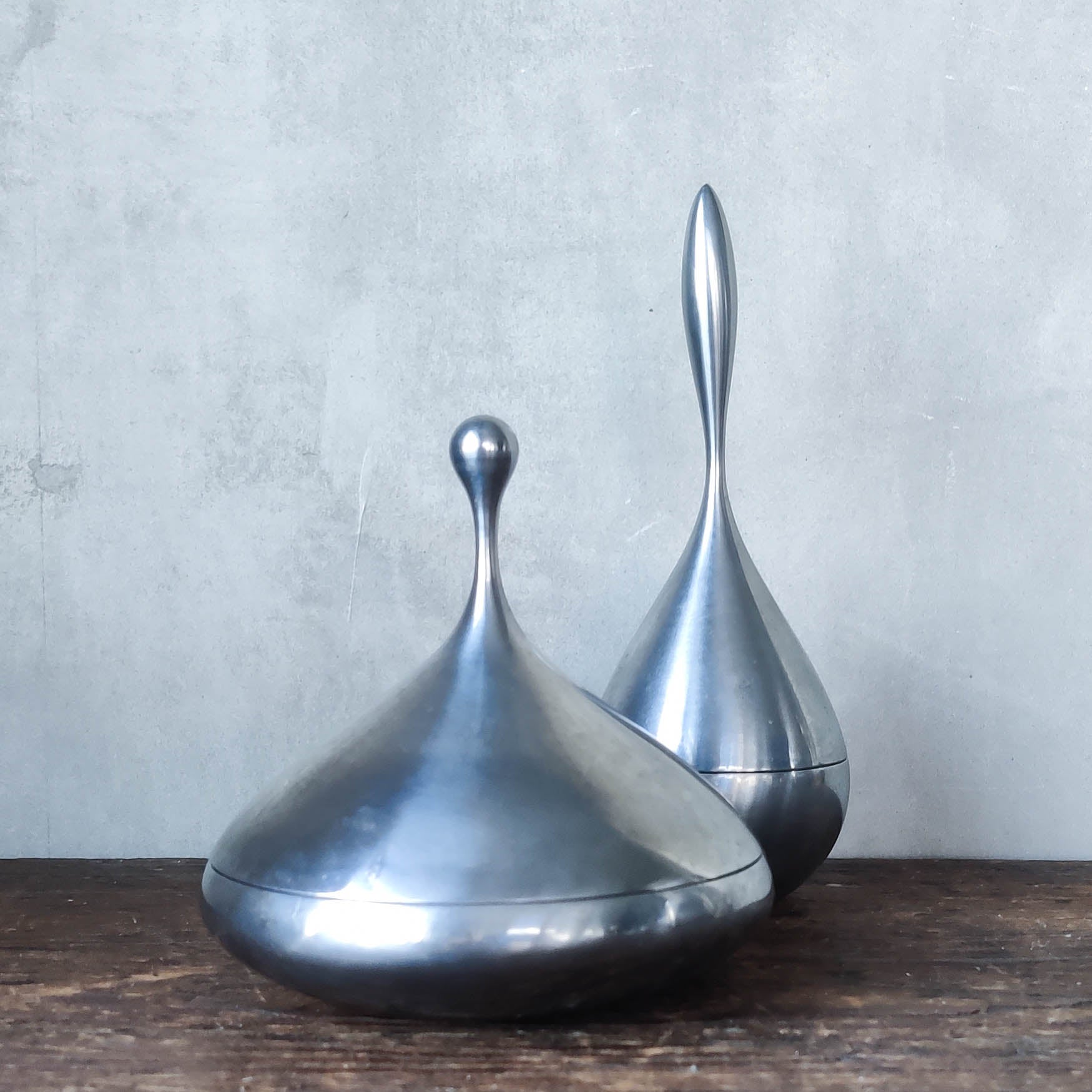 Vintage 2 x cast aluminium jewellery flacon trinket box pot Louise Christ Danish