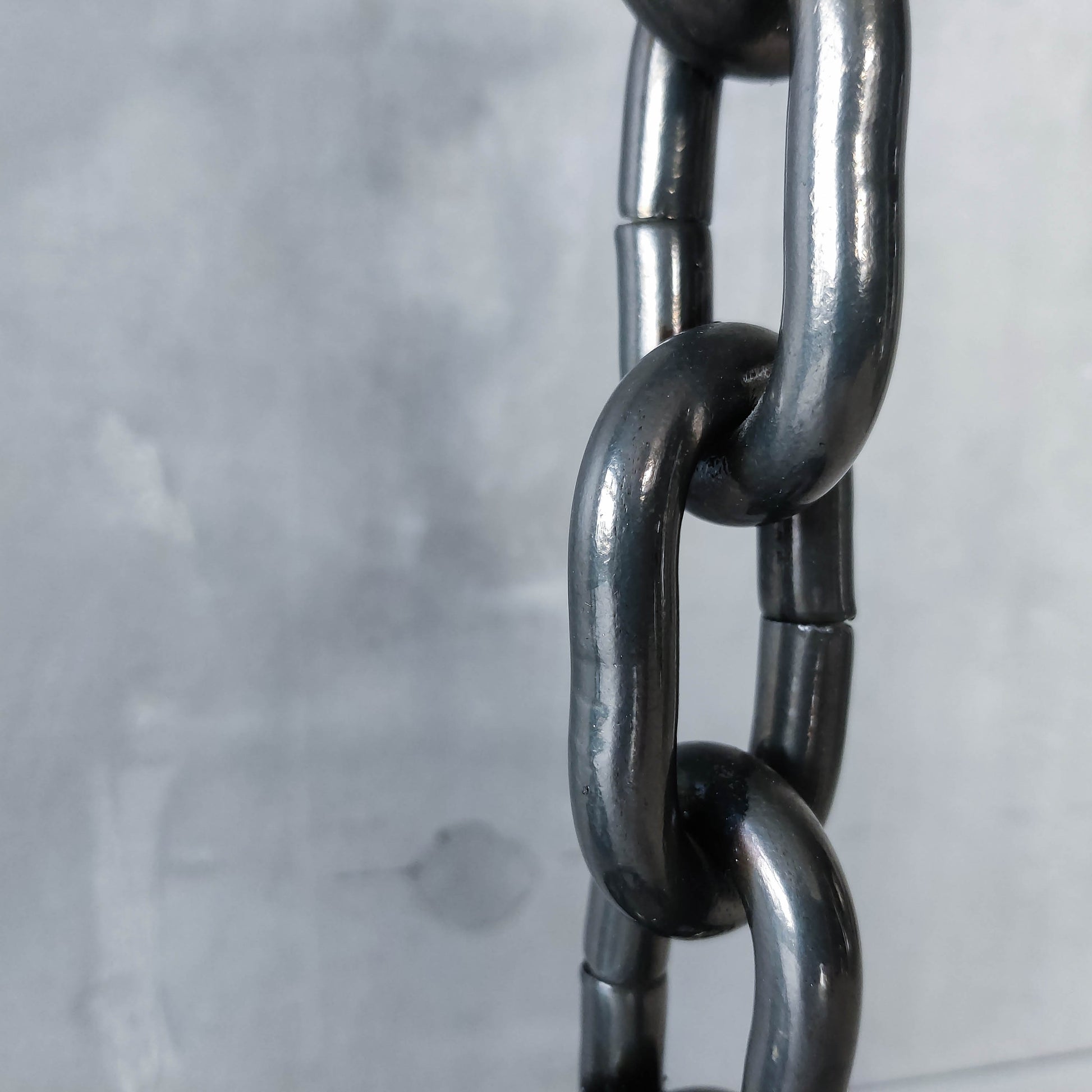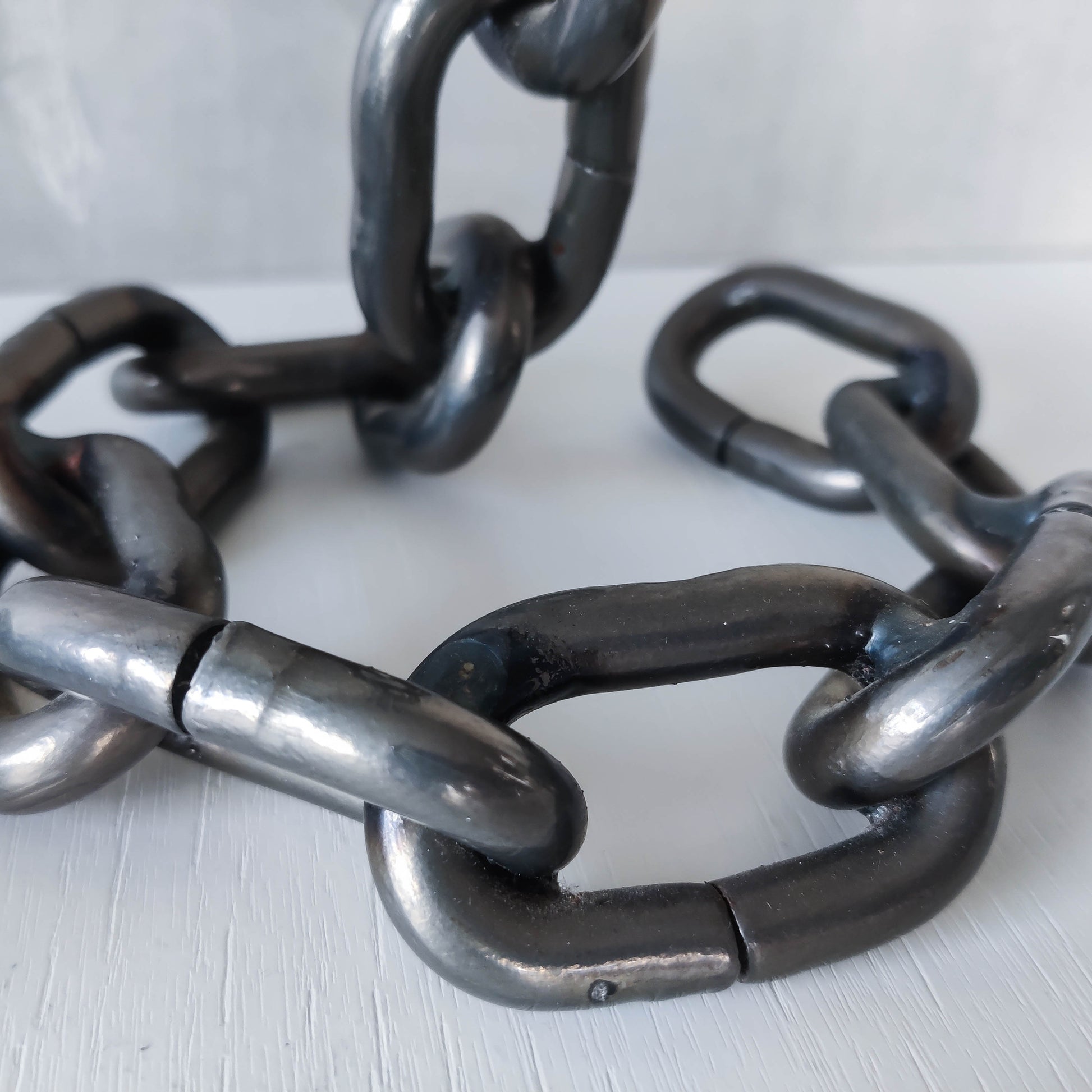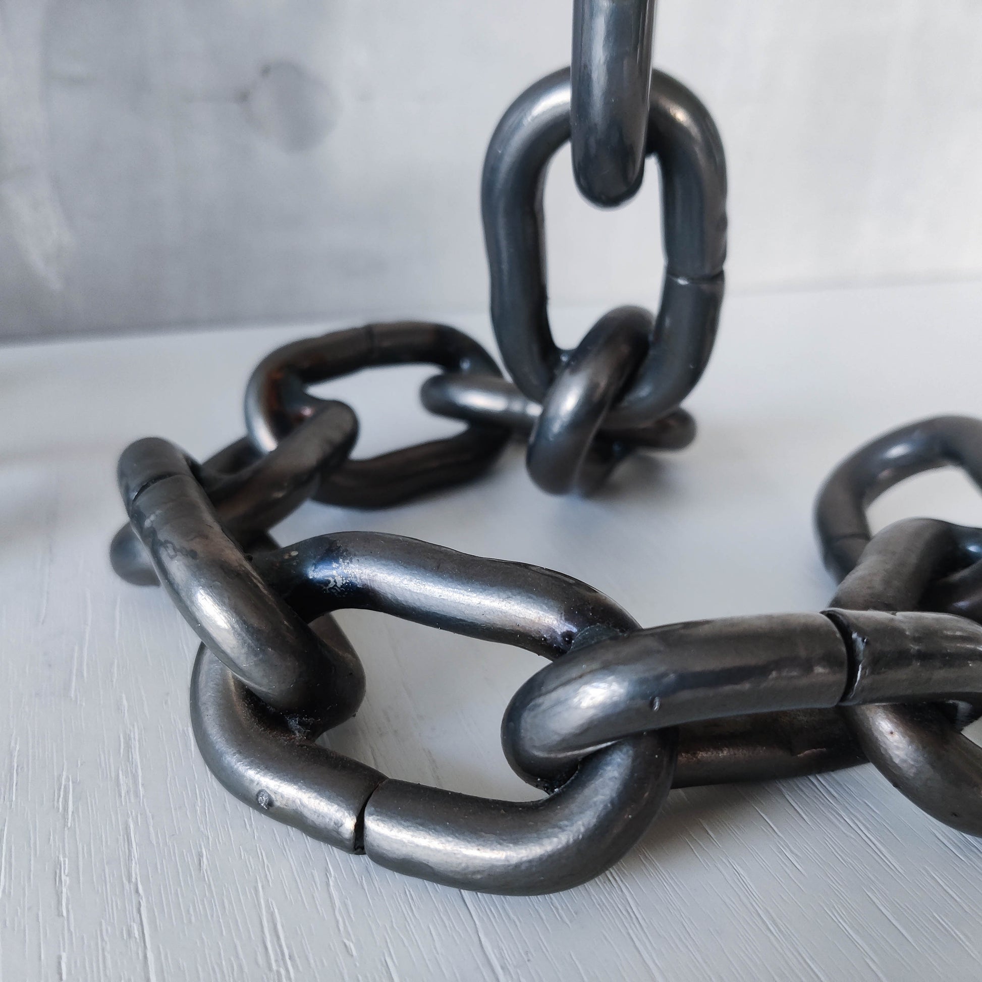 Pair of brutalist heavy hand welded steel chain link sculptural candle holders
