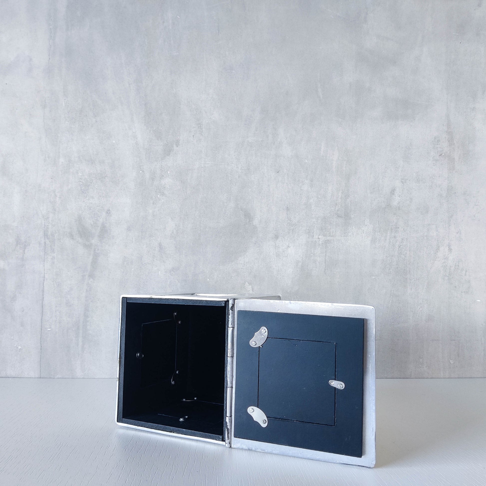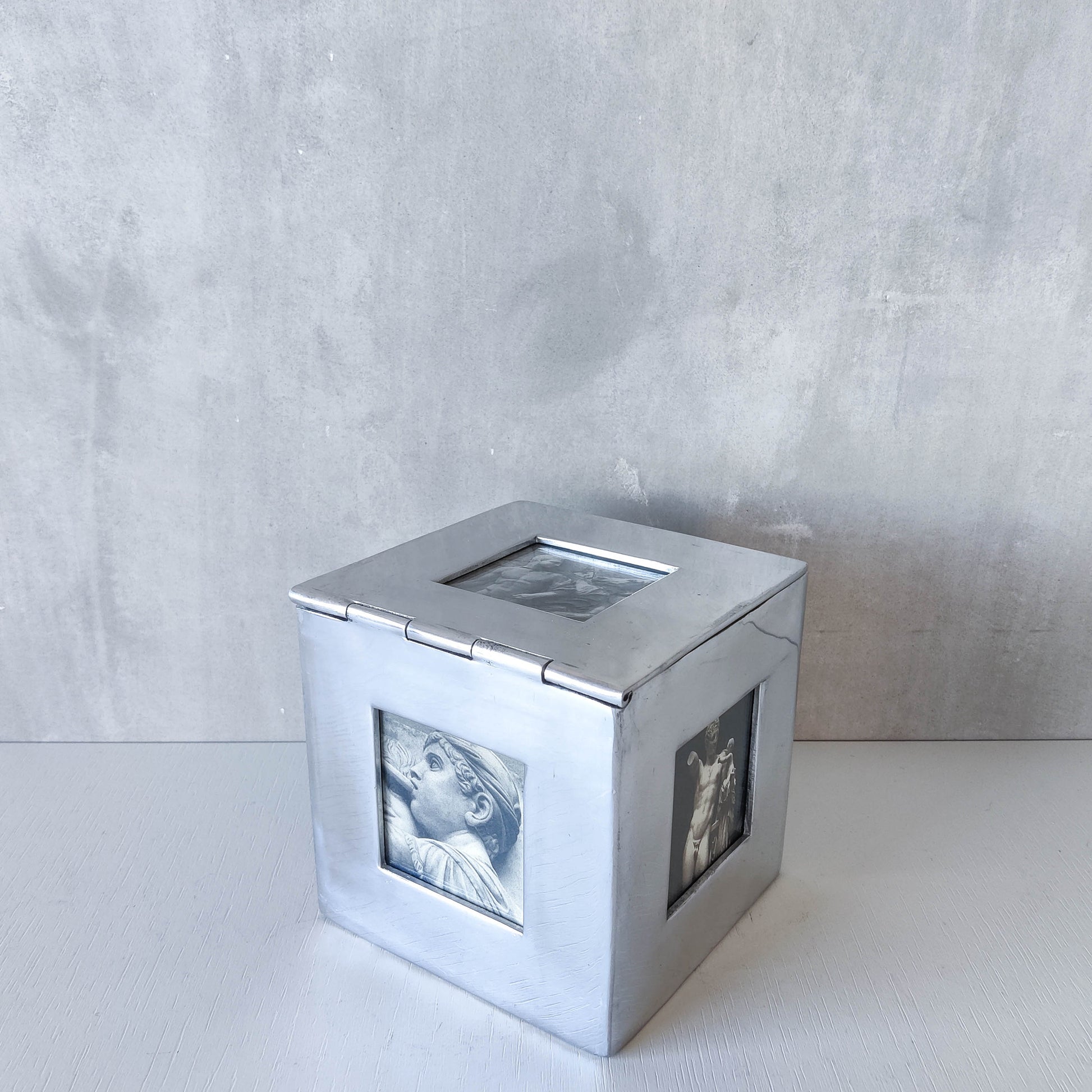 Vintage sculptural chunky cast aluminium 00s photo box cube for 5 x photos. Nicely made and lined in board. Please see photos and condition description.