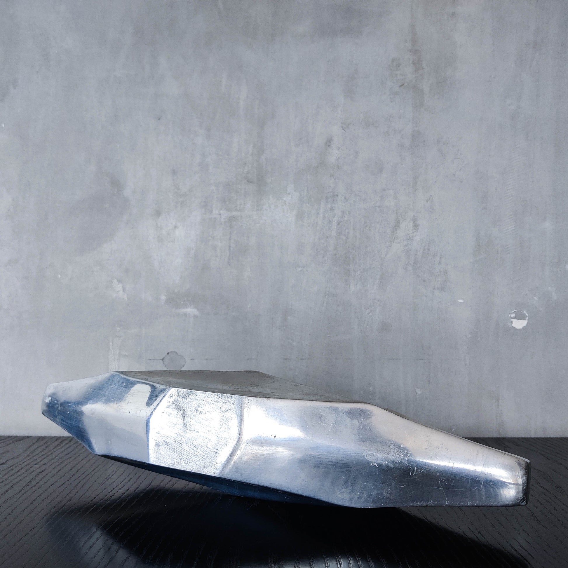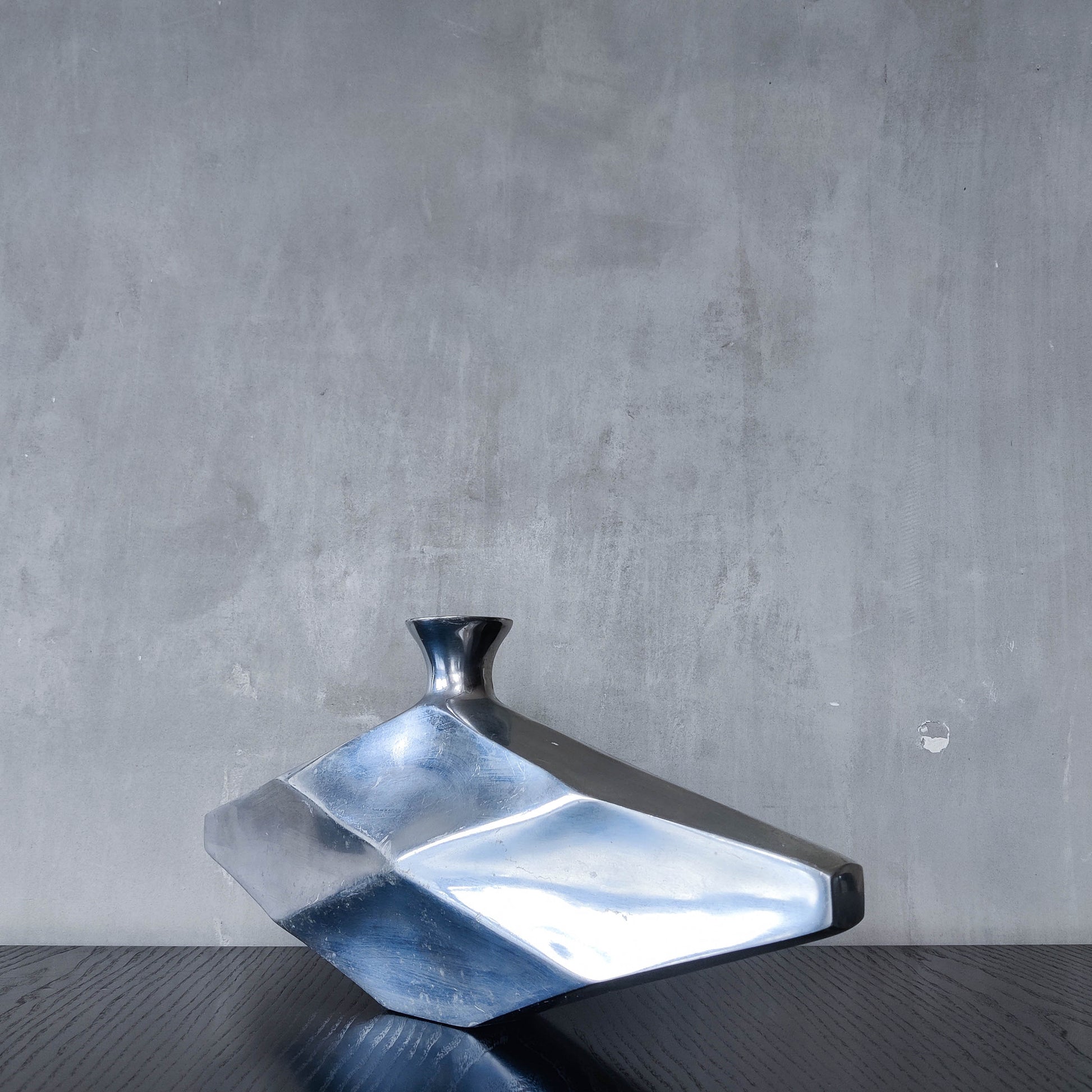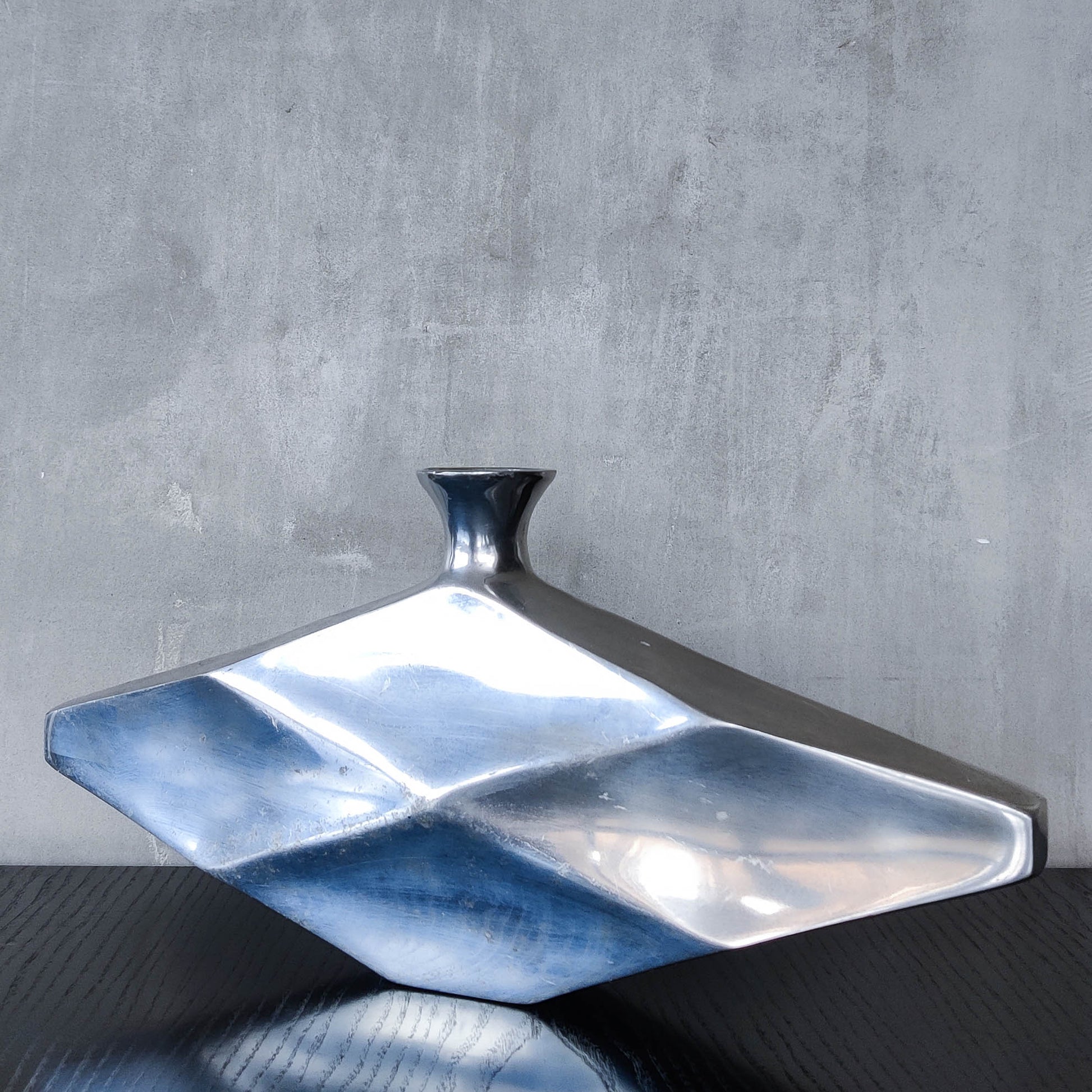 Vintage 1990s hand cast aluminium modernist sculptural vessel faceted vase form