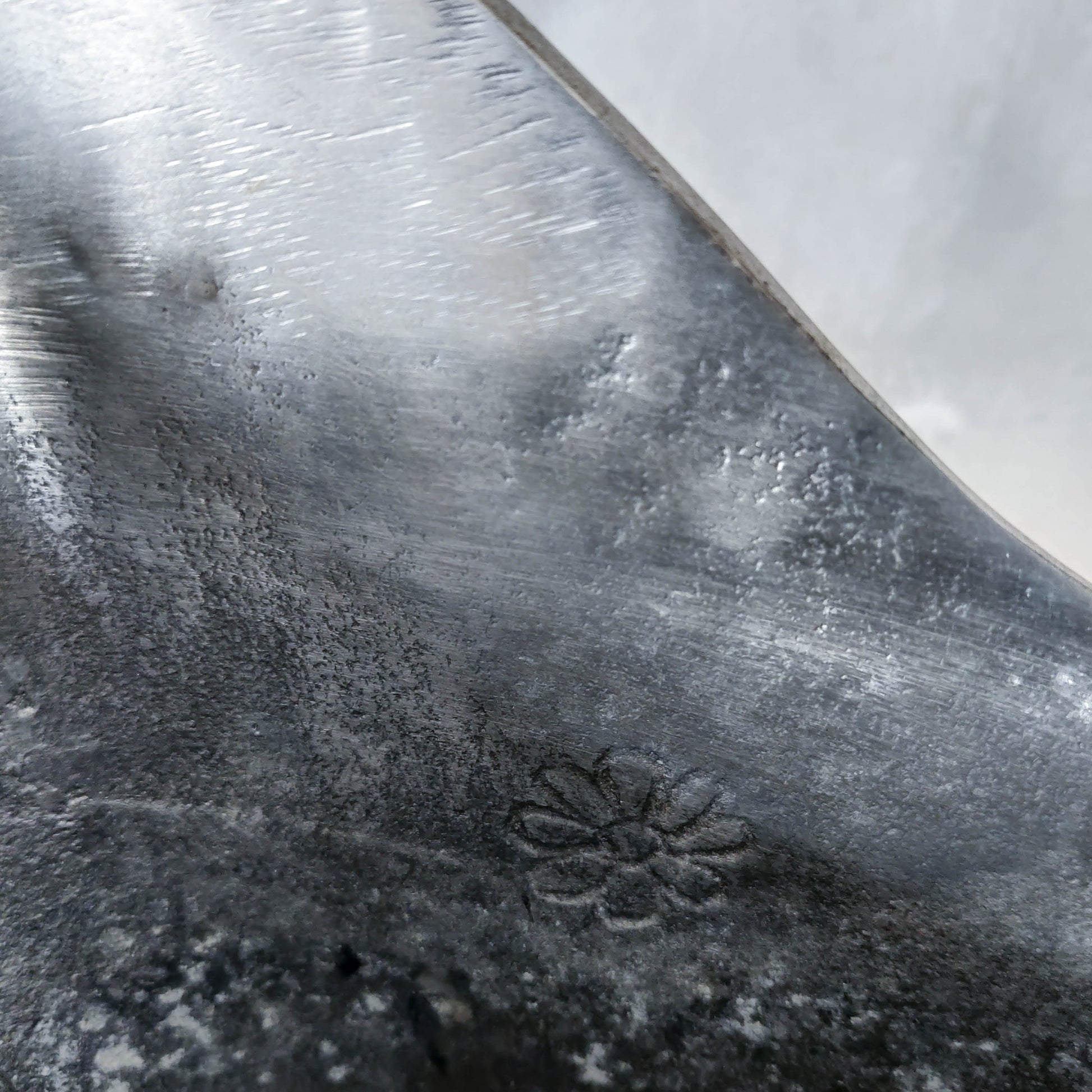 Condition: Some light scratches, light dulling and tarnishing, a little ding on one of the edges but externally generally very good. Some light tarnish inside from water use. Generally overall good. Some lovely tool marks from the casting process.