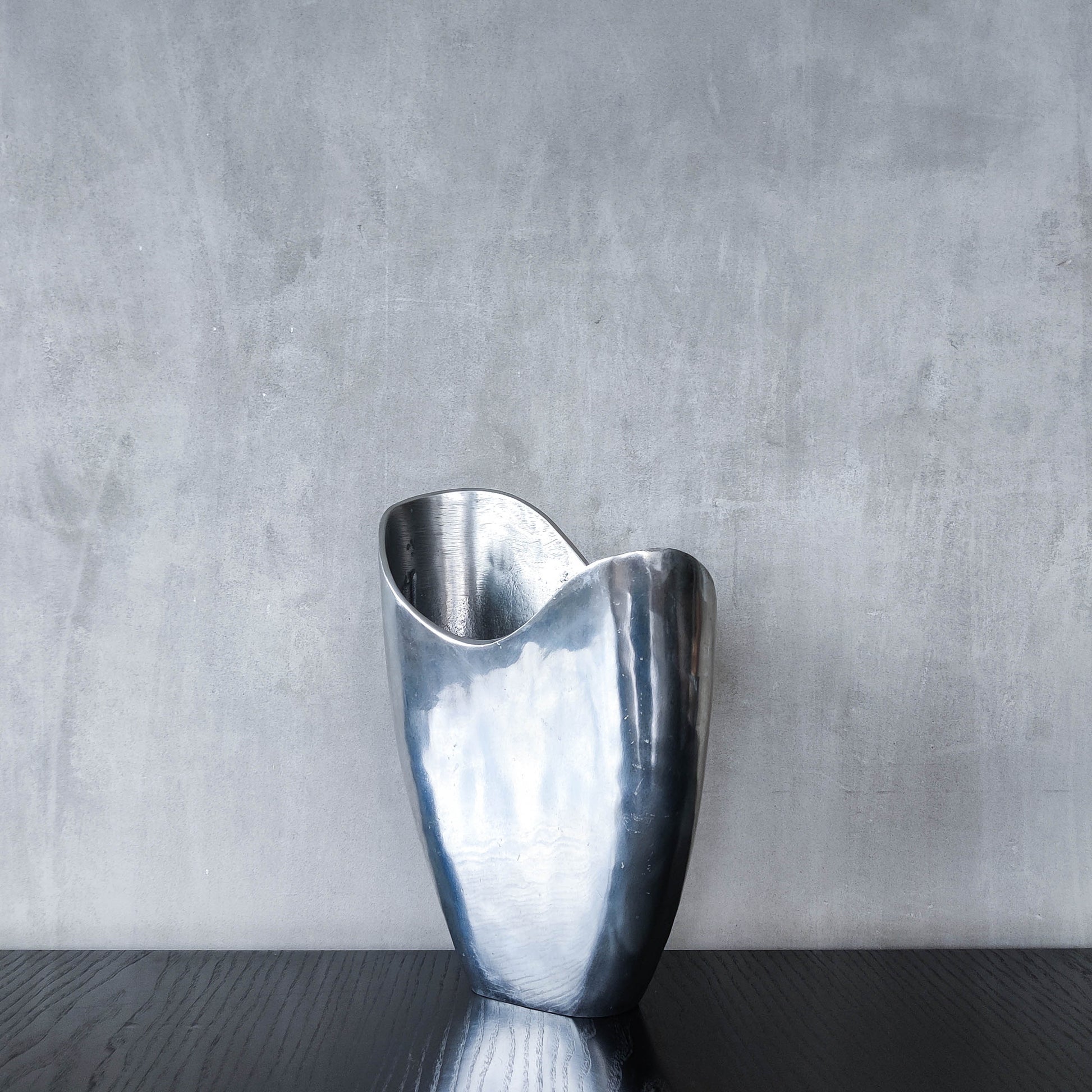Hand cast aluminium vase designed by Swedish designer Anna Efverlund (she also designed for Ikea, I believe this one was designed for Debenhams in the 1990s and it is slightly more elaborate than the Ikea version, stamped with a flower internally). Undulating organic flat form, sculptural. Please see photos and condition description.