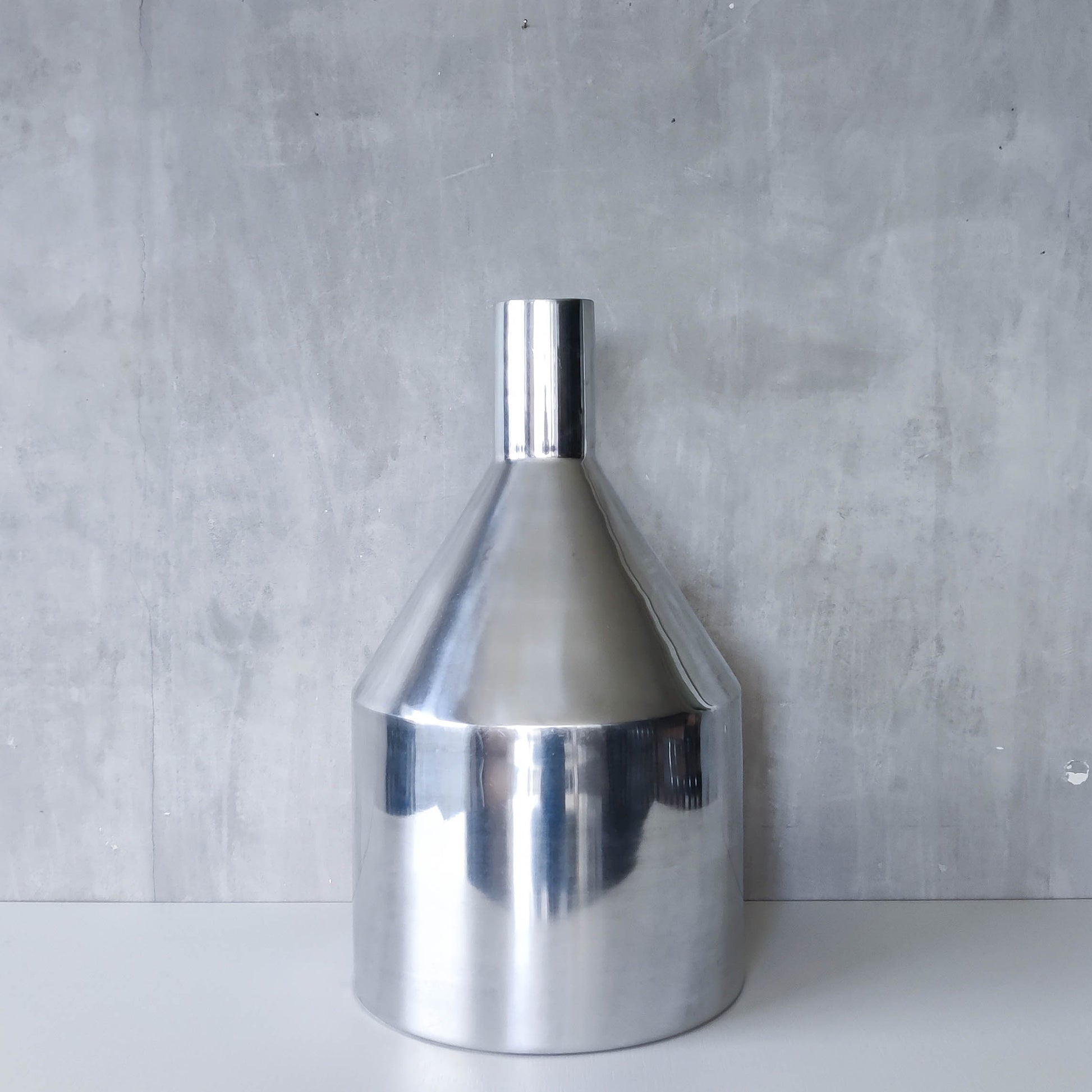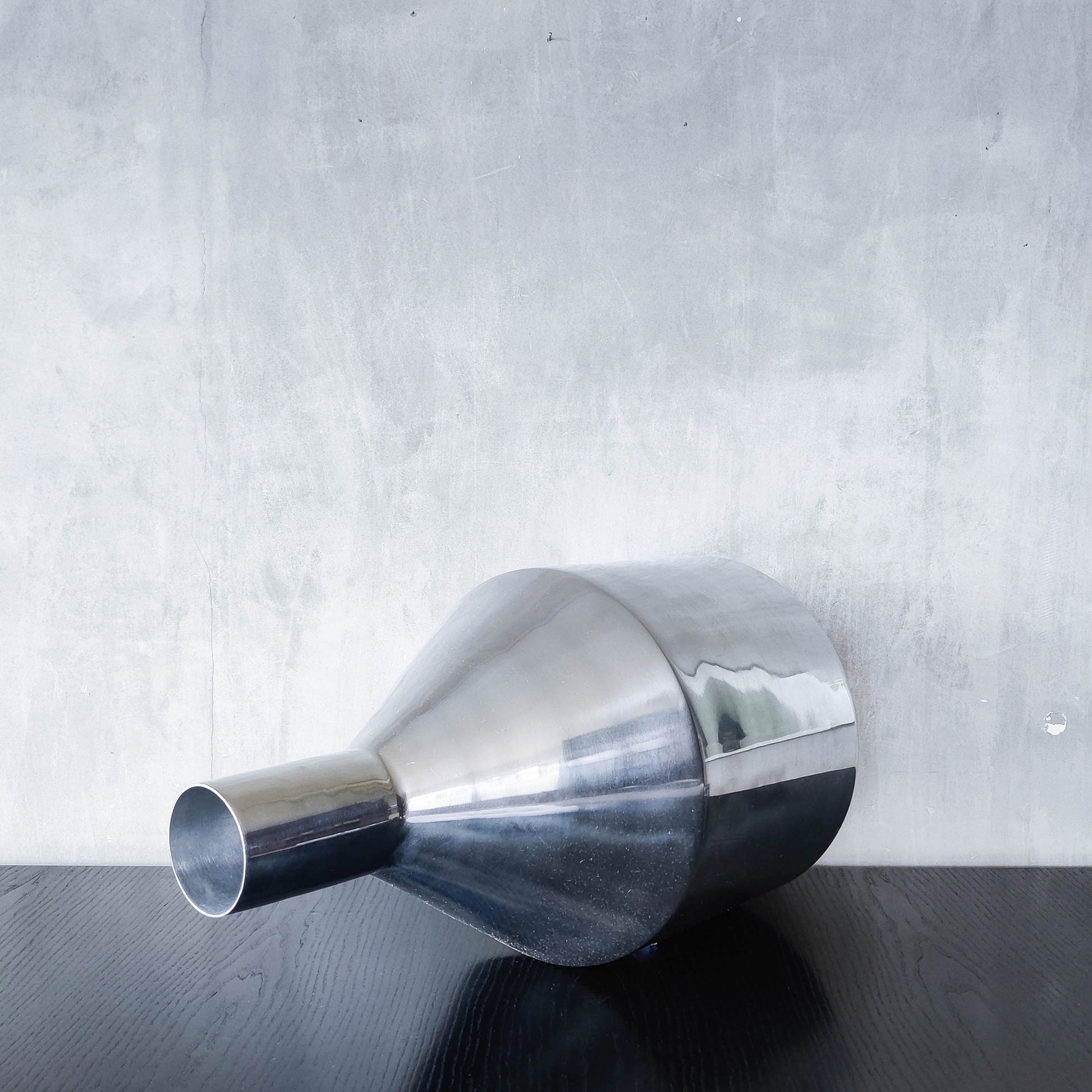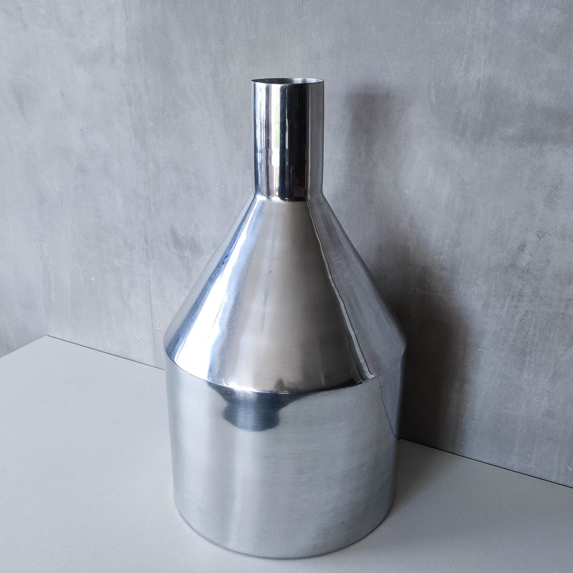 Large sculptural funnel shaped cast aluminium vase. Please see photos and condition description.