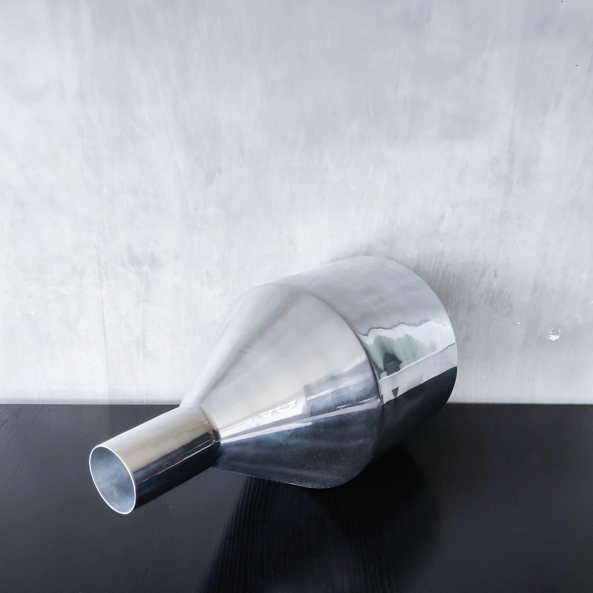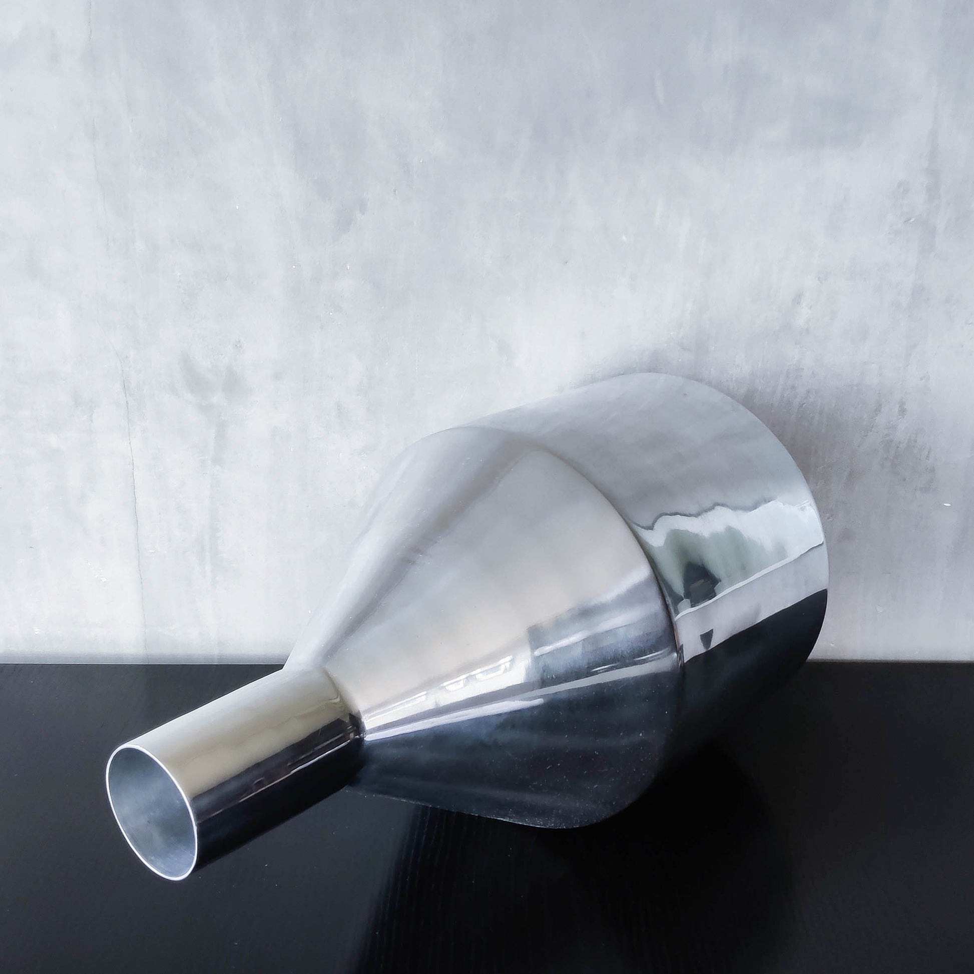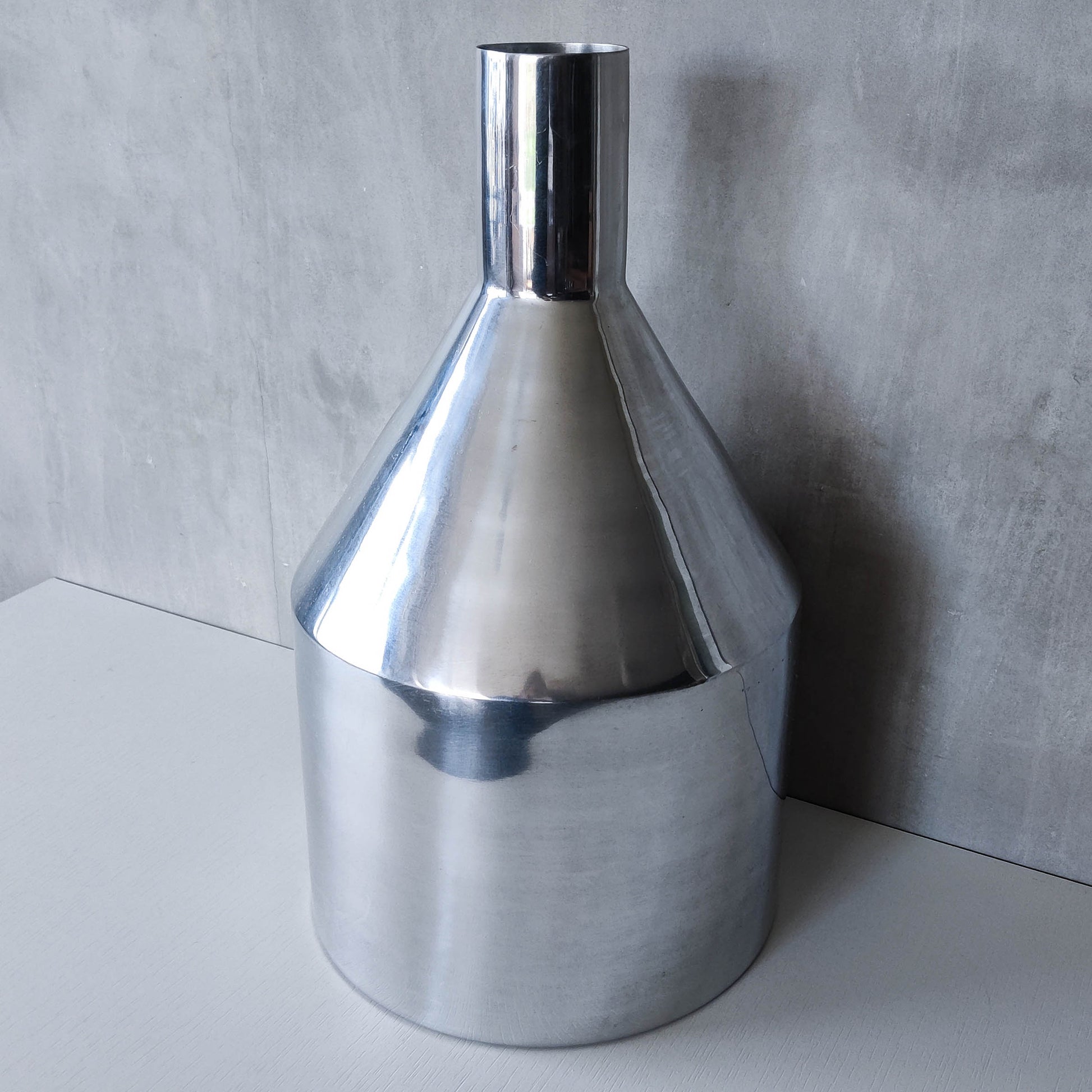 Large sculptural funnel shaped cast aluminium vase. Please see photos and condition description.