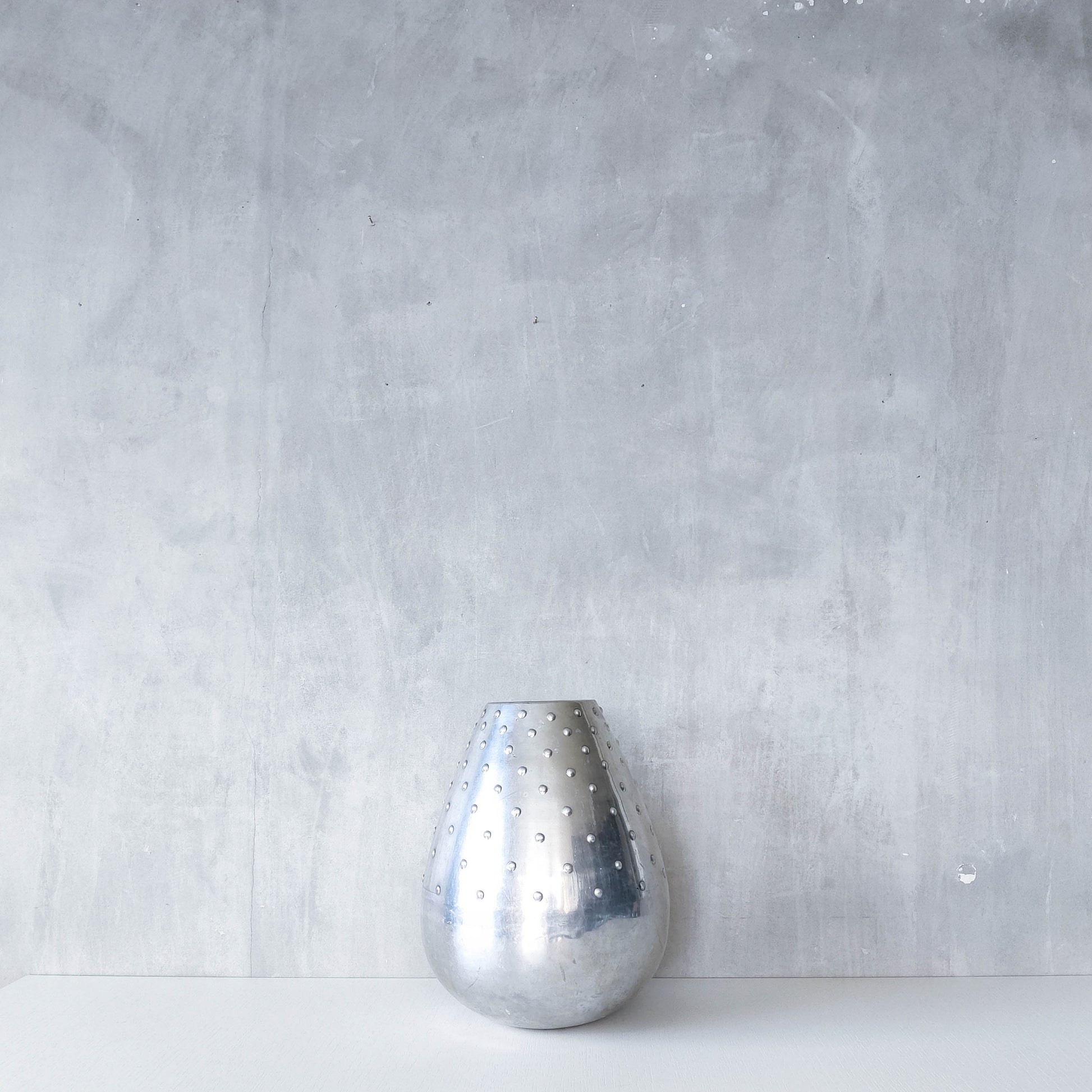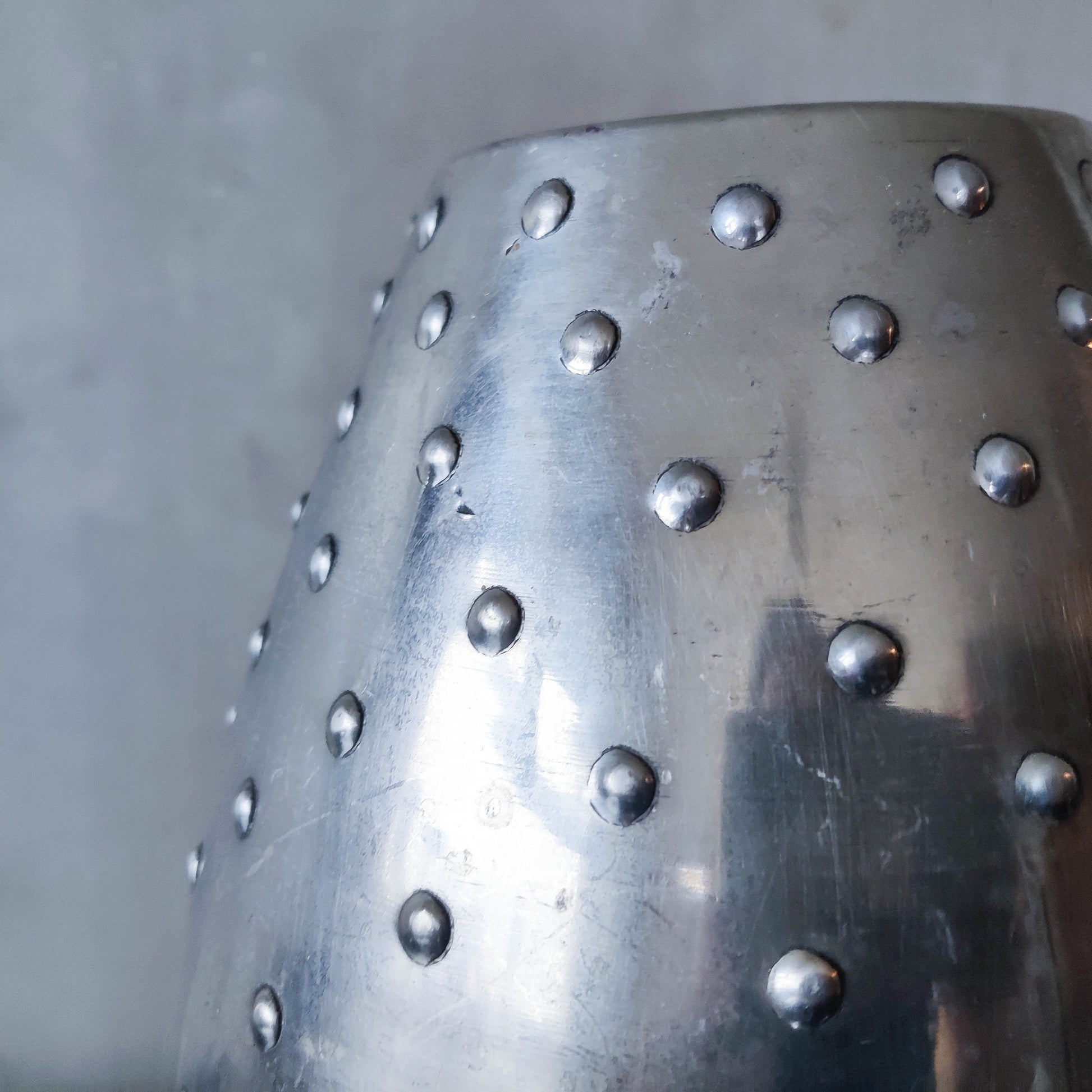 Large vintage 1990s silver pressed metal hobnail studded dimple vase Leon Fontier style