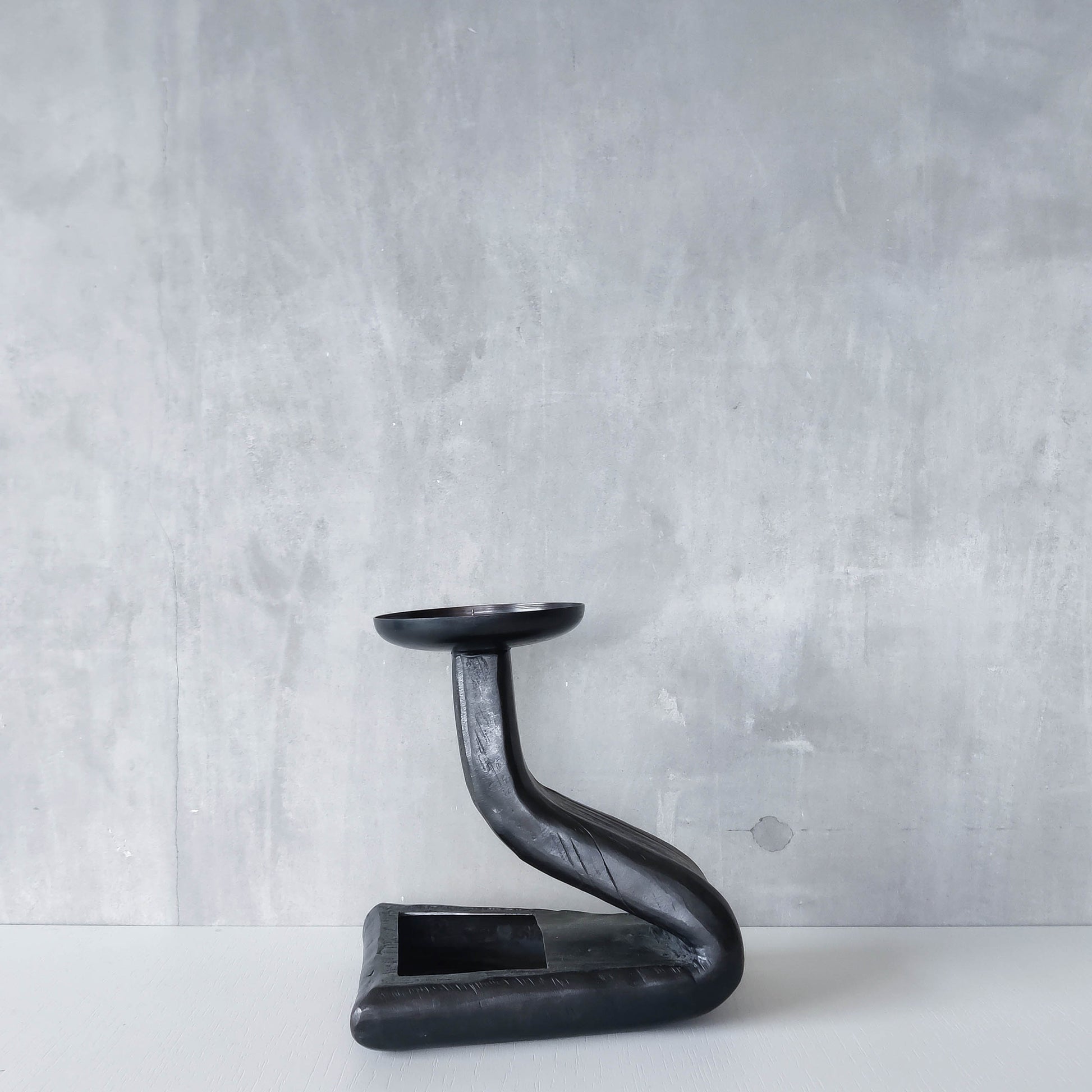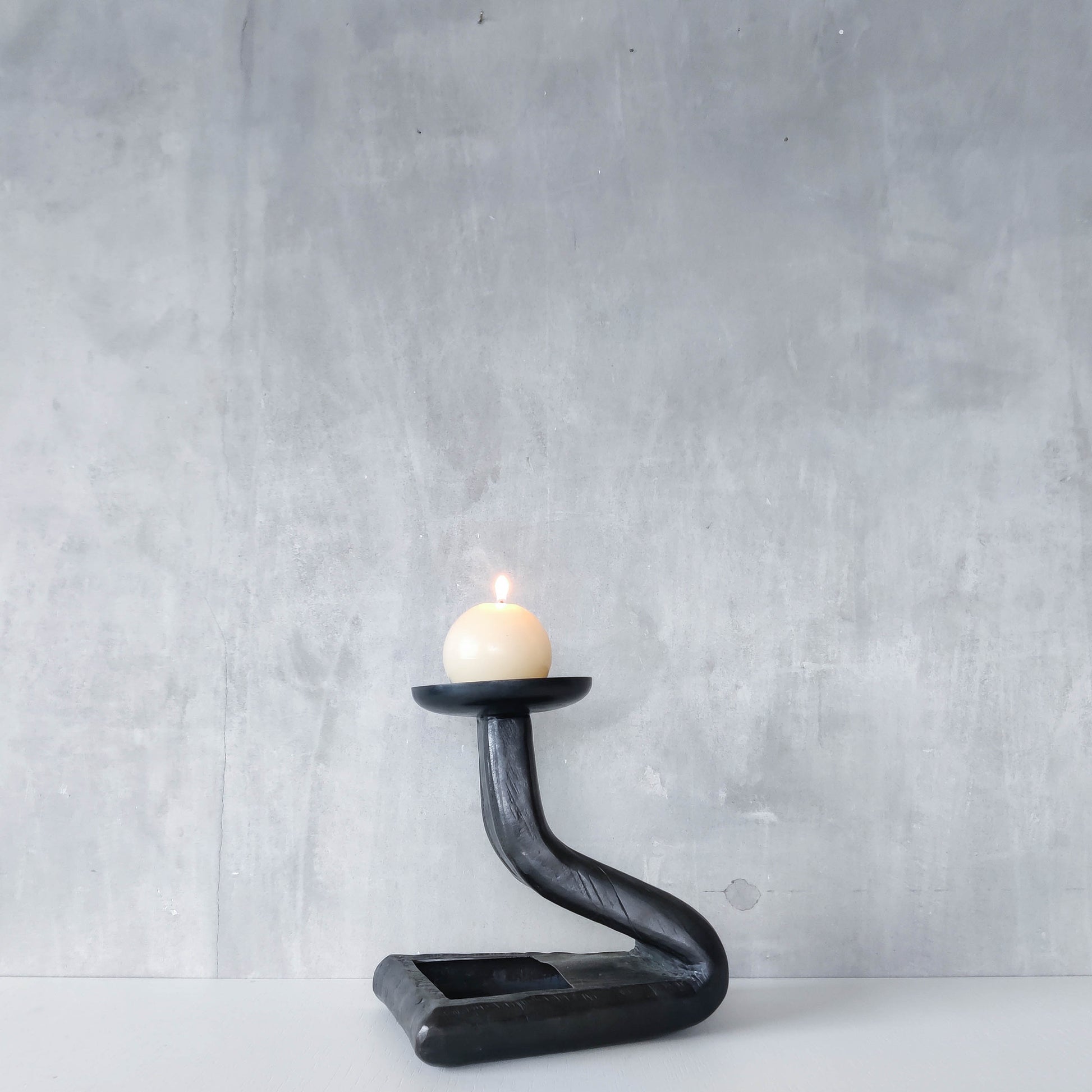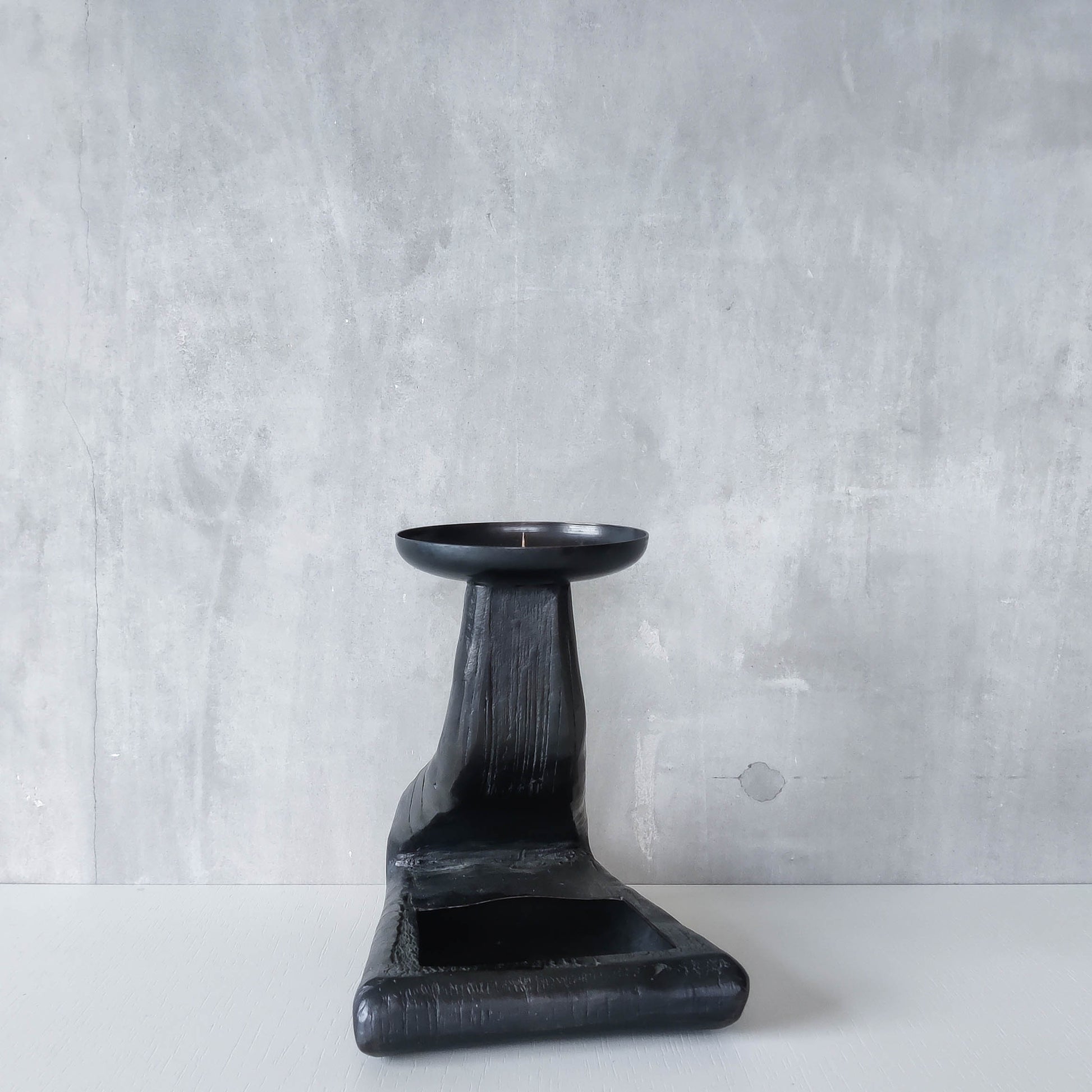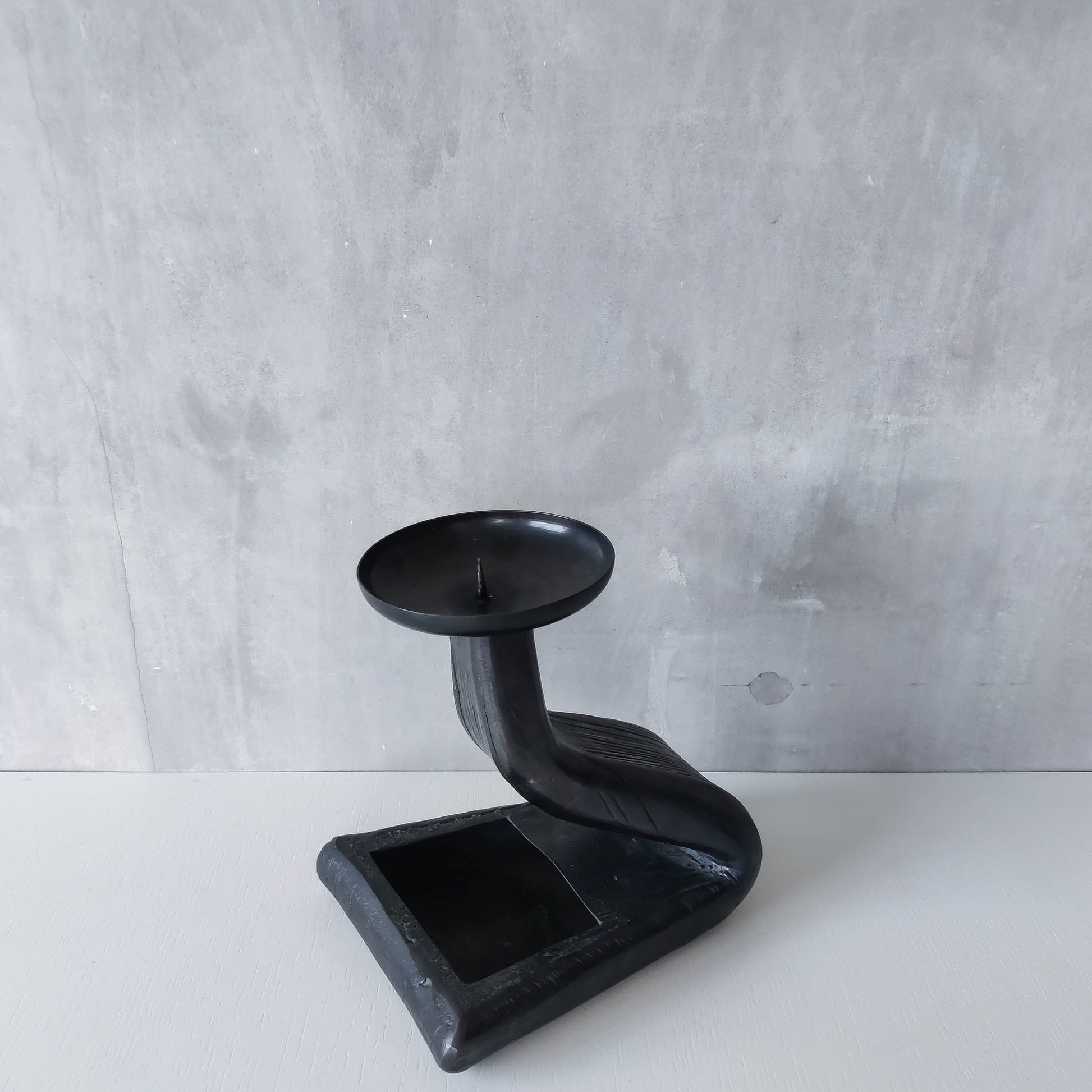 Midcentury brutalist forged patinated copper sculptural candle holder vide poche