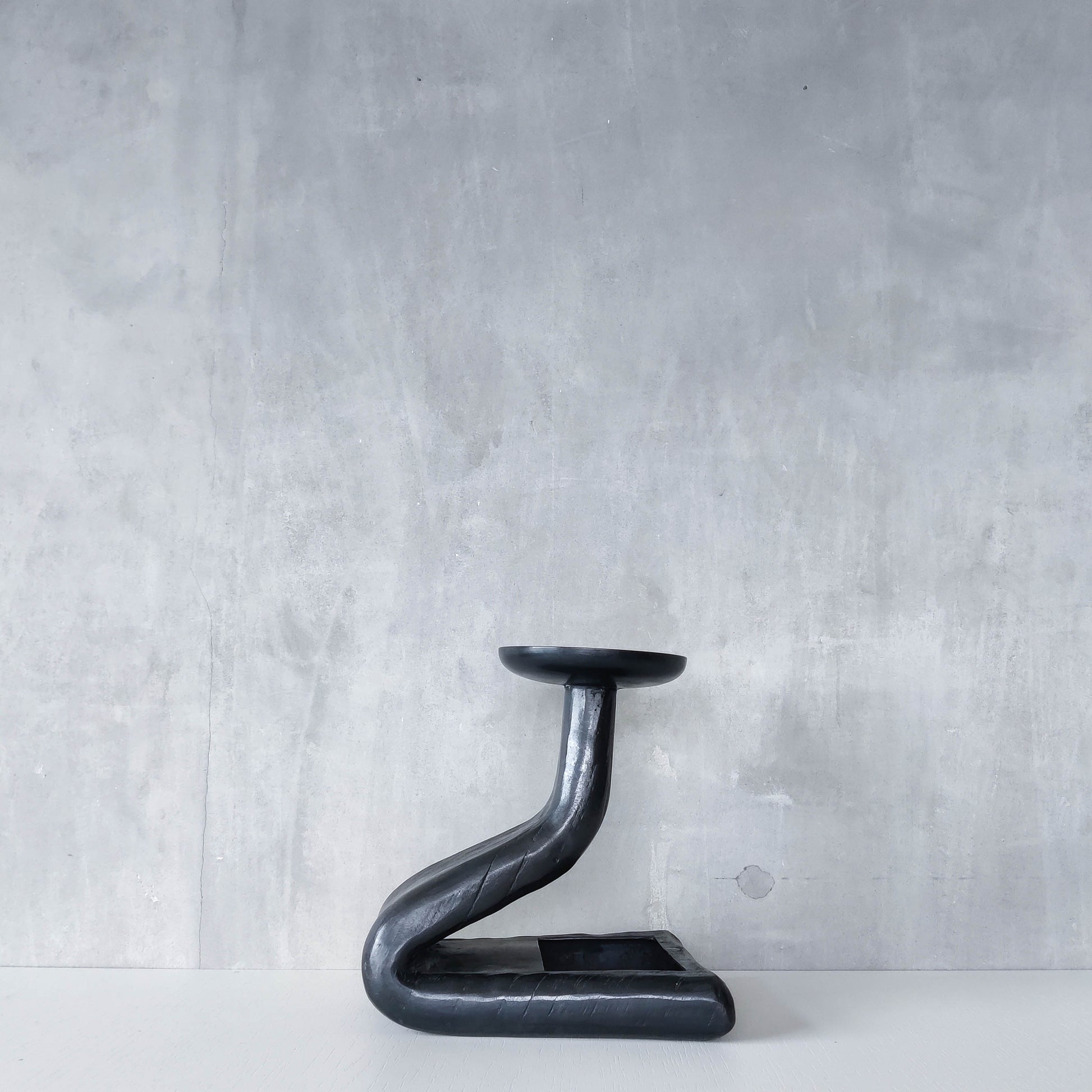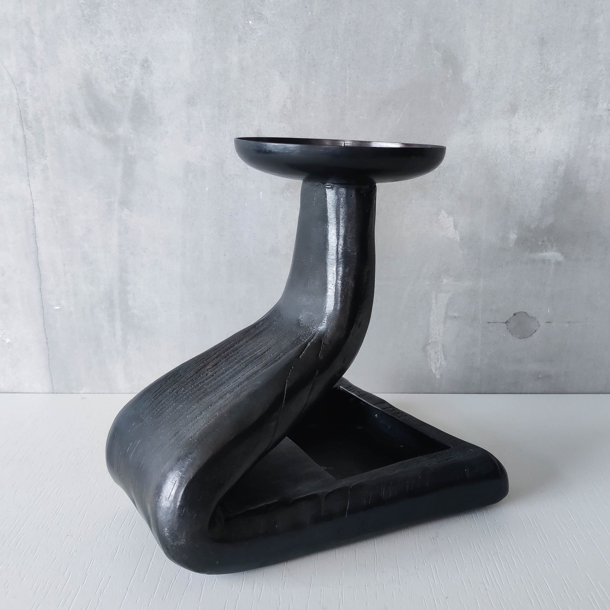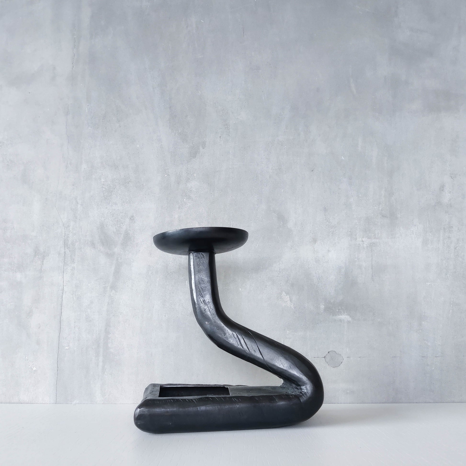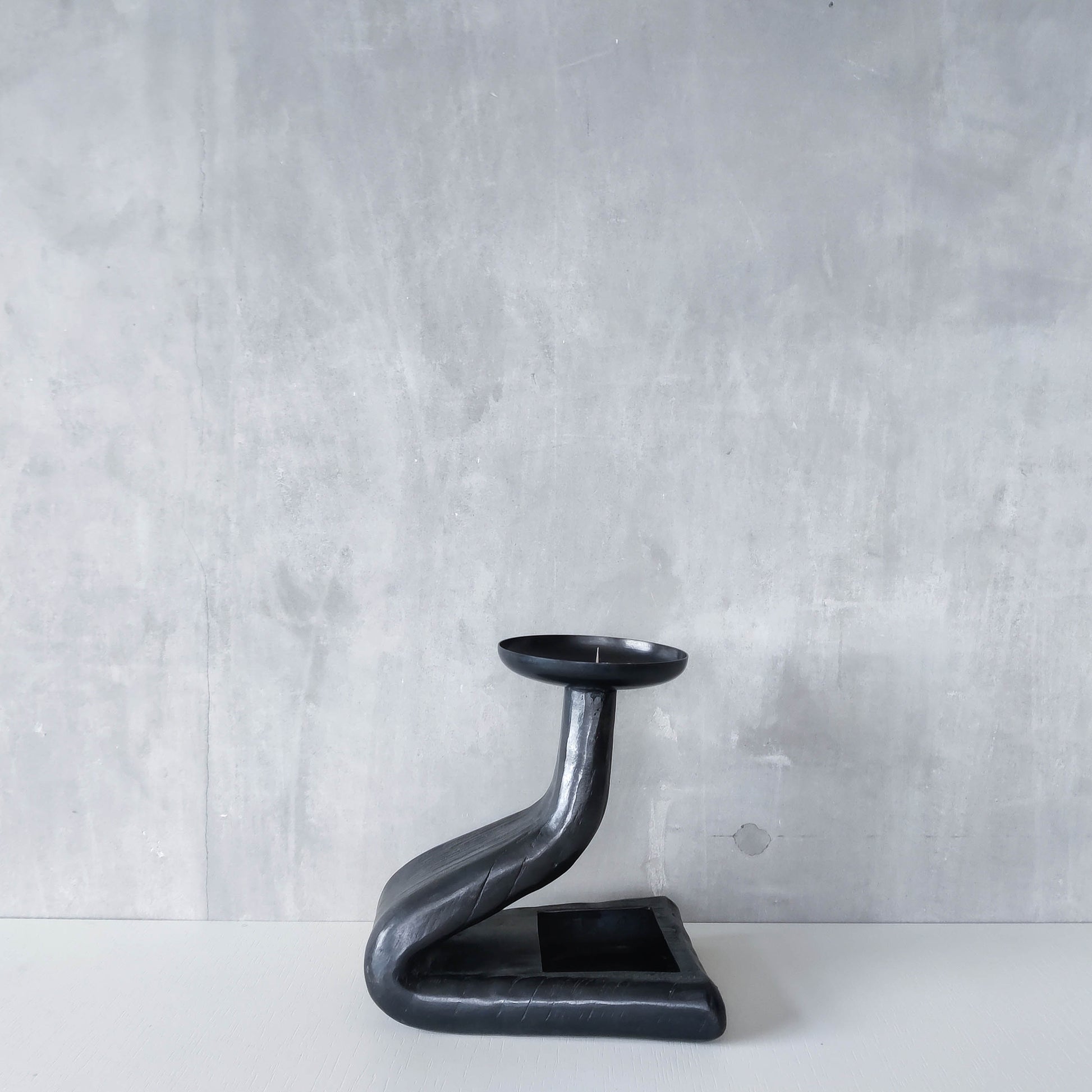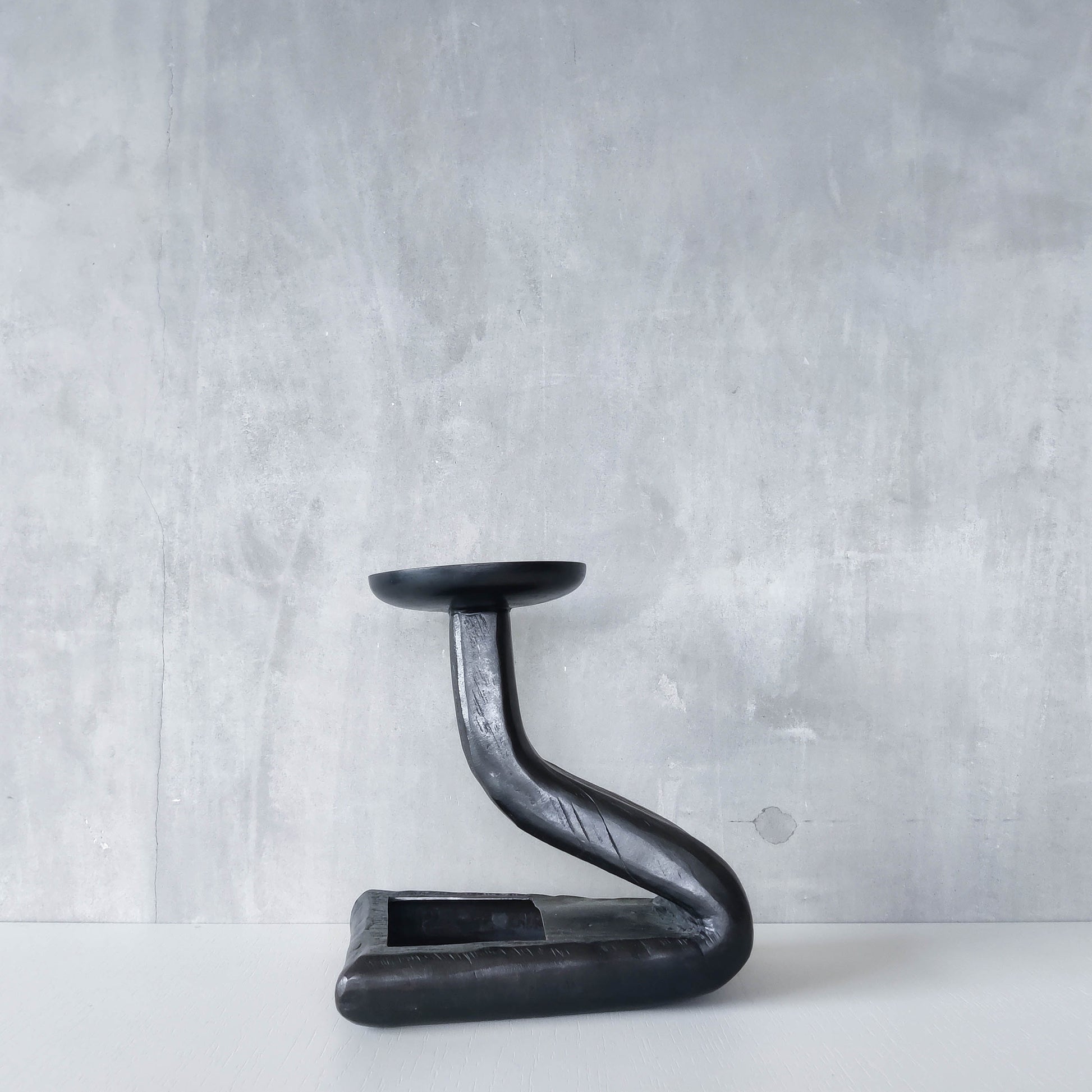 Midcentury brutalist forged patinated copper sculptural candle holder vide poche
