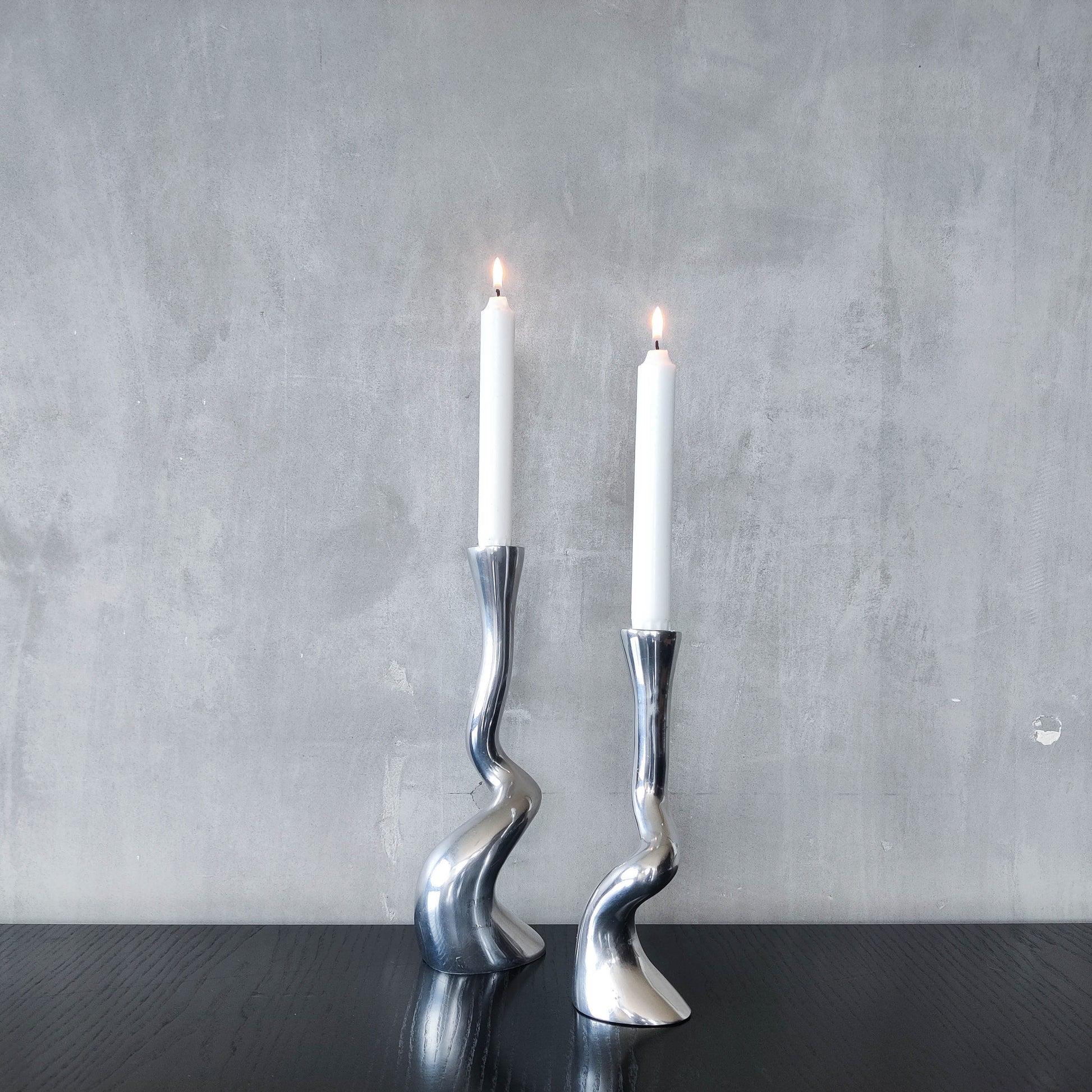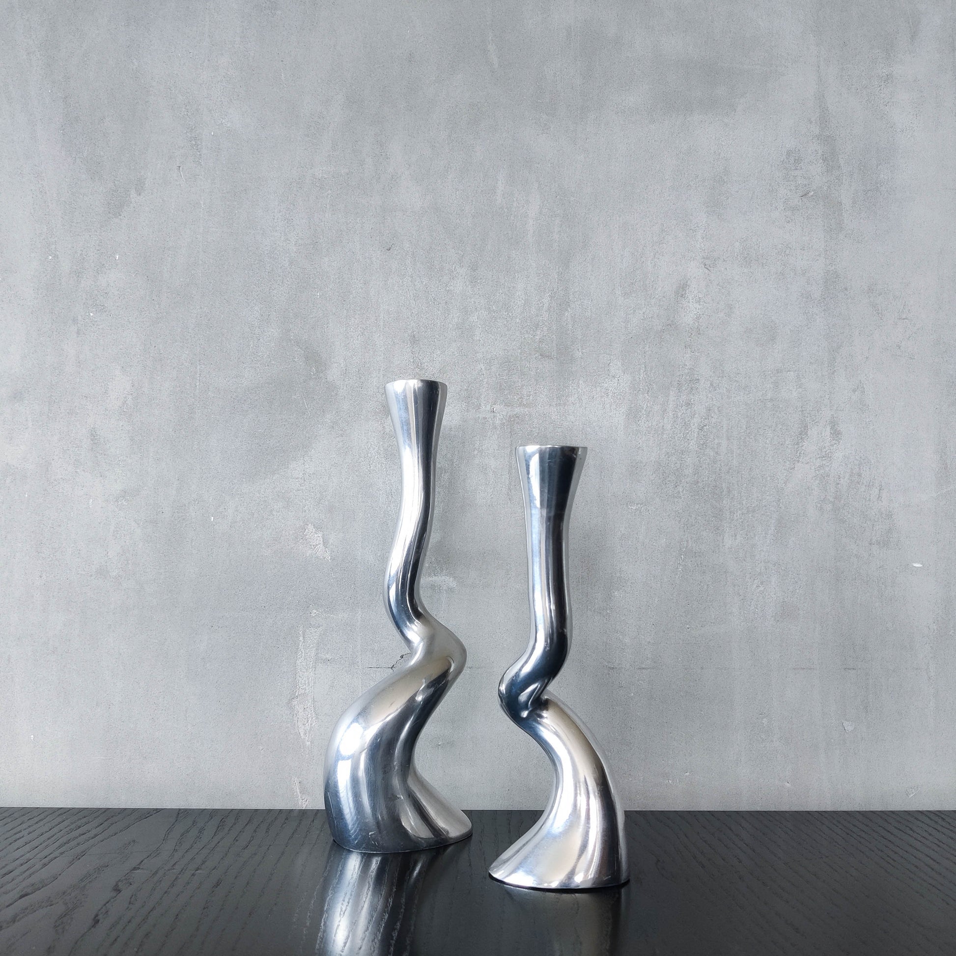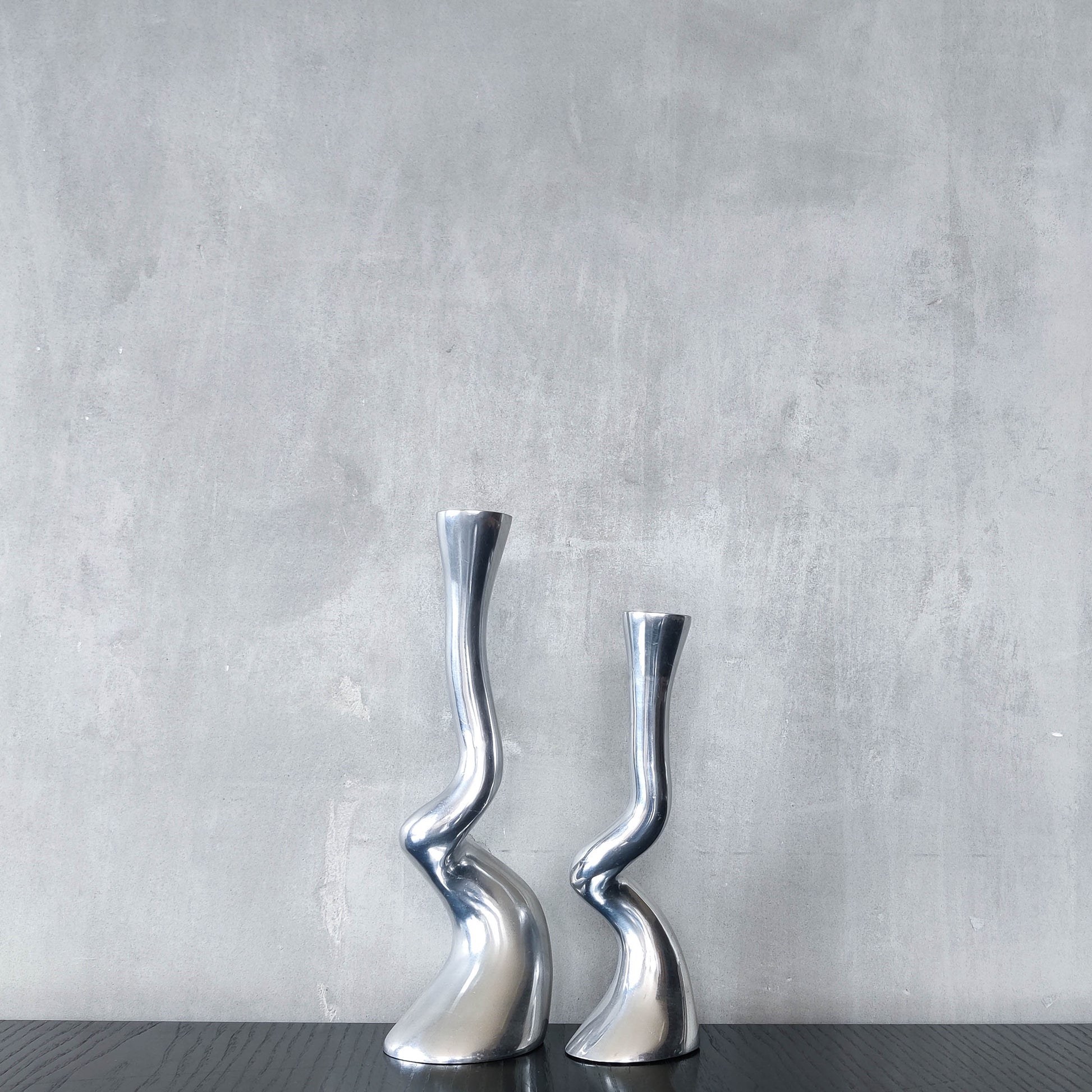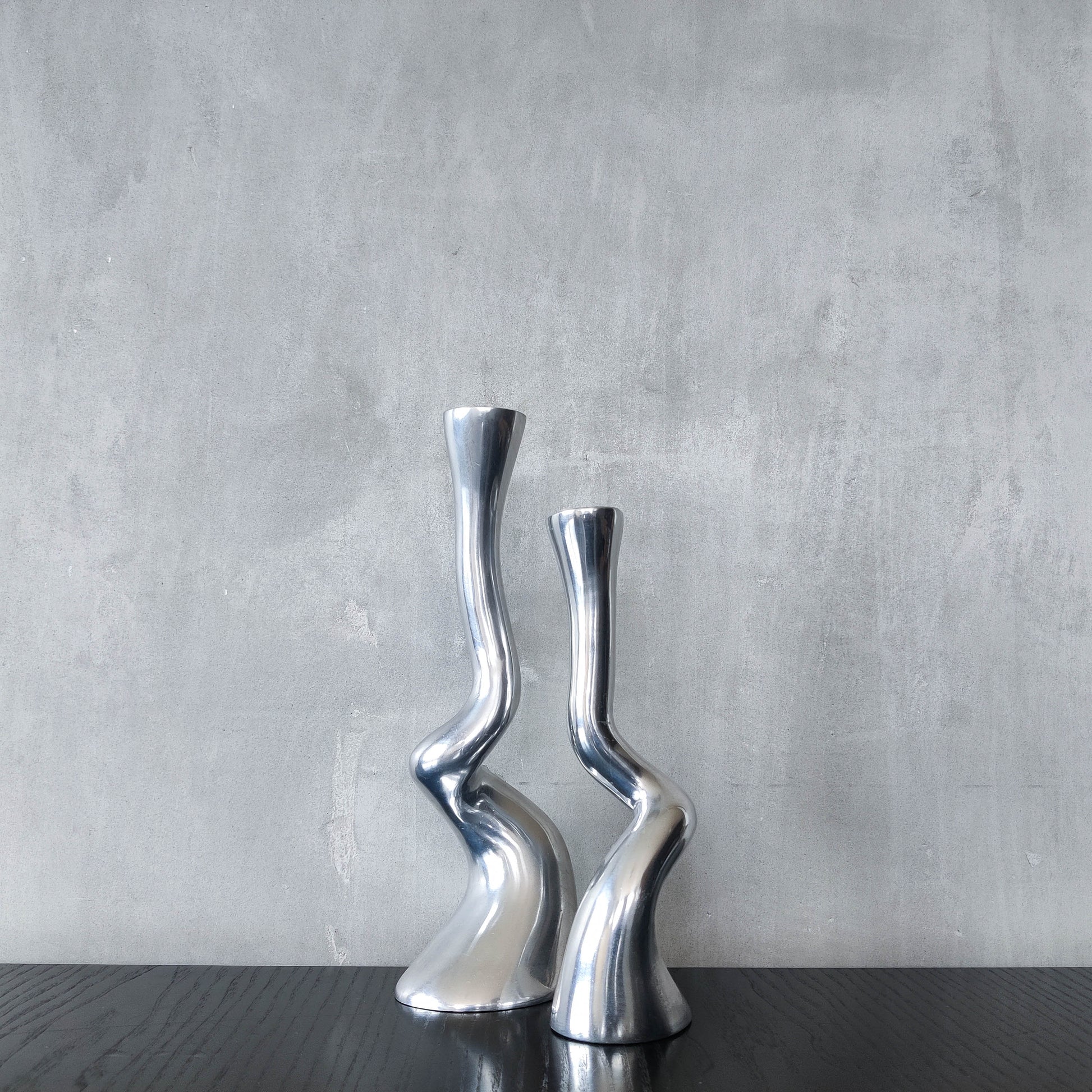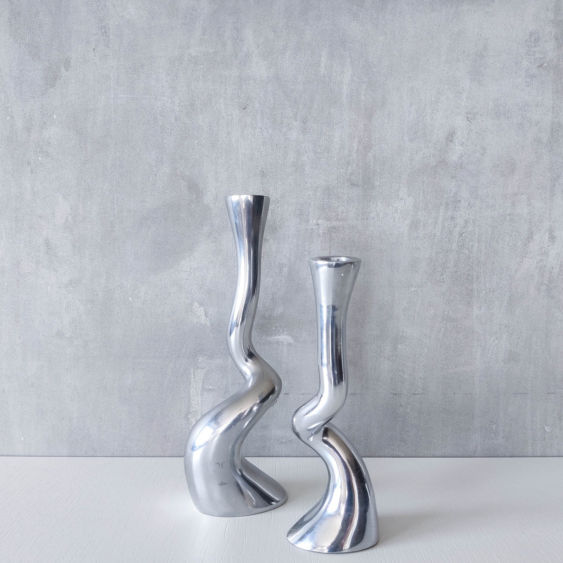 Pair cast aluminium vintage brutalist style sculptural candle holders silver ART3 style