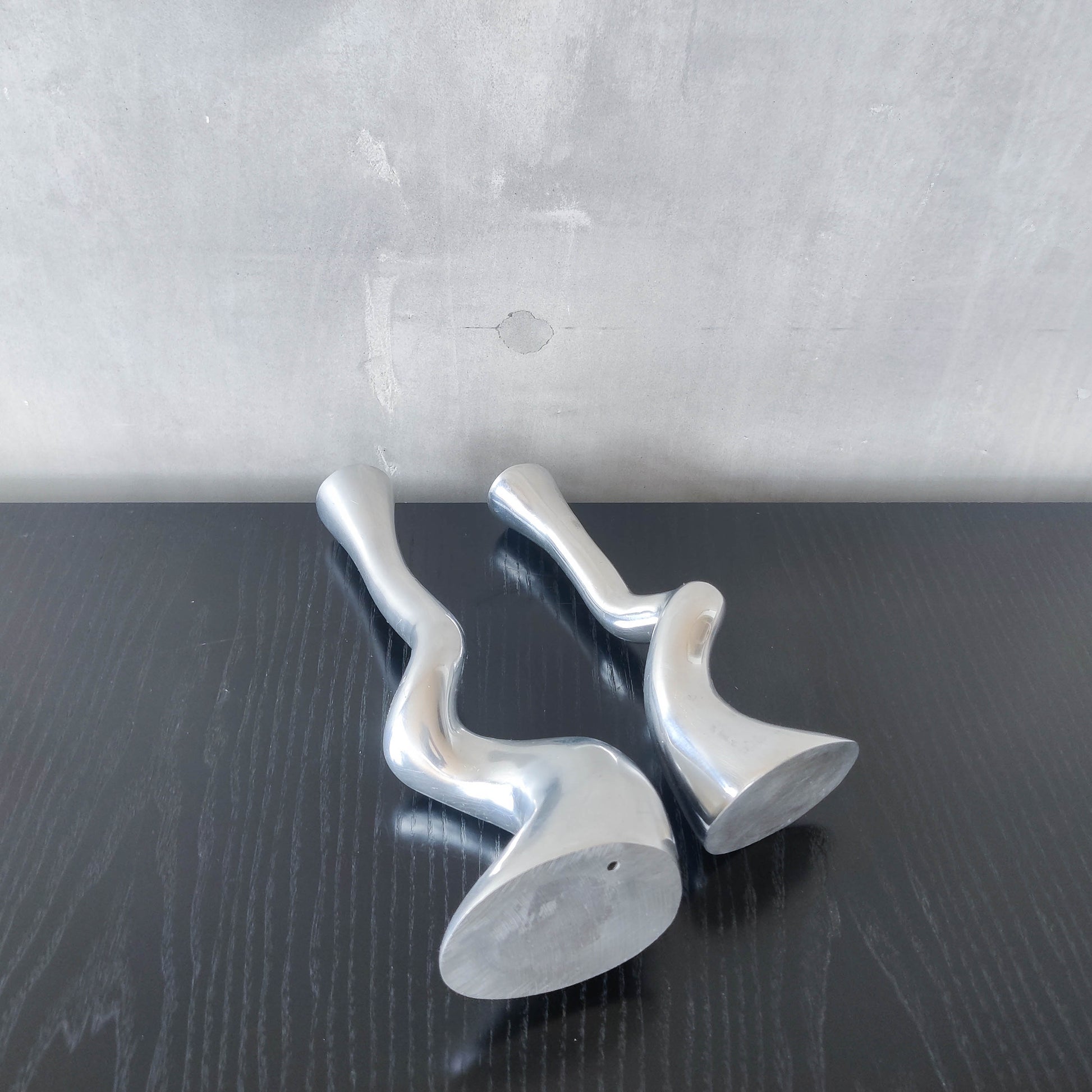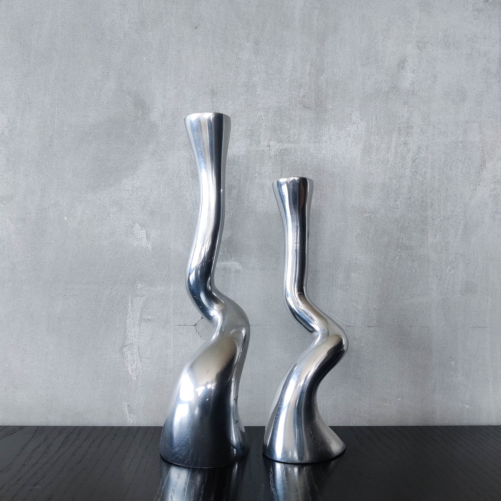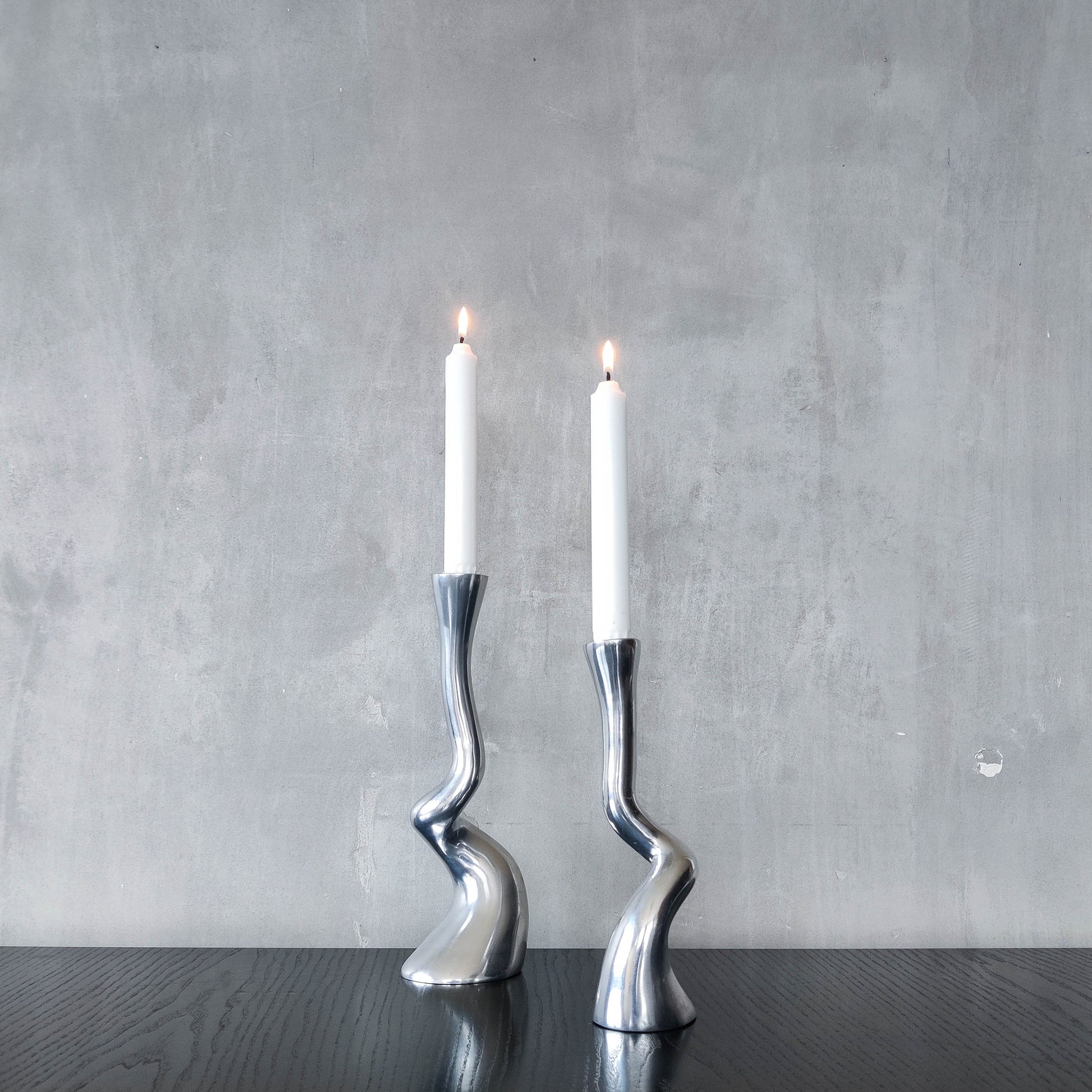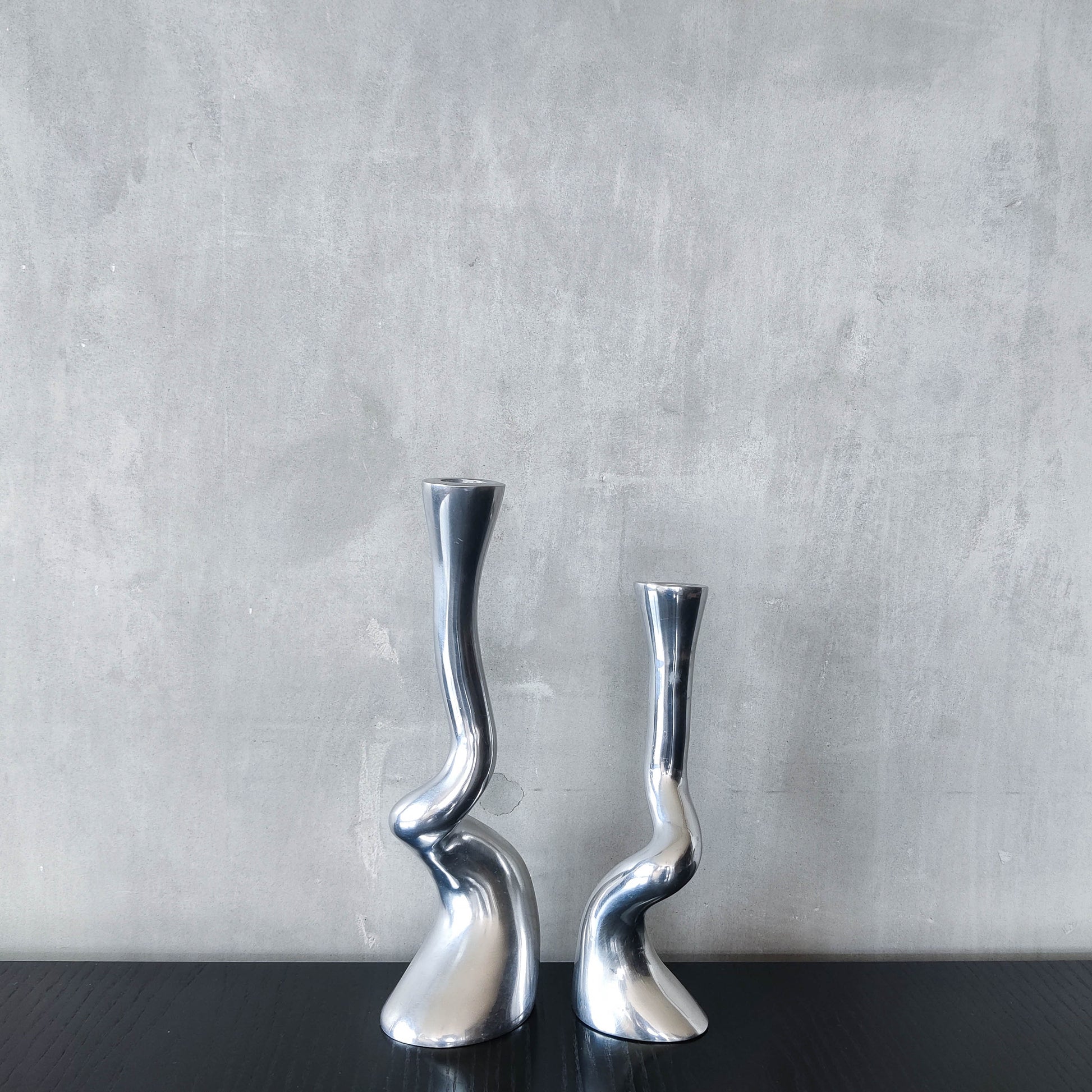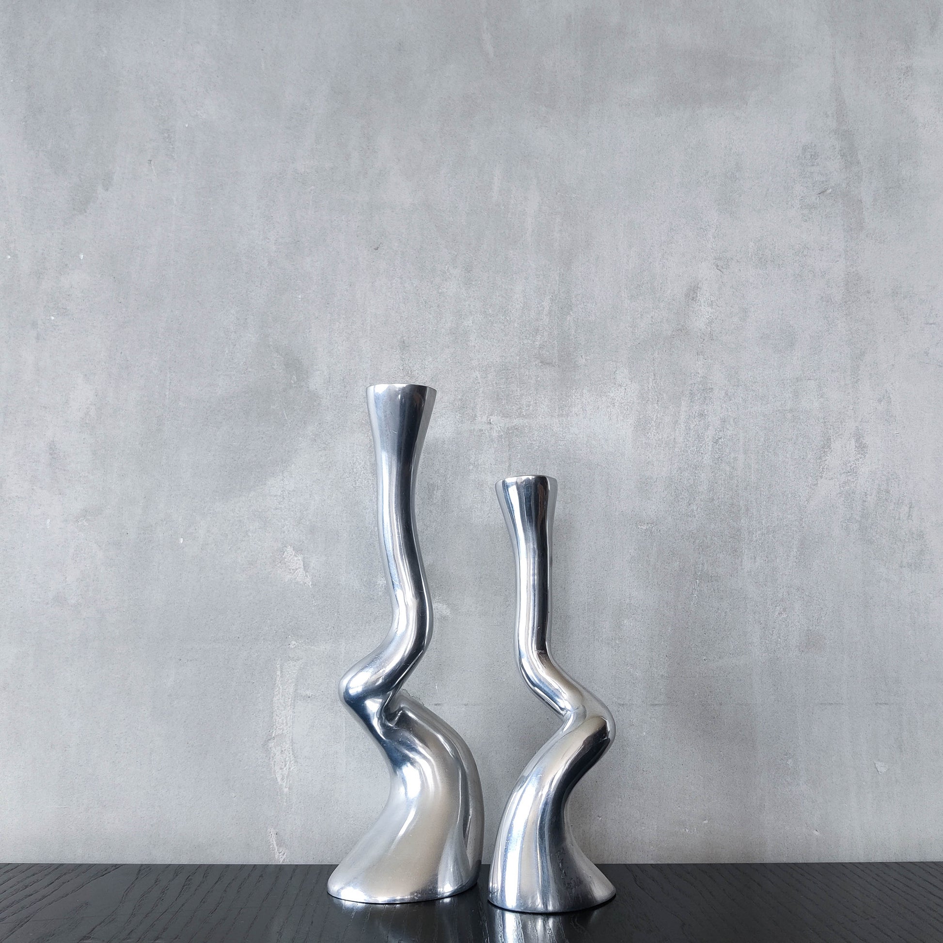 Pair cast aluminium vintage brutalist style sculptural candle holders silver ART3 style