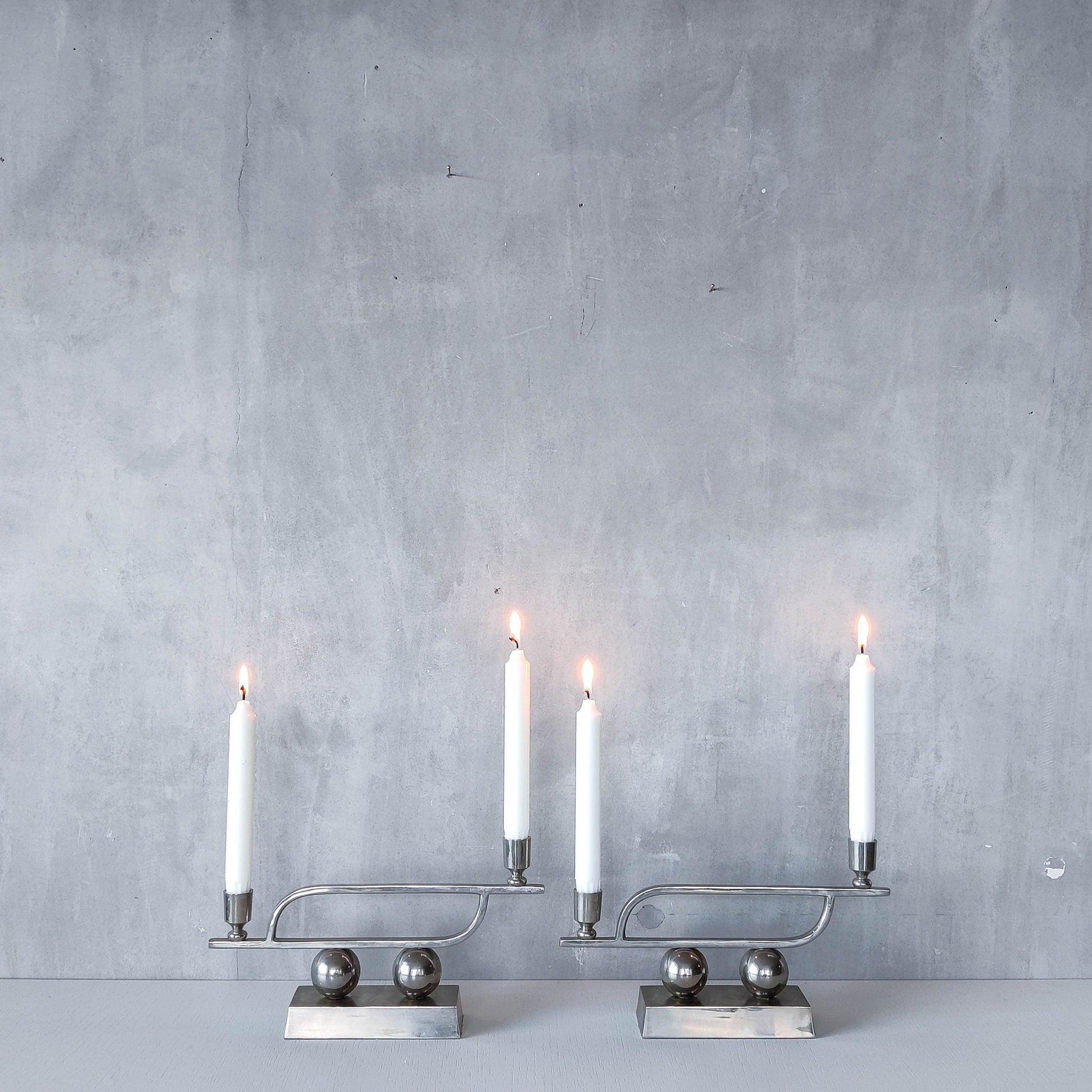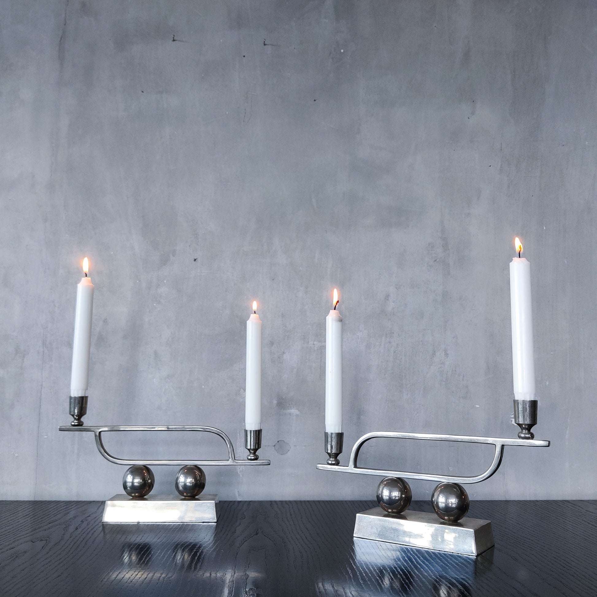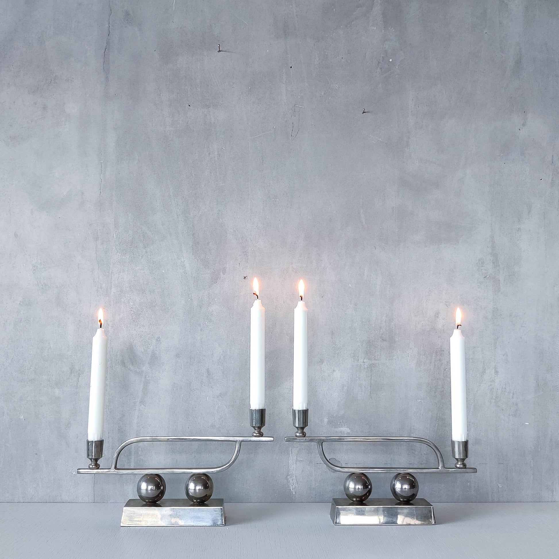 Pair of vintage Art Deco style chrome silver metal candelabras
