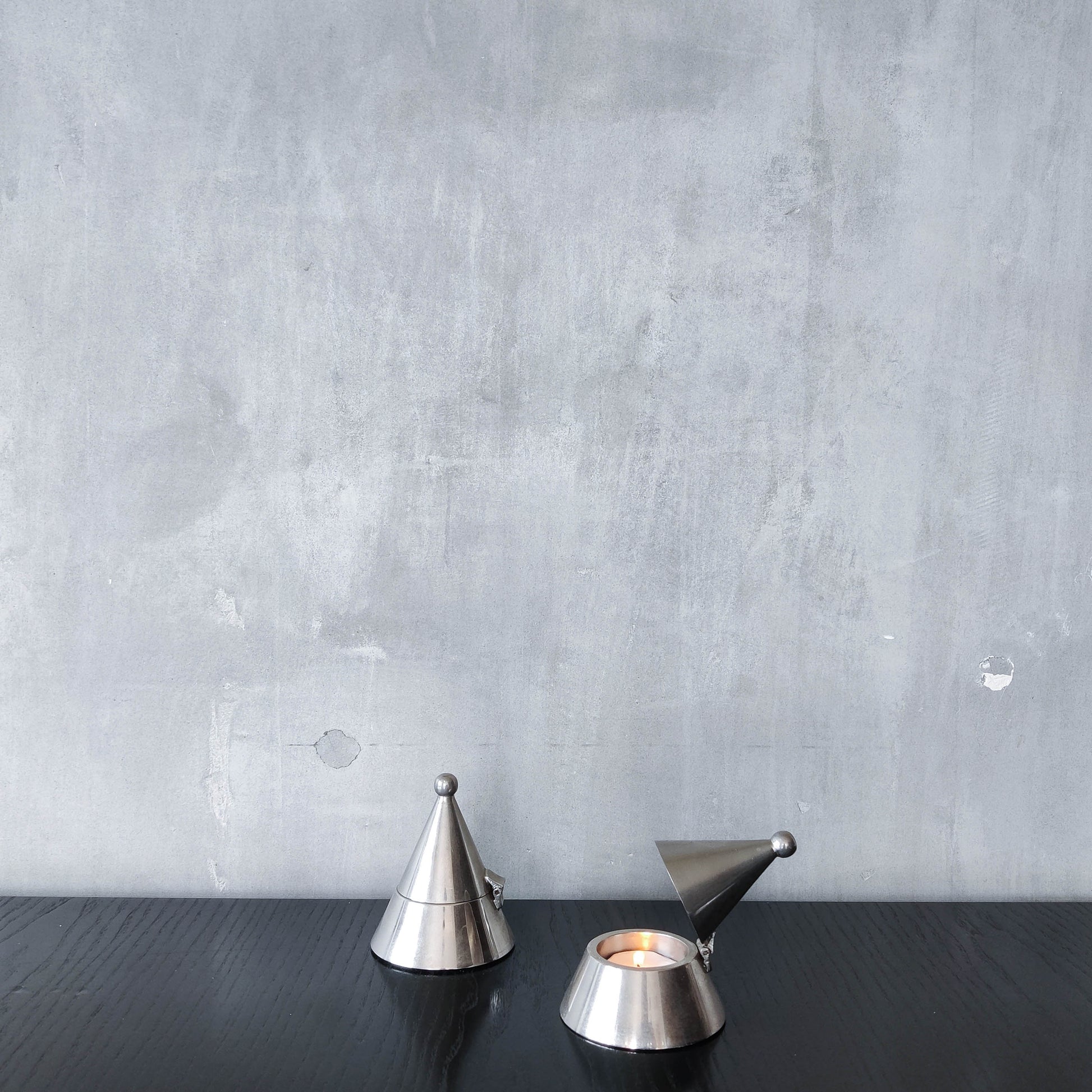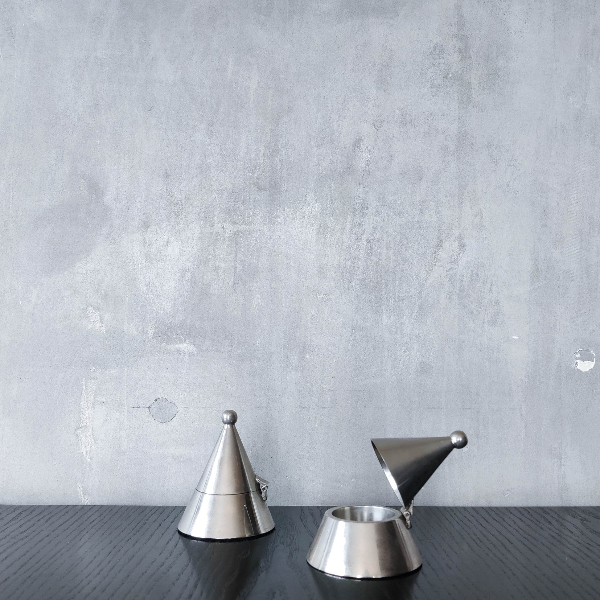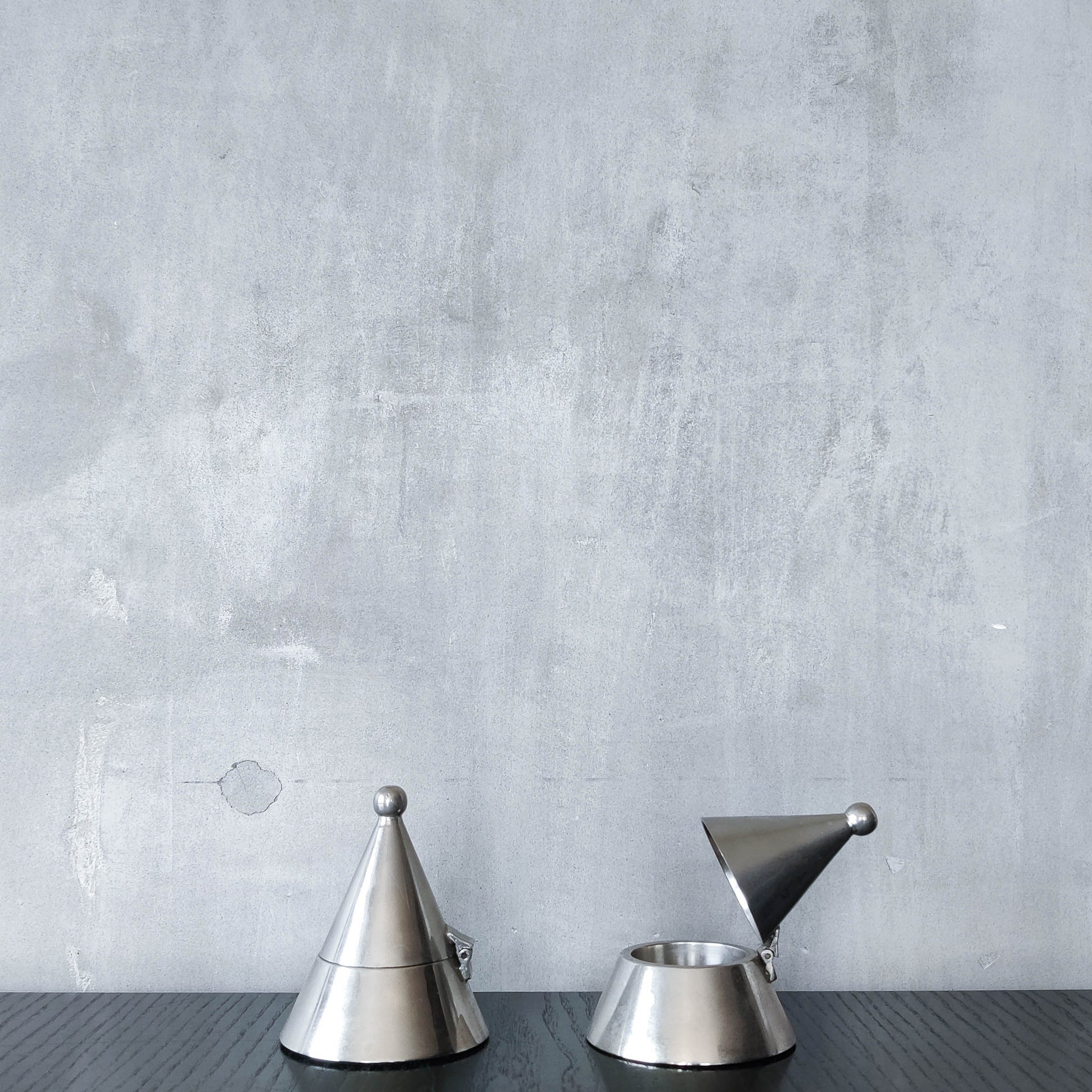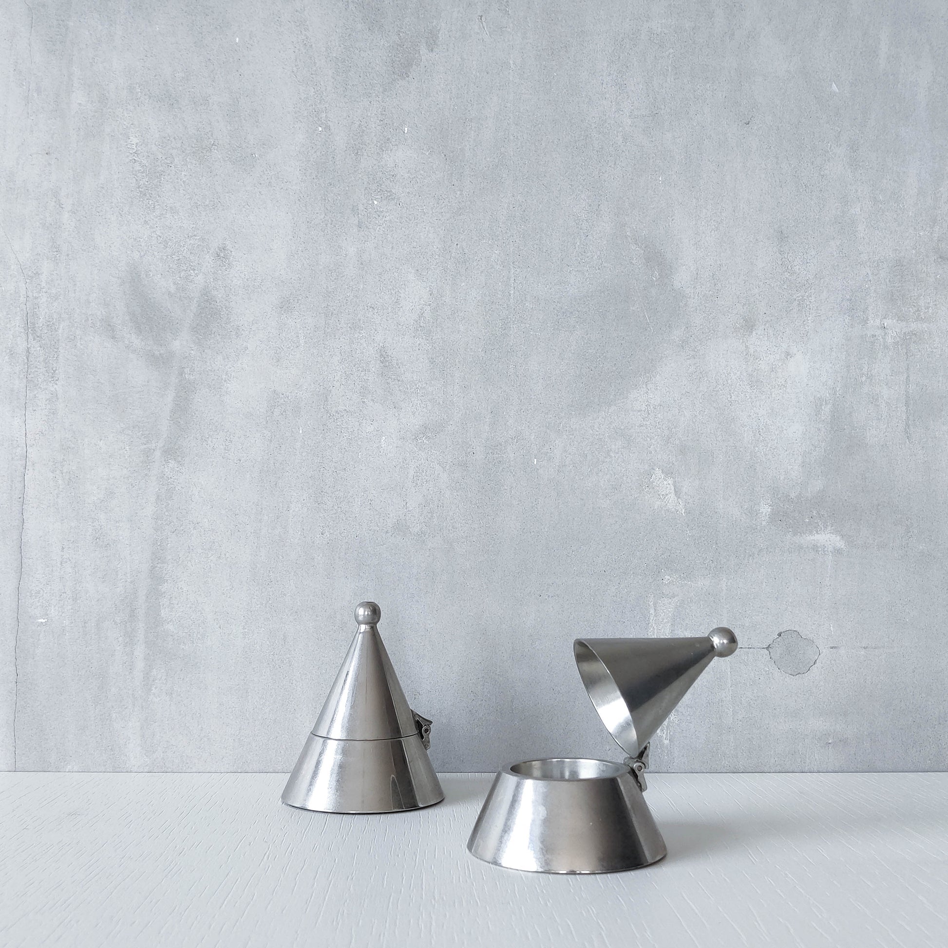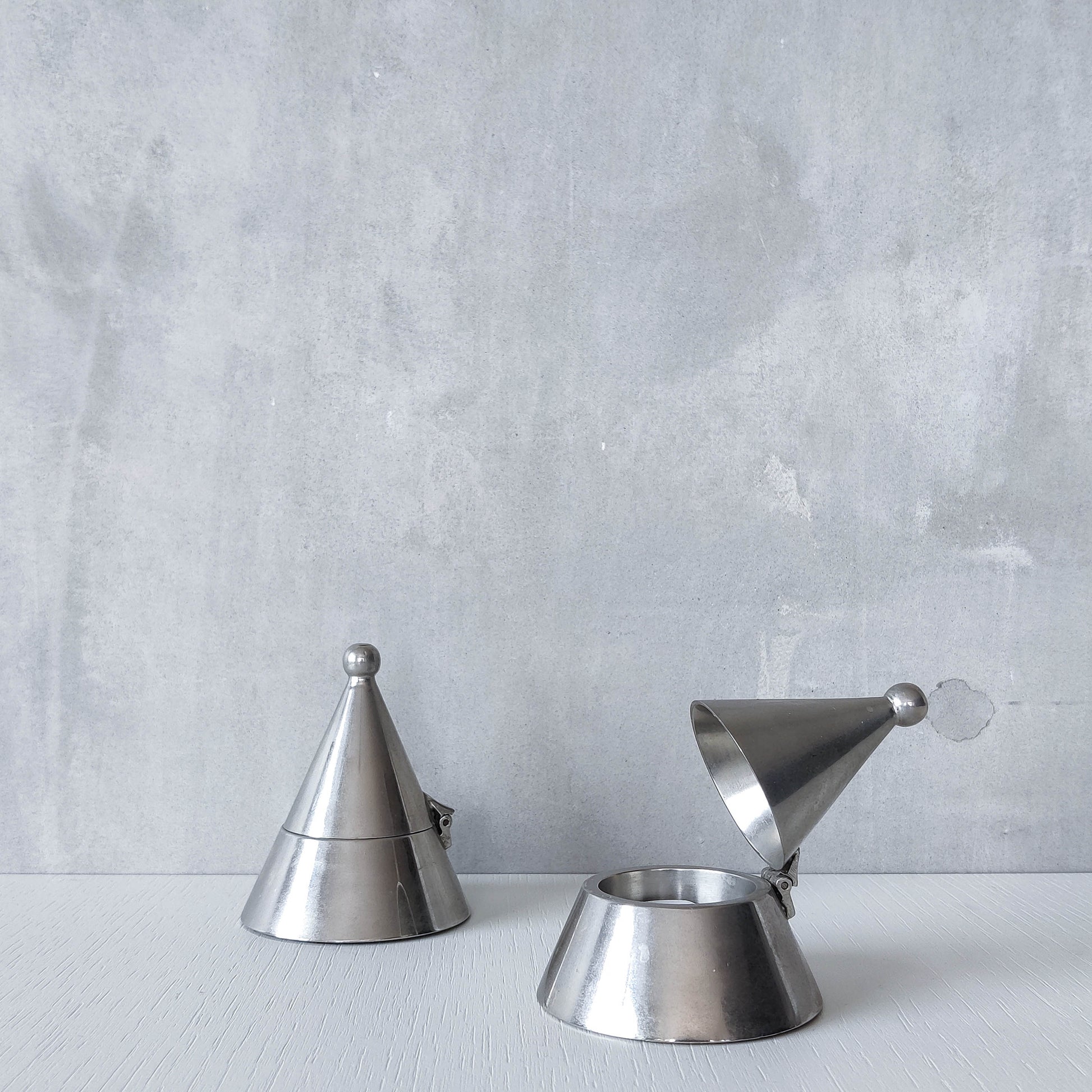 Pair of vintage conical silver chrome tea light holders Aldo Rossi Alessi modernist