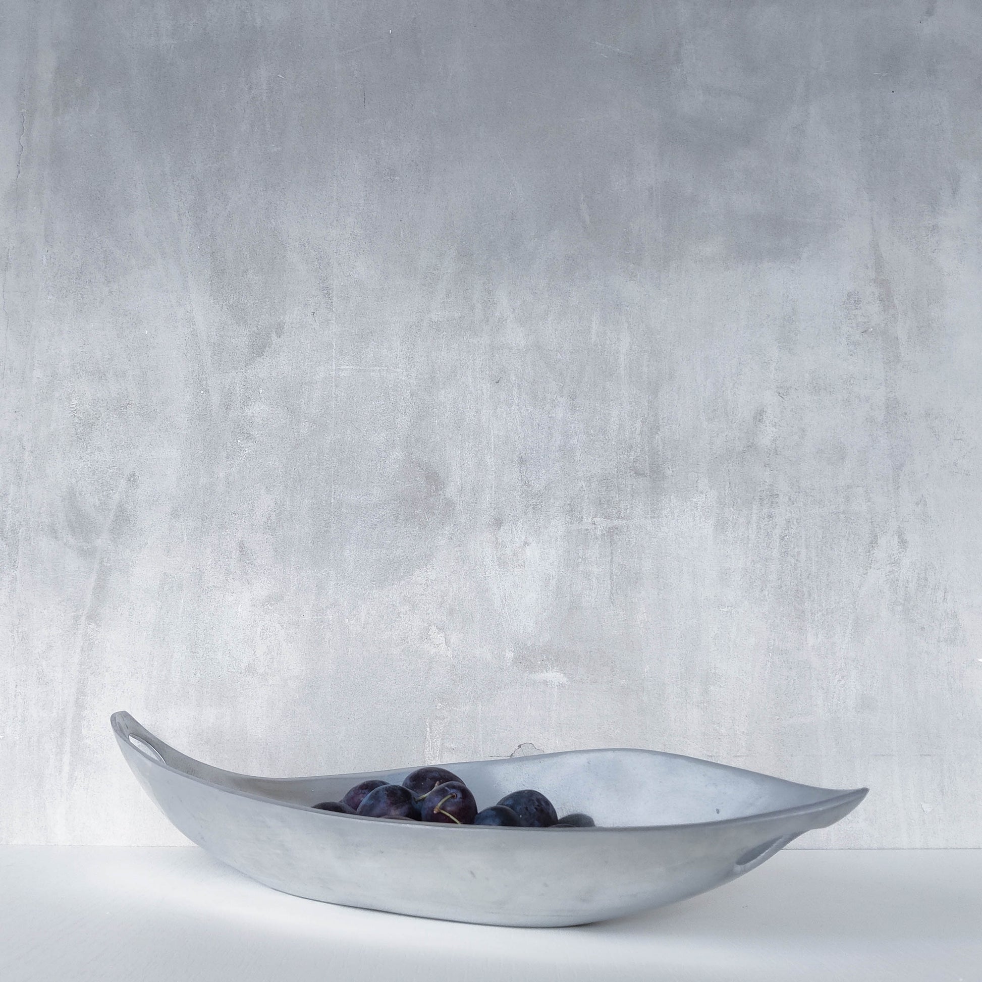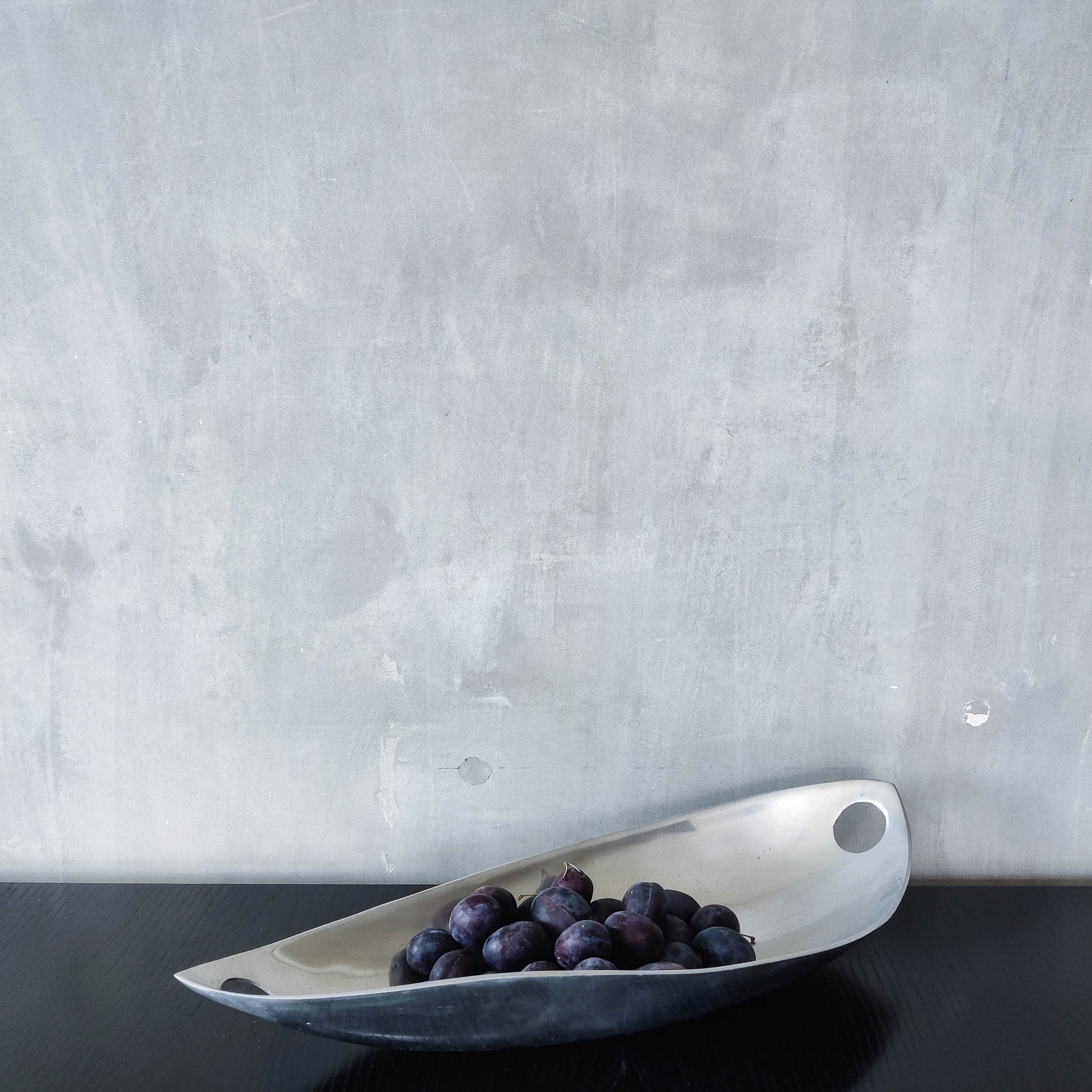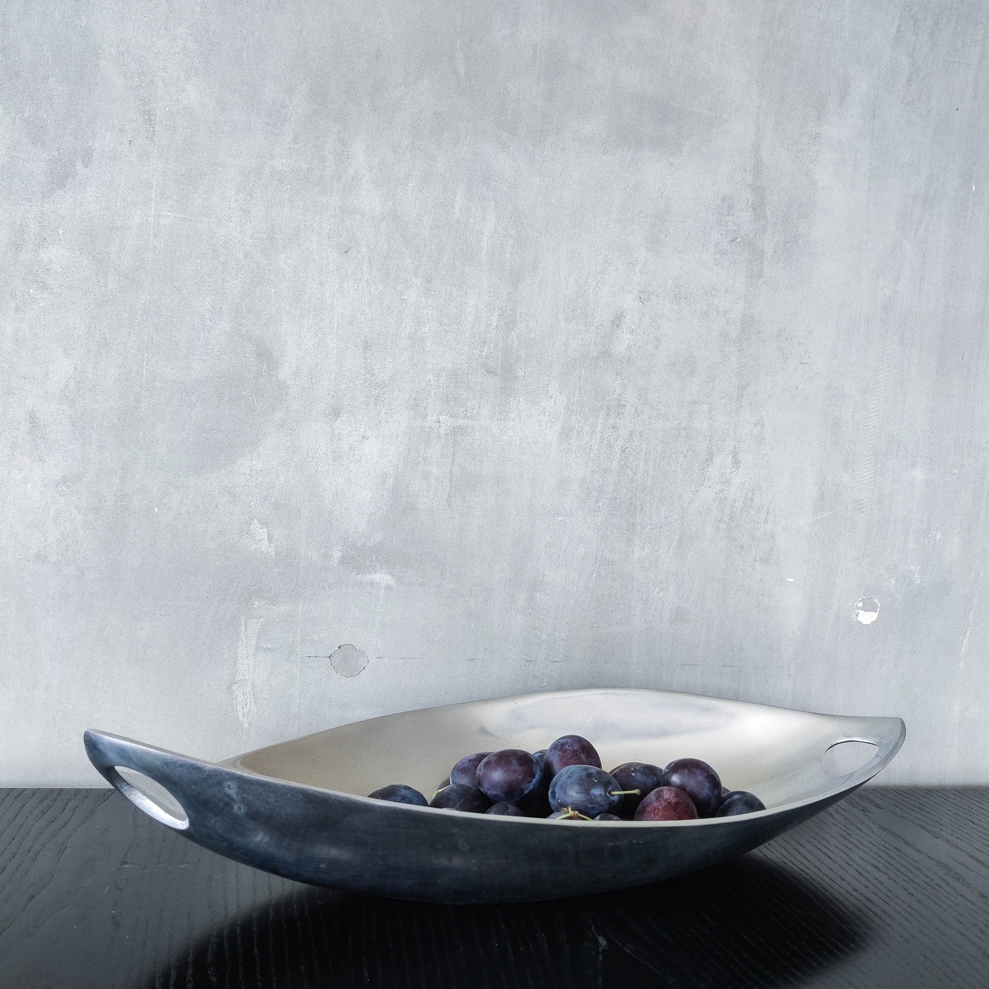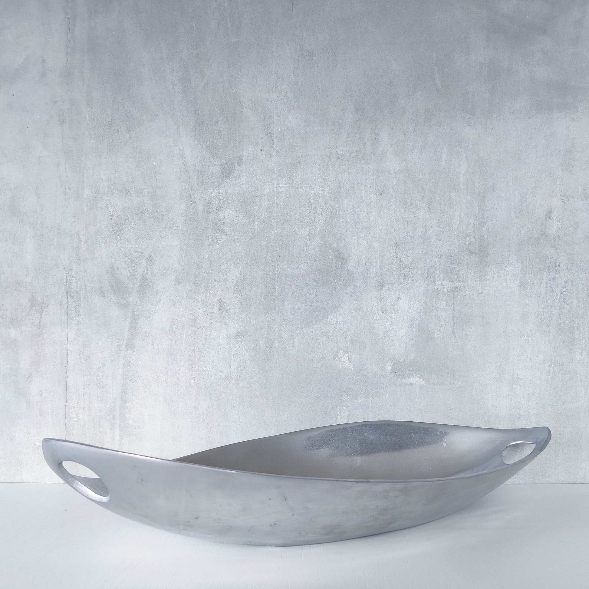 Large sculptural cast aluminium wavy edge organic form bowl/platter/centrepiece with cut out handles. Plums for scale. Please see photos and condition description.