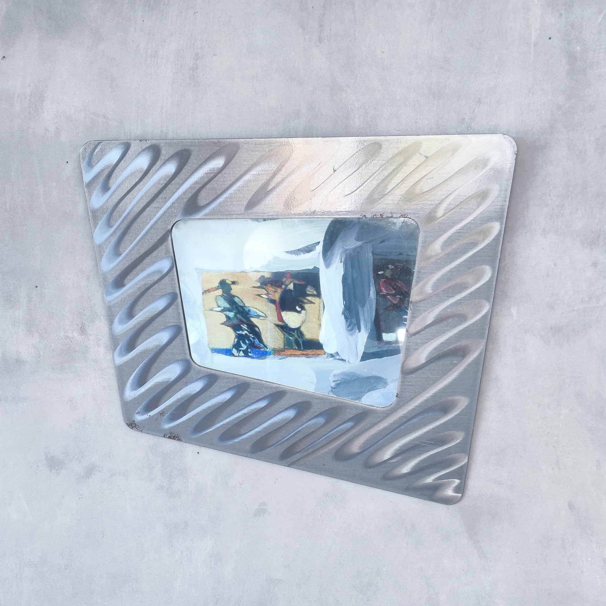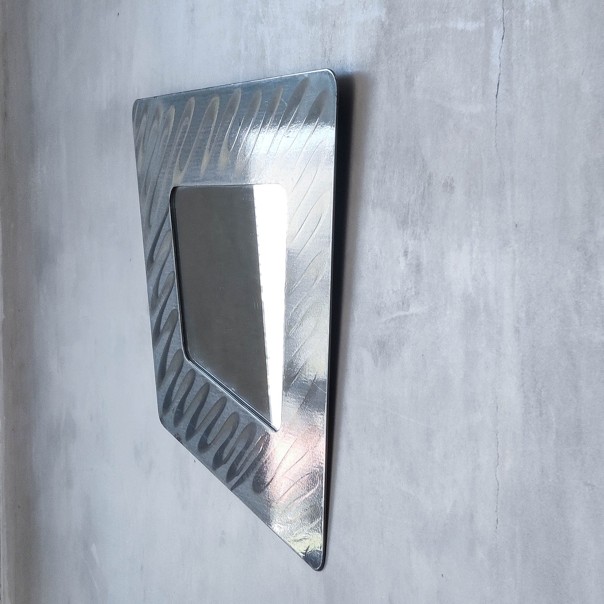 Vintage 00s metalwork postmodern style asymmetric steel mirror