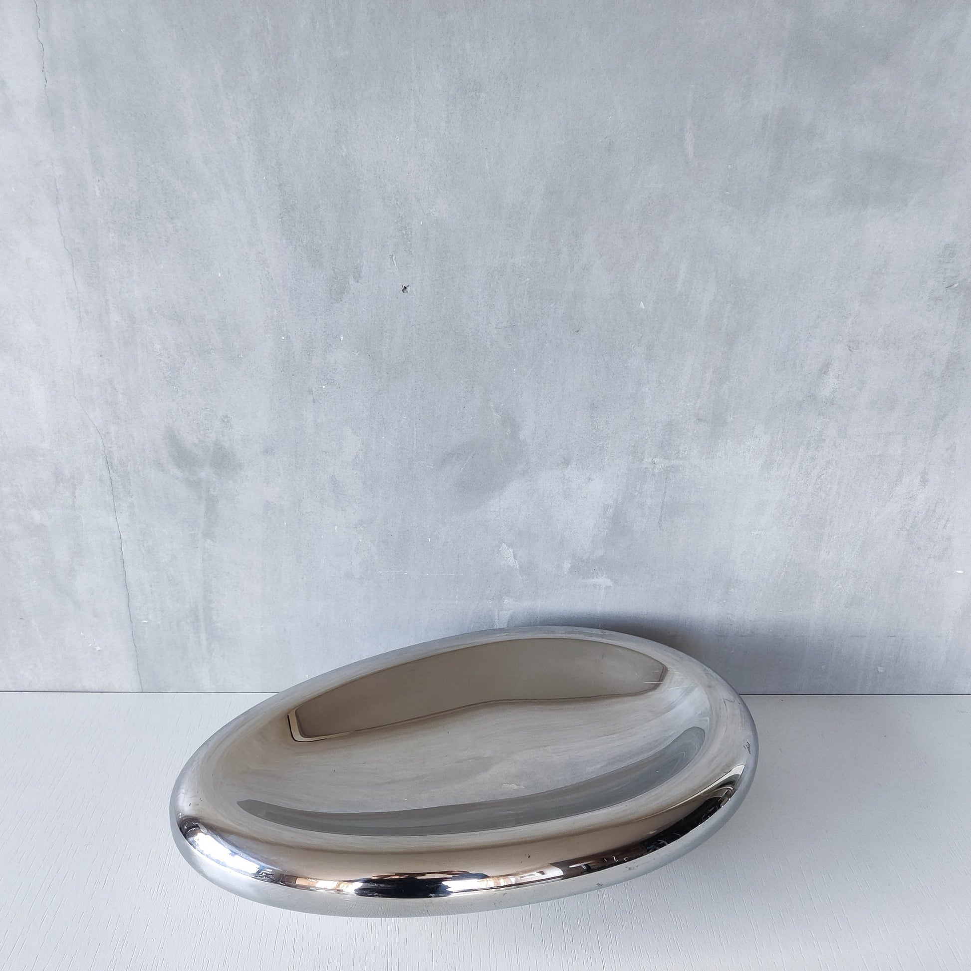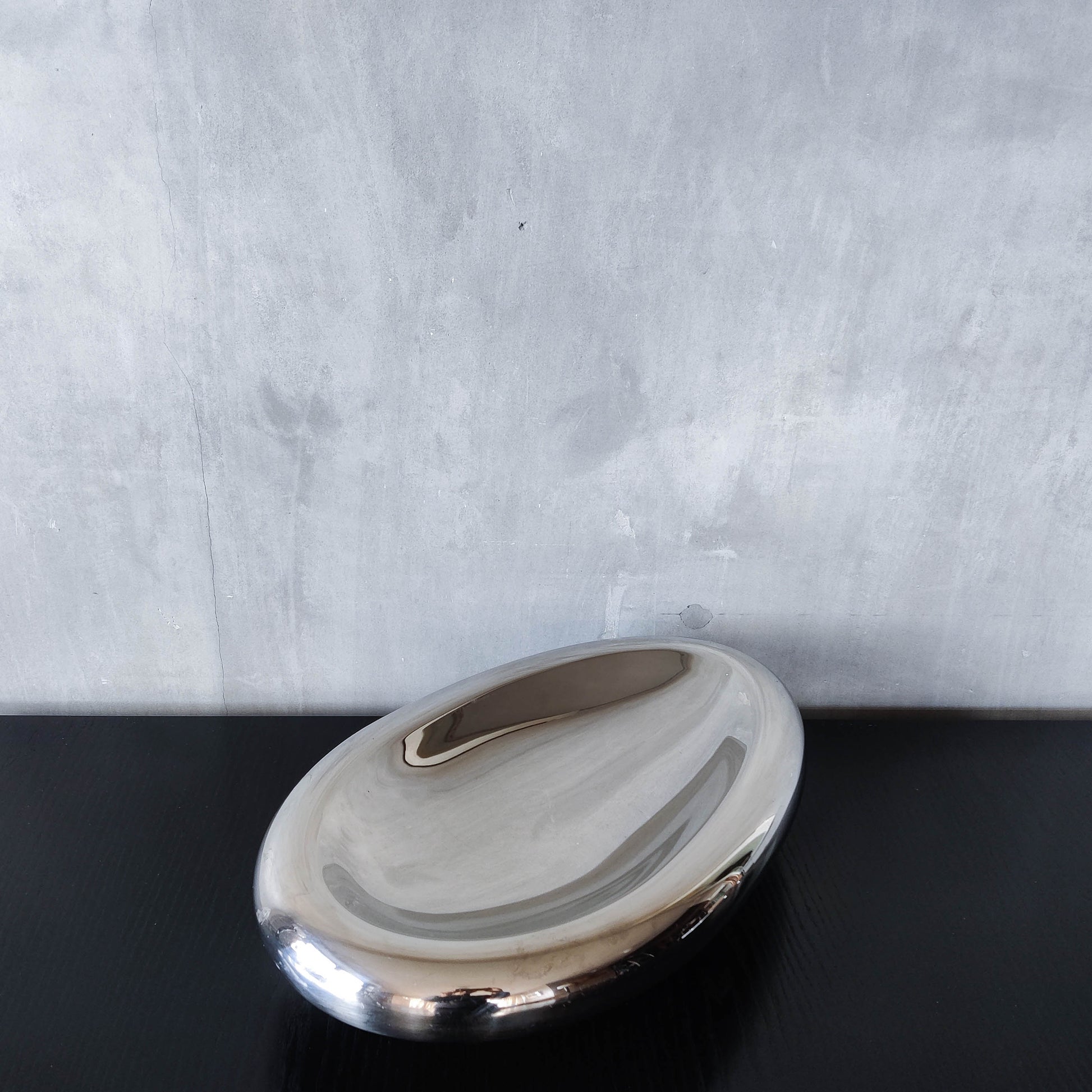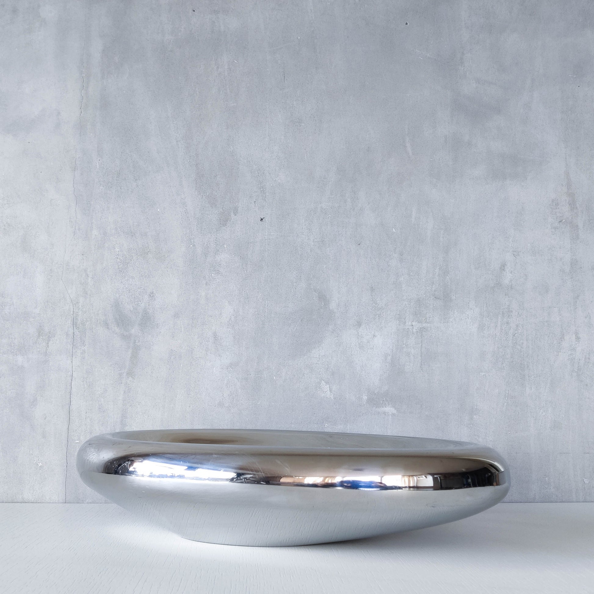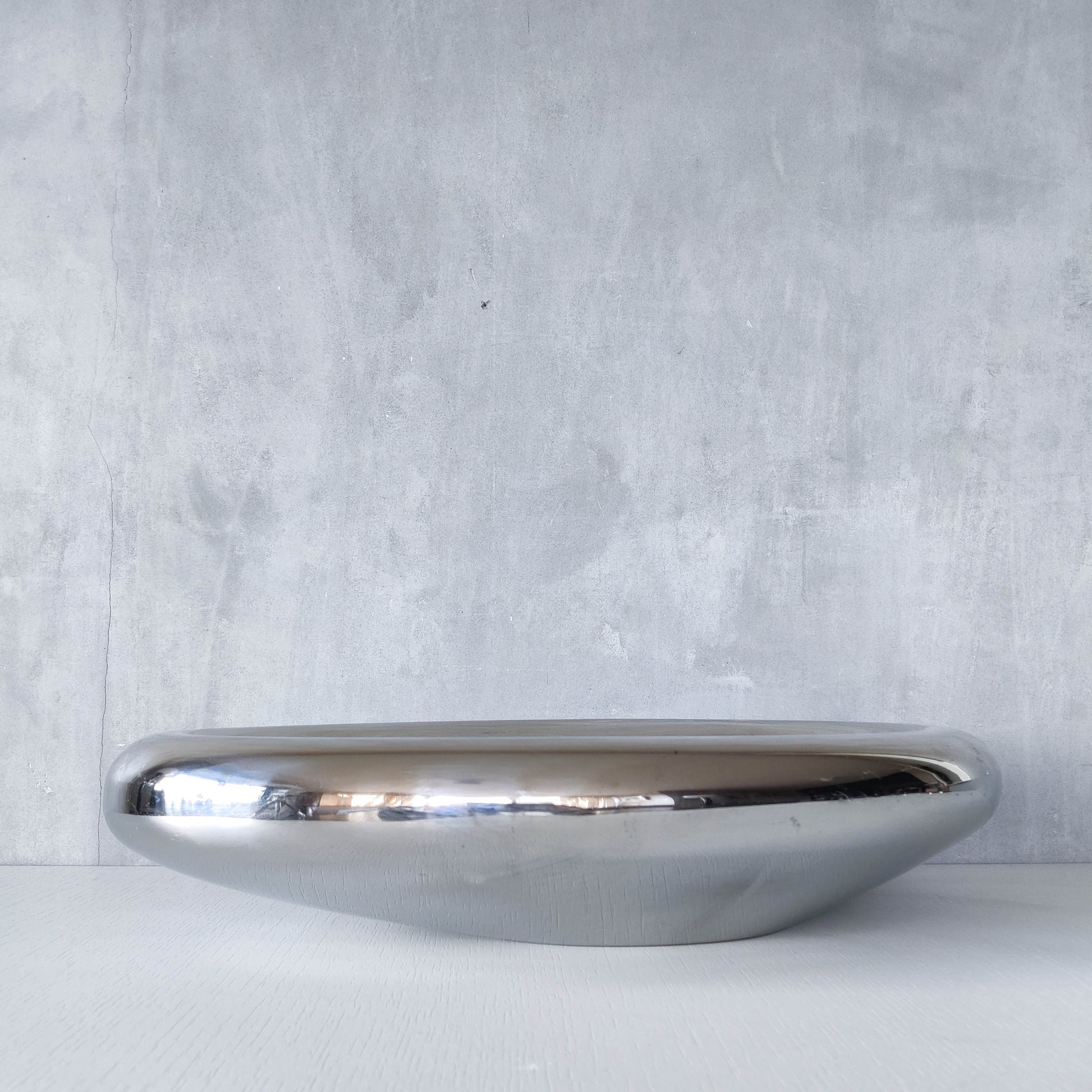 Vintage 00s steel large sculptural centerpiece bowl by architect Nigel Coates for Alessi