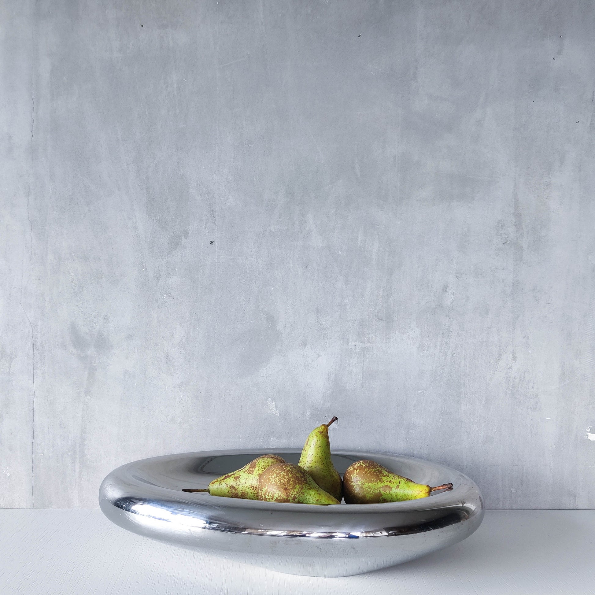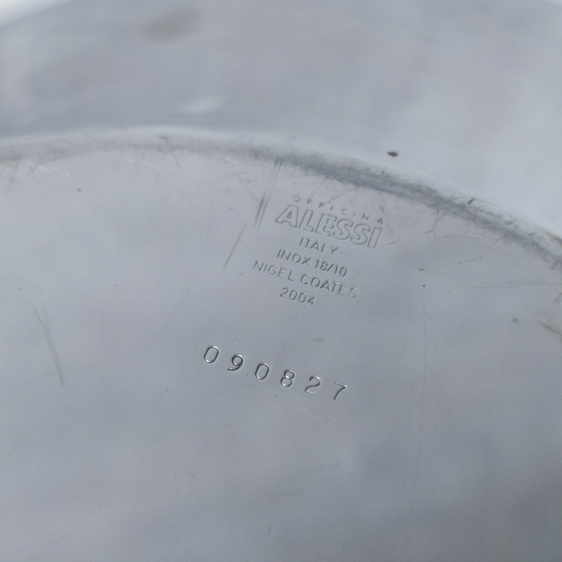 Vintage large sculptural stainless steel centerpiece bowl designed by architect Nigel Coates for Alessi Italy in 2004. Inscribed verso. Please see photos and condition description.