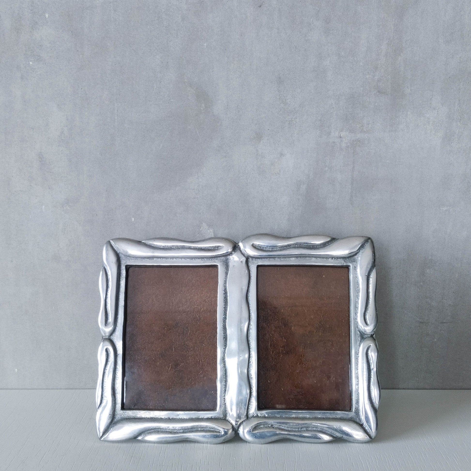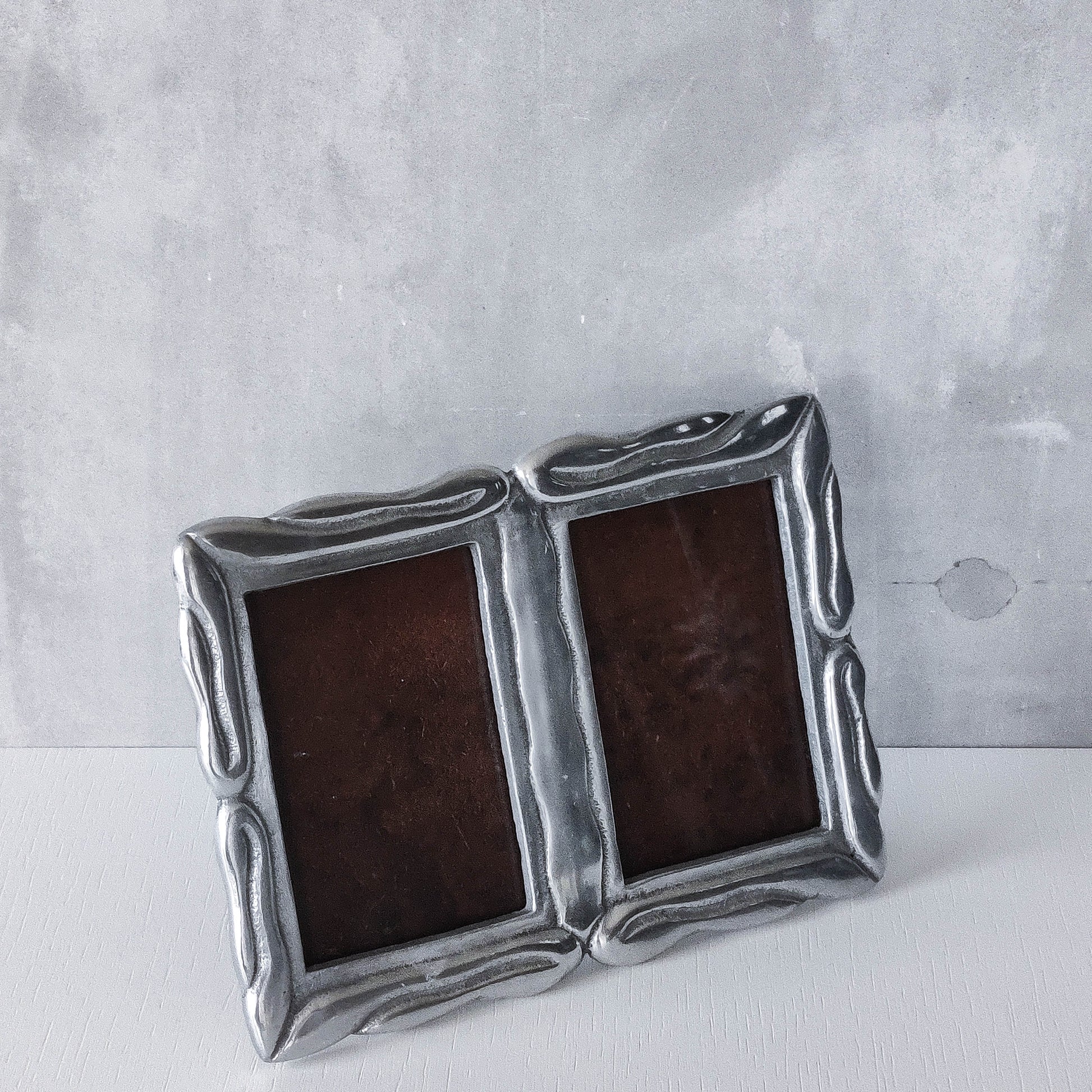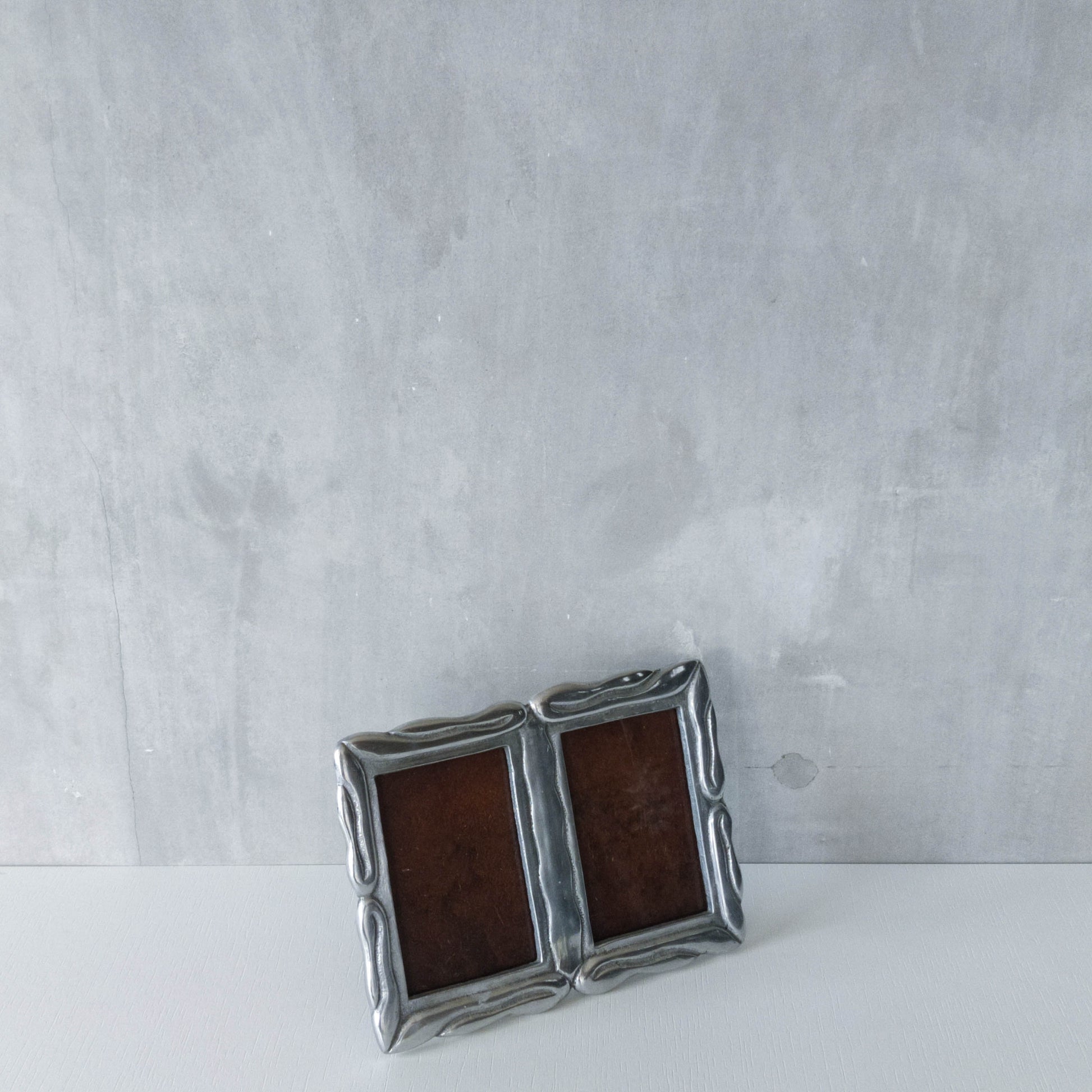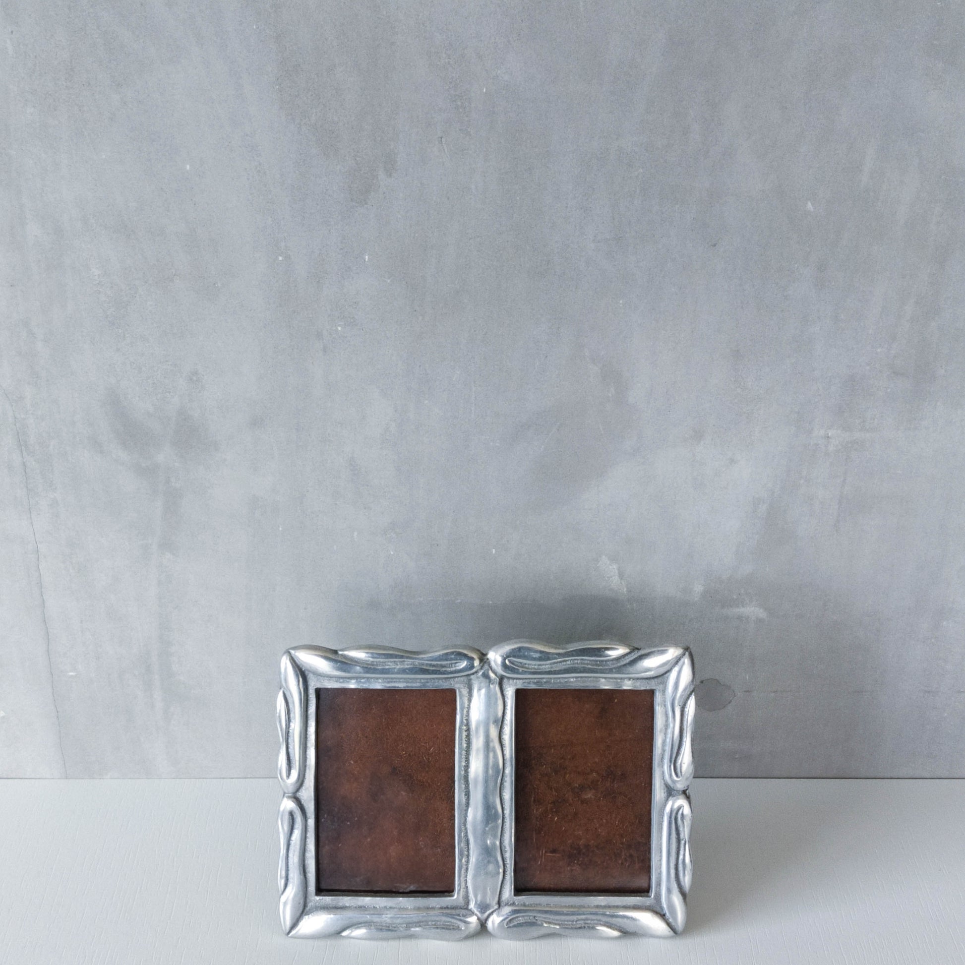 Vintage 1990s cast aluminium organic modernist form double picture photo frame