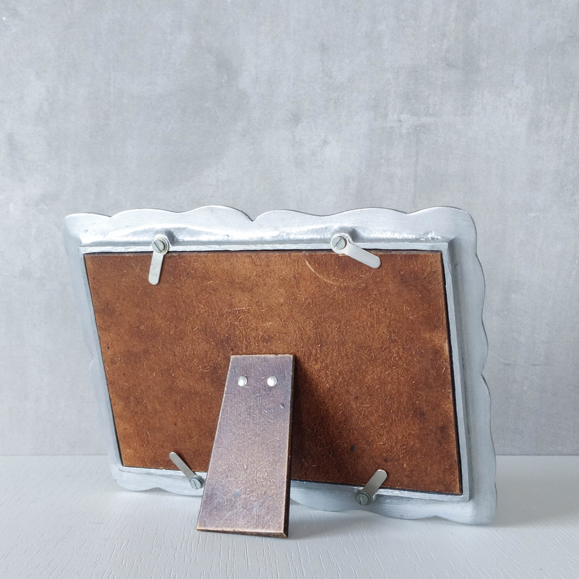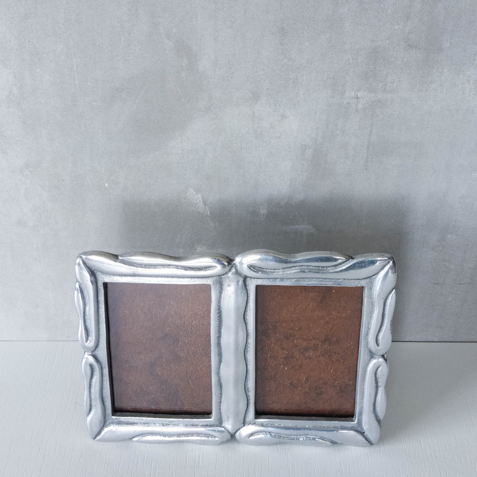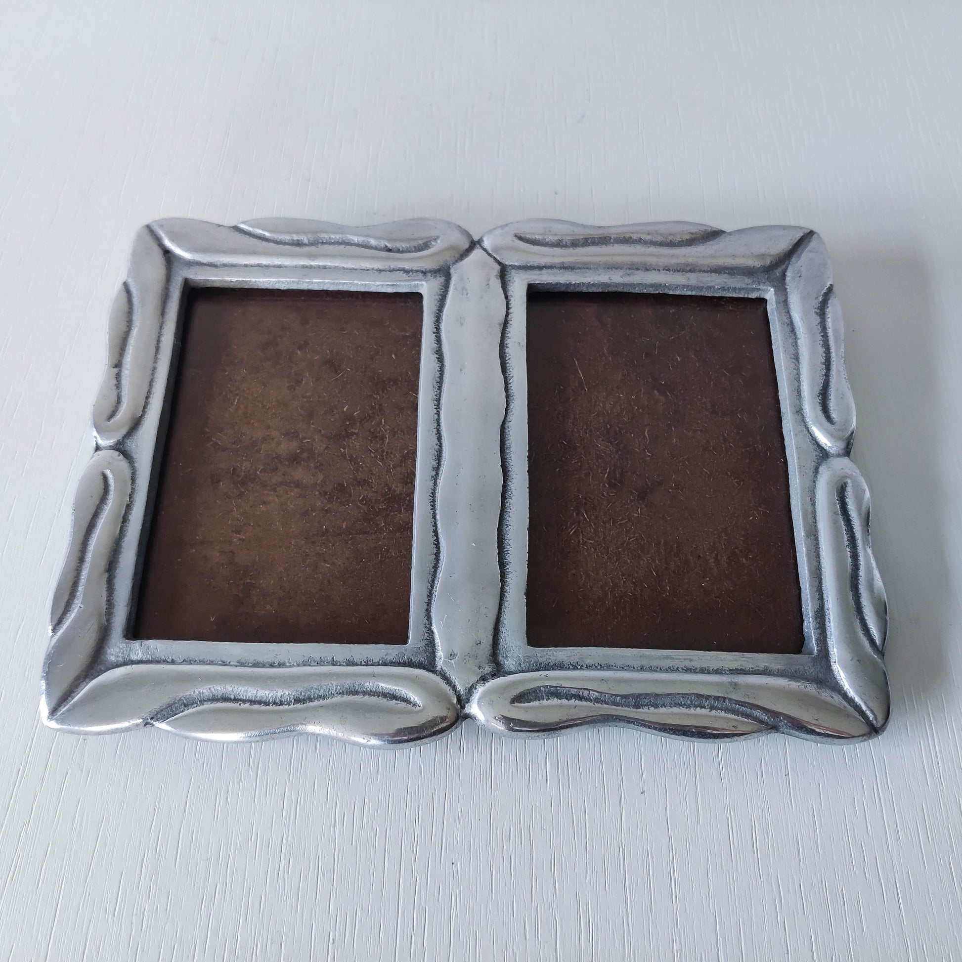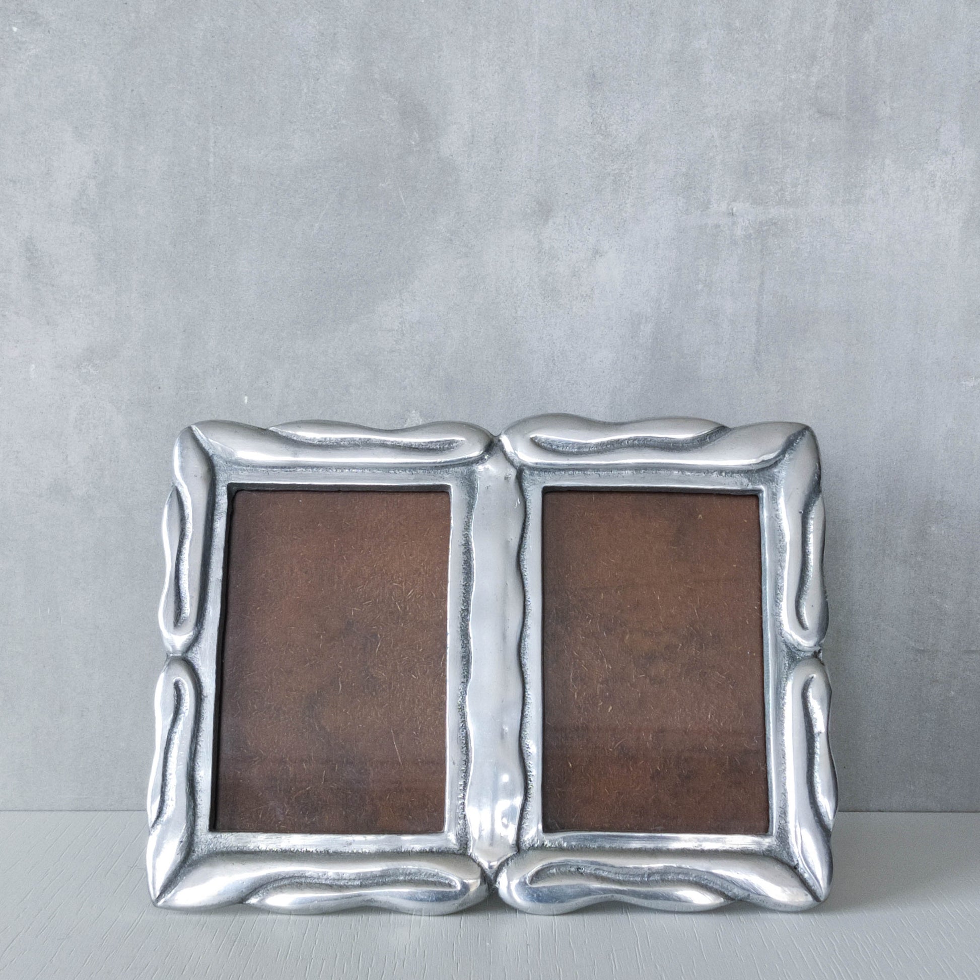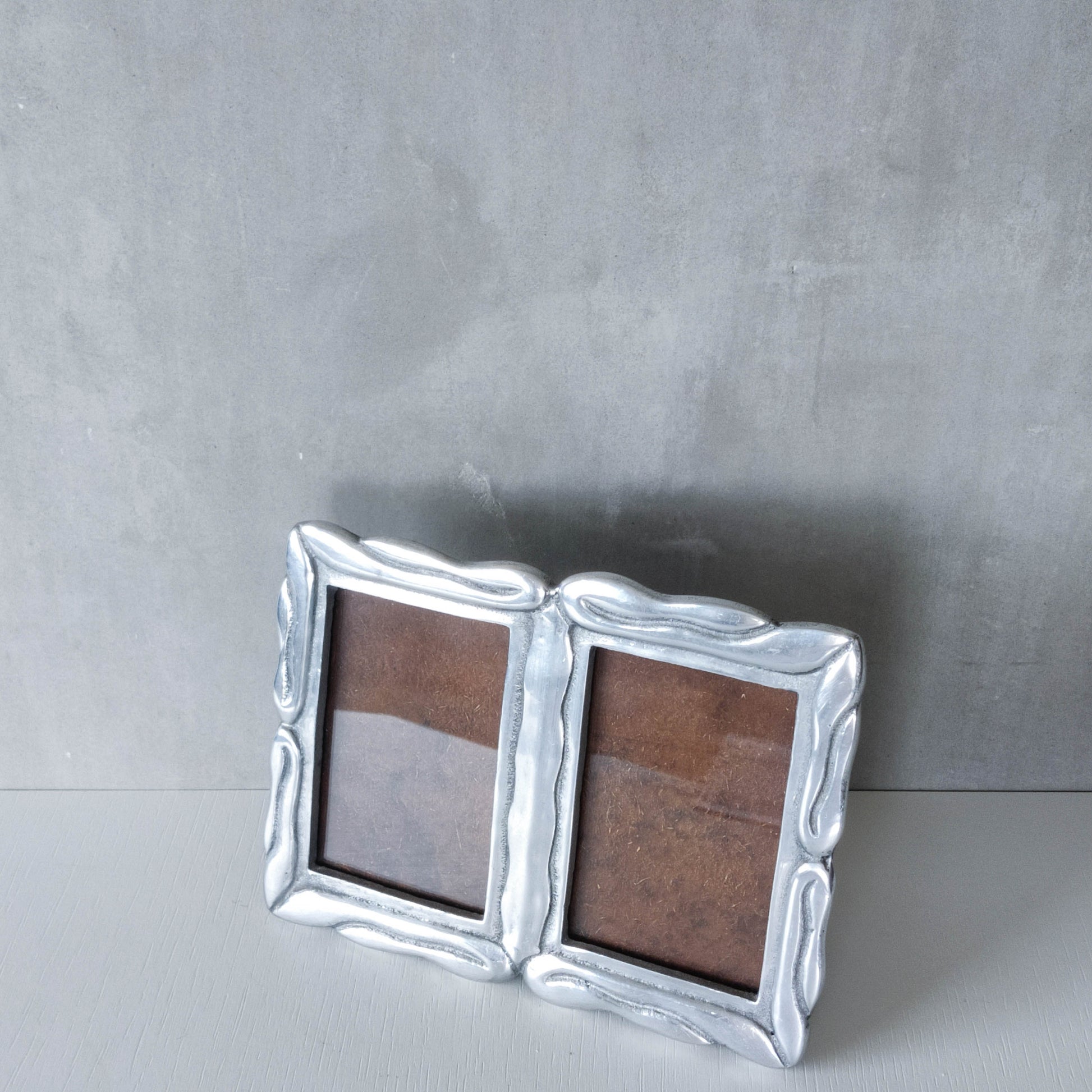 Vintage 1990s cast aluminium organic modernist form double picture photo frame