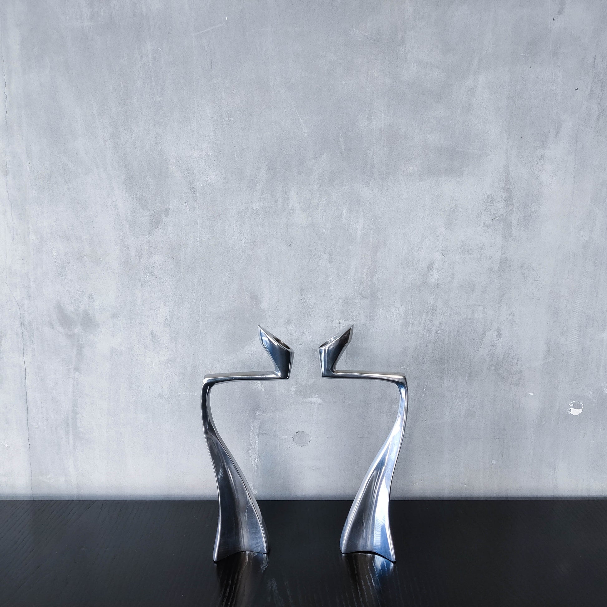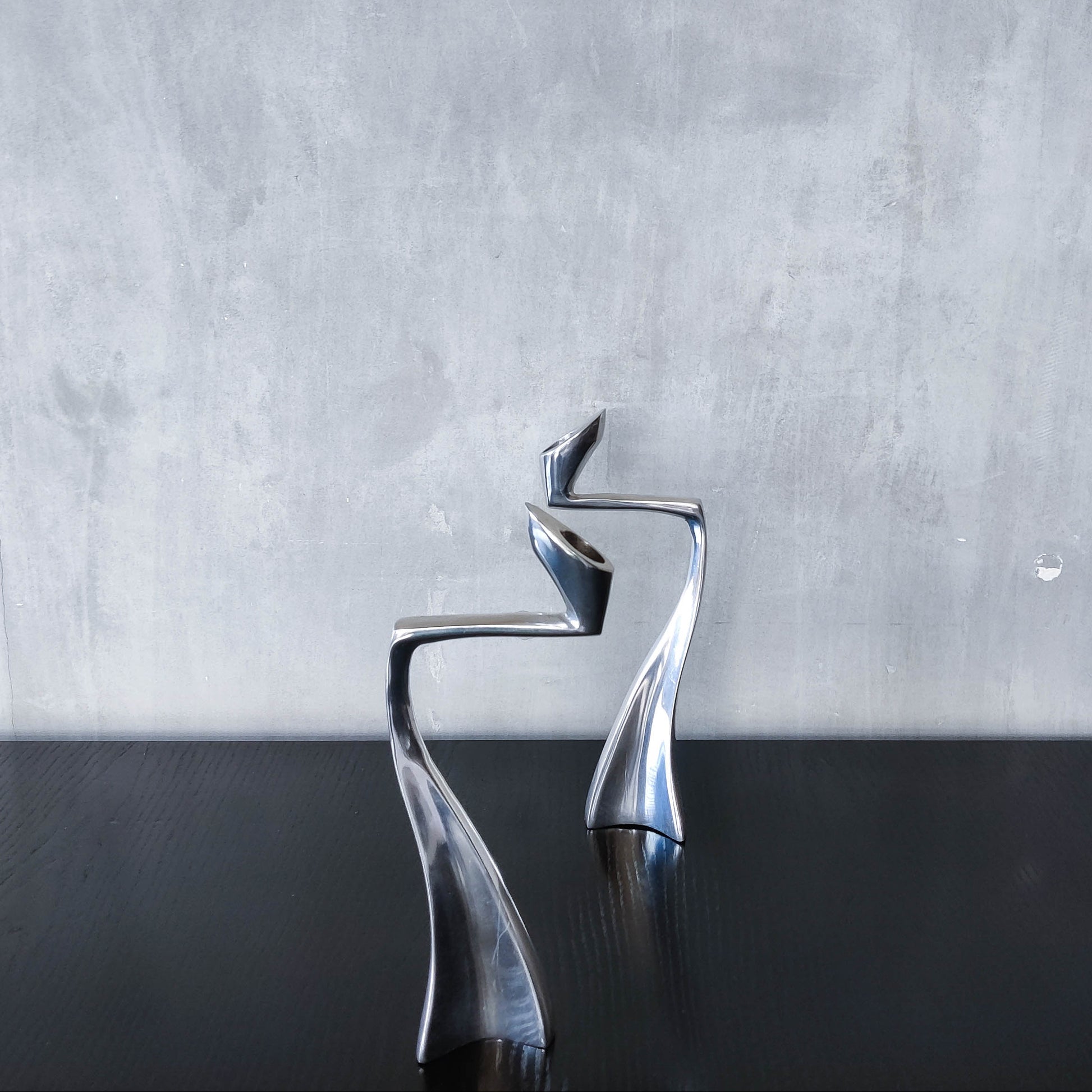 Vintage 1990s cast aluminium sculptural candle holders Matthew Hilton style