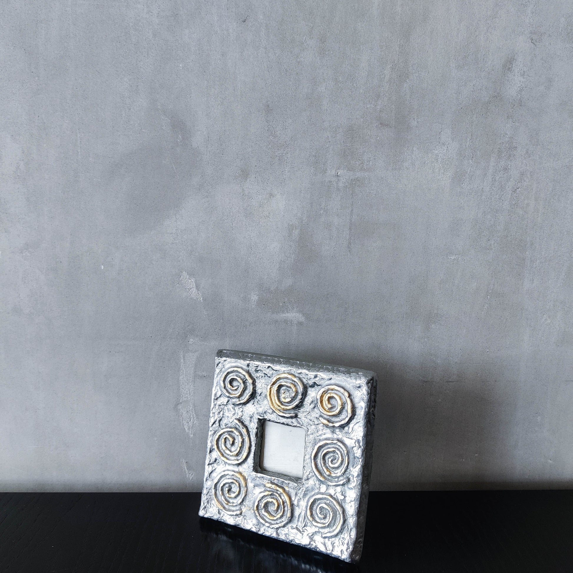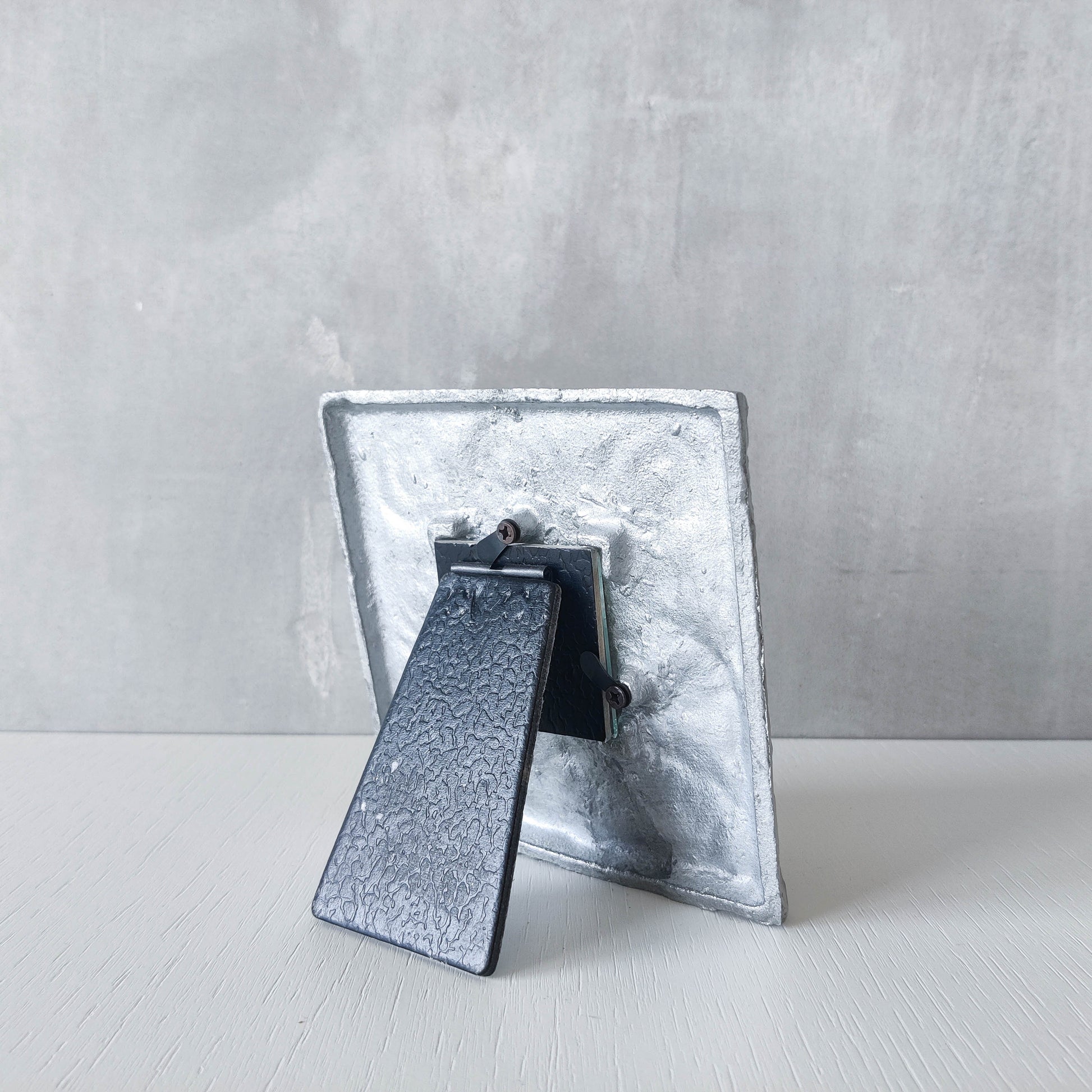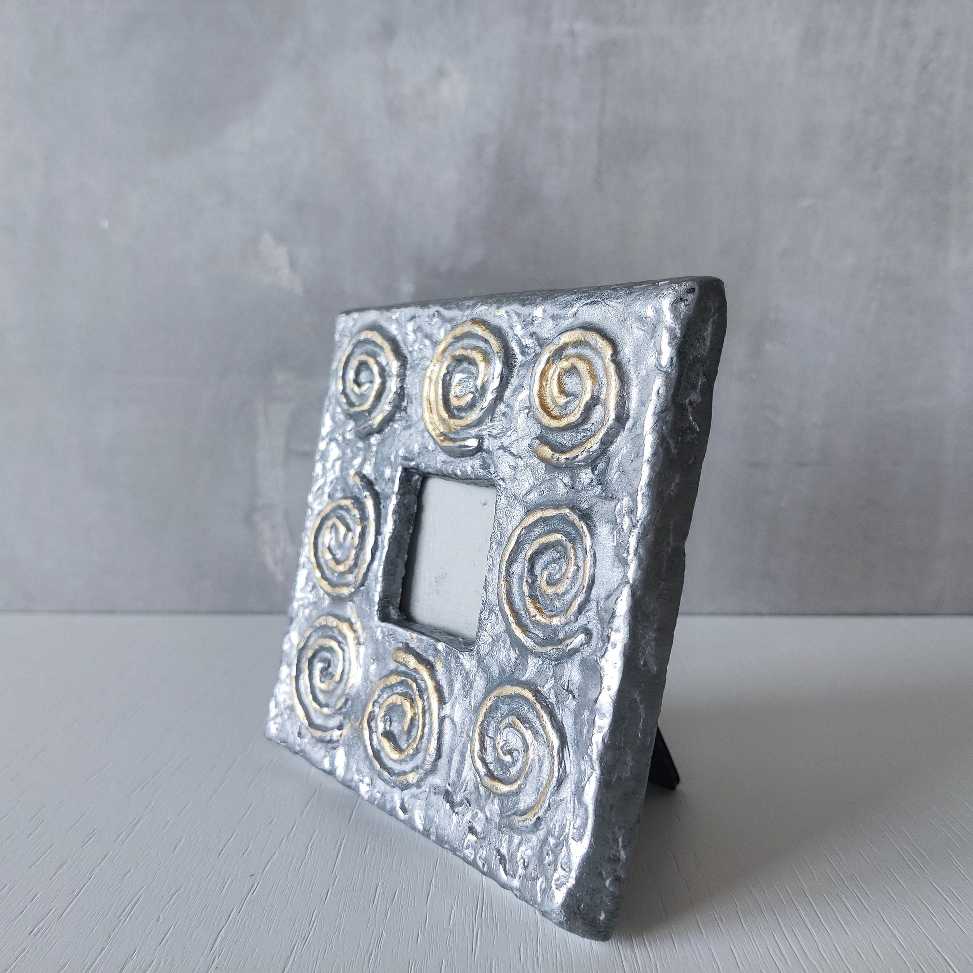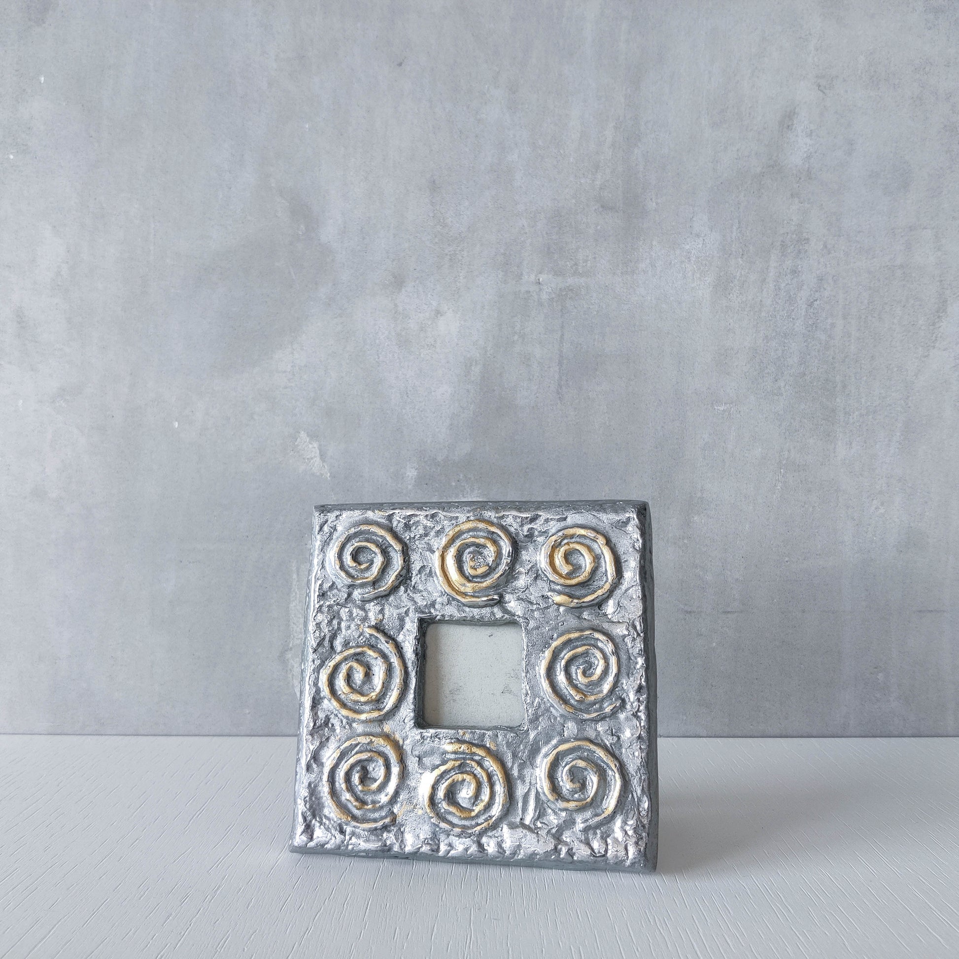 1990s cast aluminium chunky sculptural photo frame with texture and embossed spirals with sponged gold detail. Please see photos and condition.