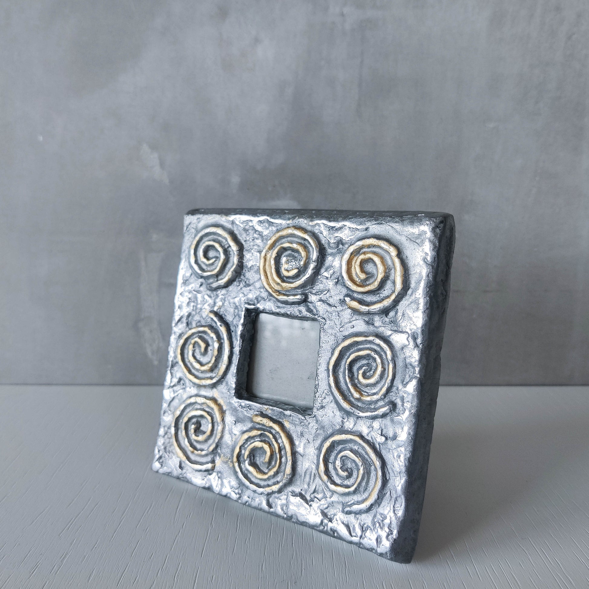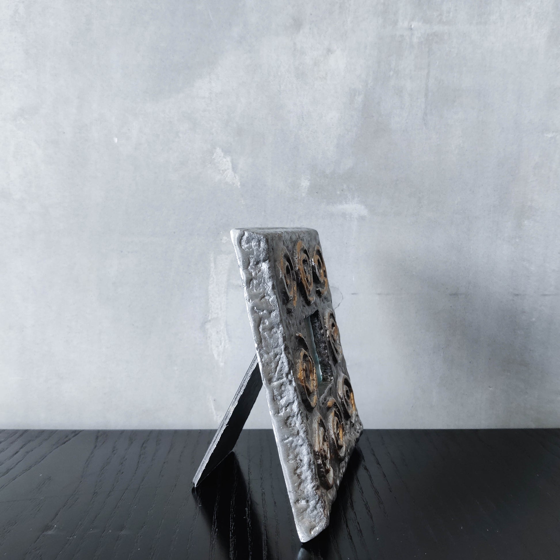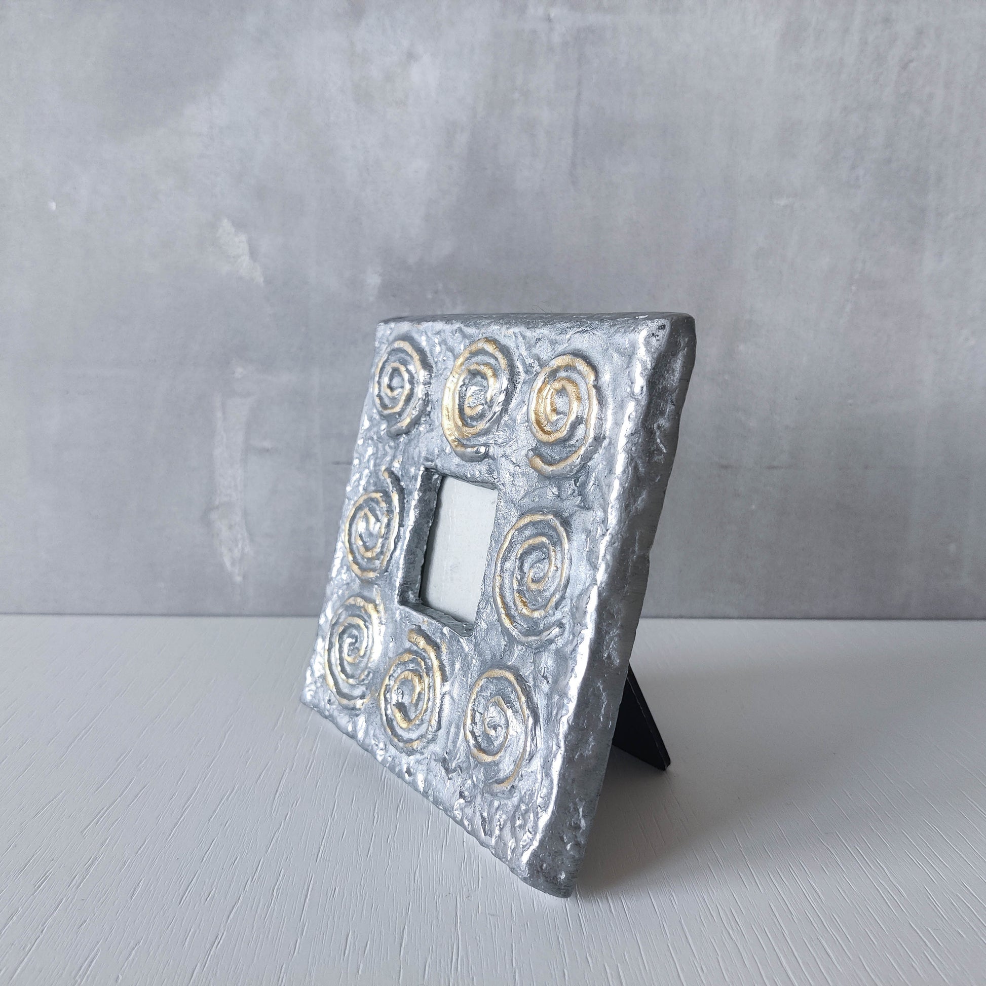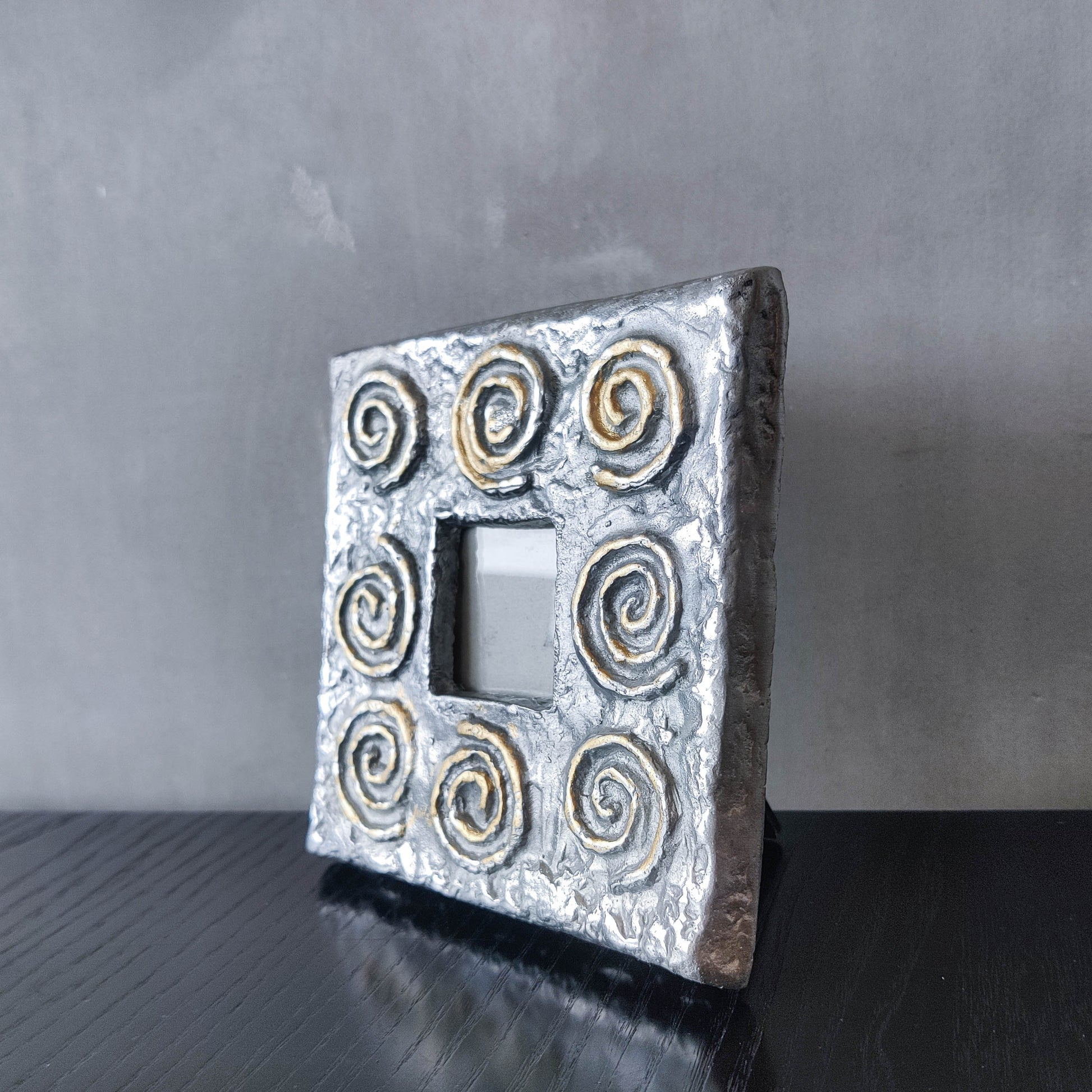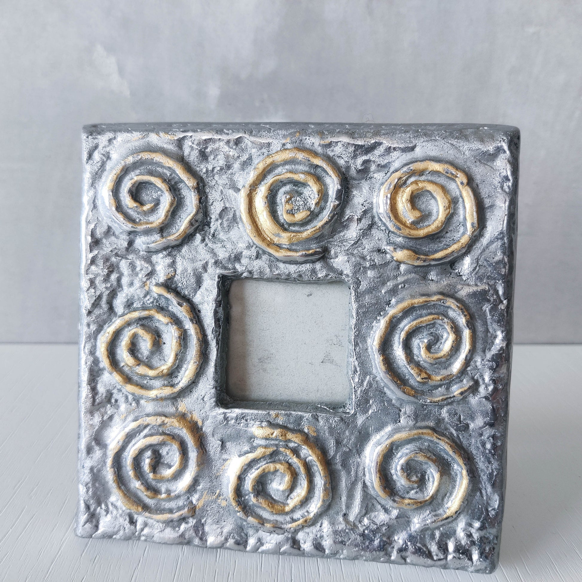 1990s cast aluminium chunky sculptural photo frame with texture and embossed spirals with sponged gold detail. Please see photos and condition.