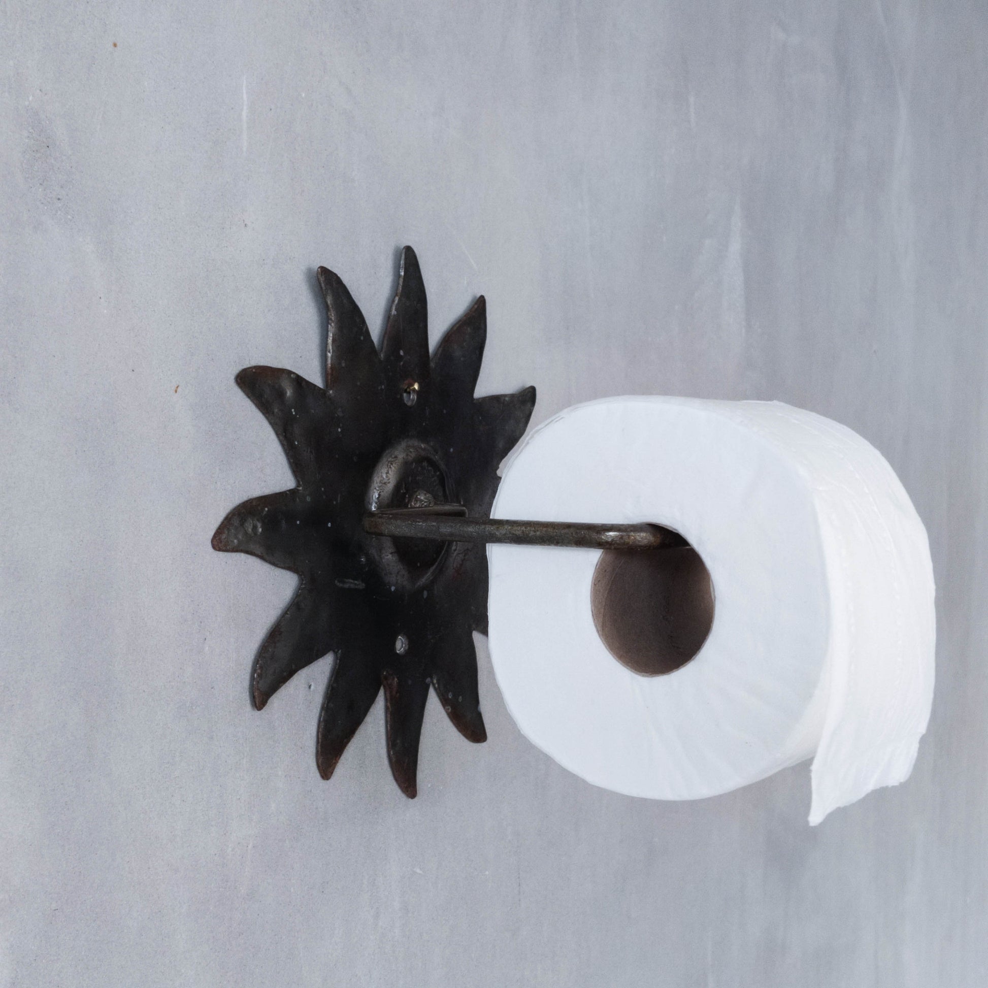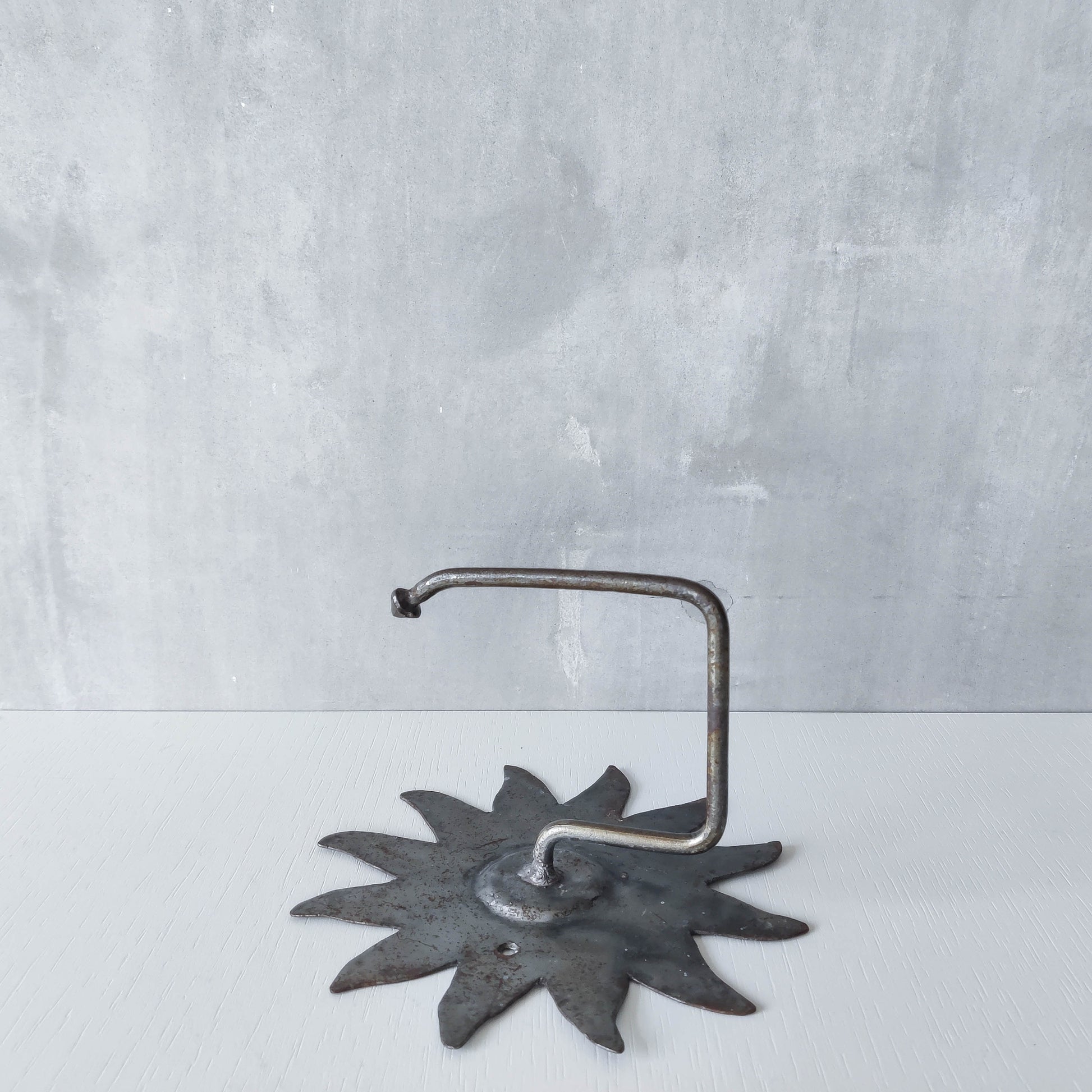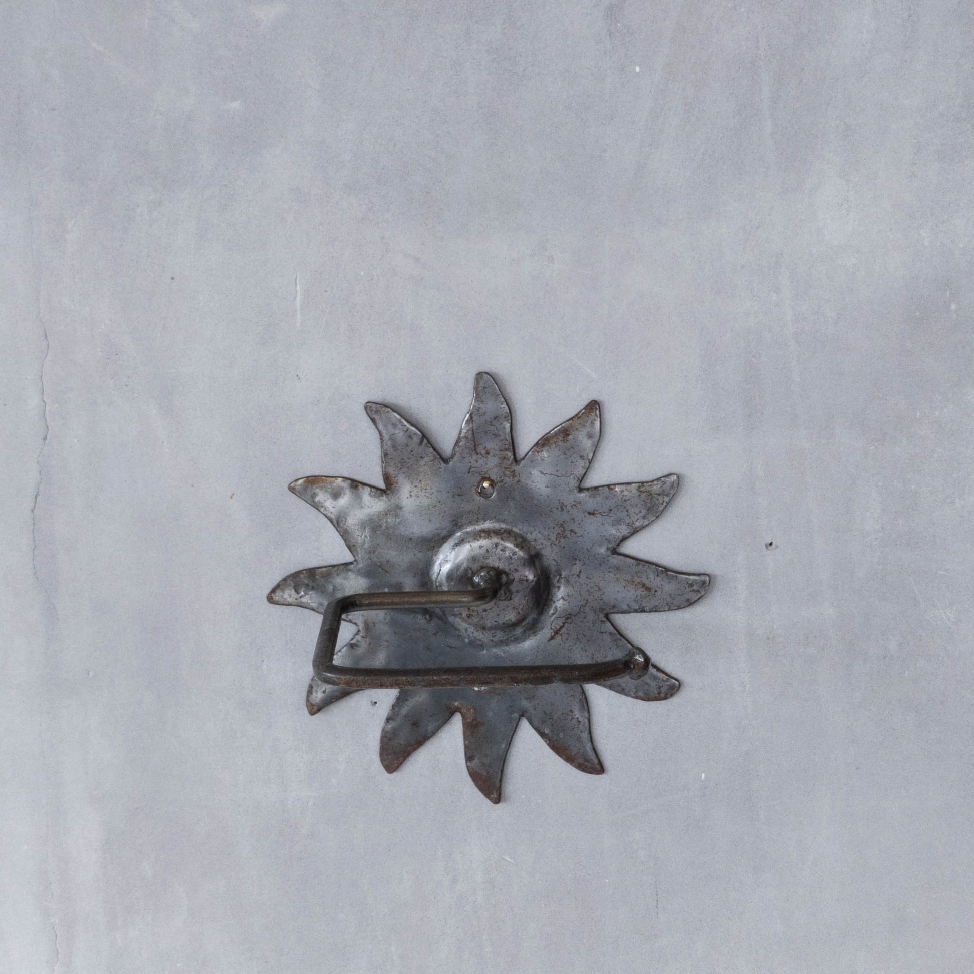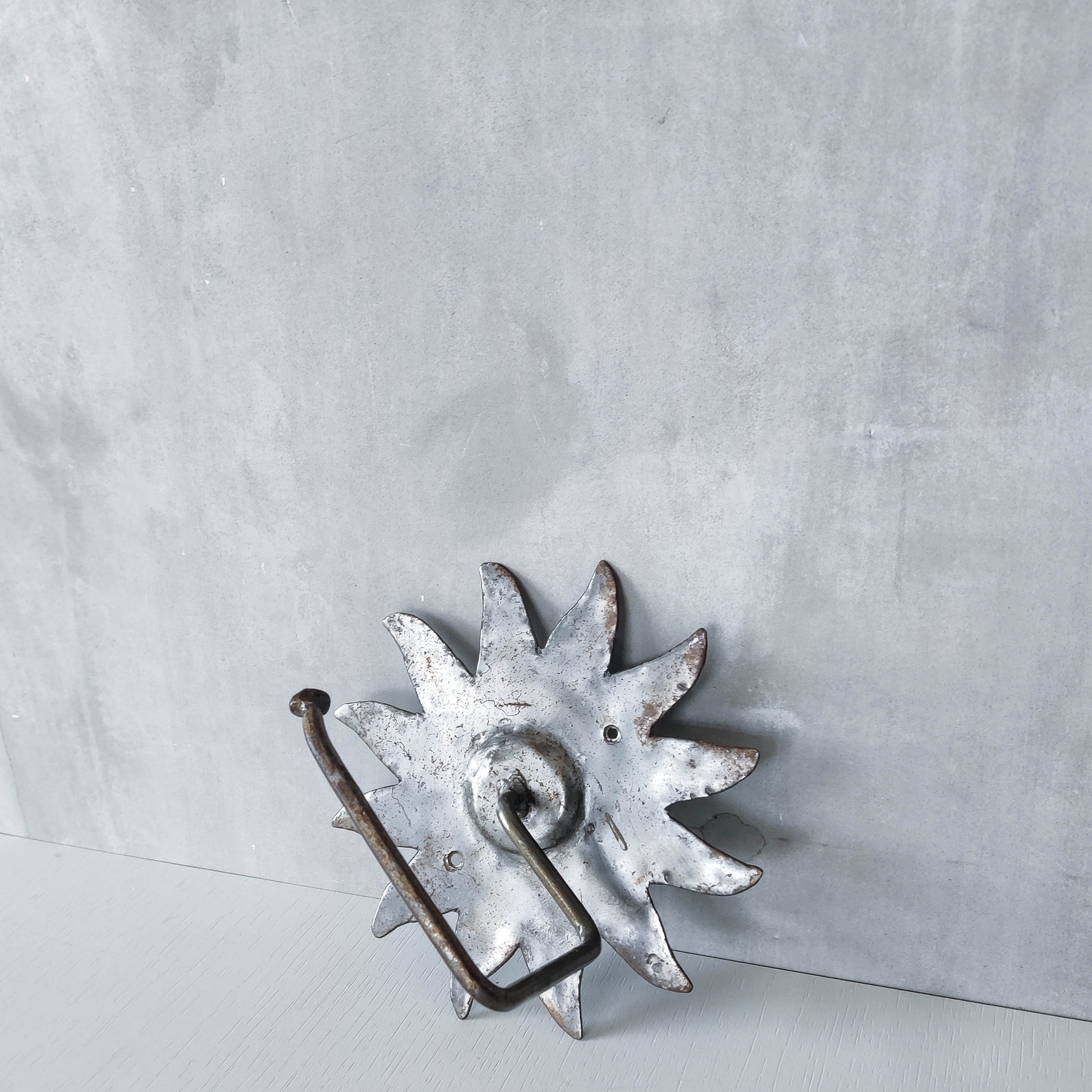 Vintage 1990s handmade artist metalwork steel cut sun toilet roll holder