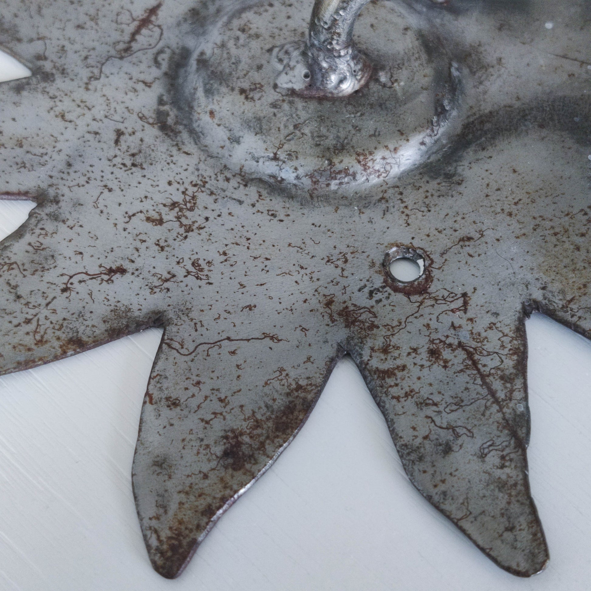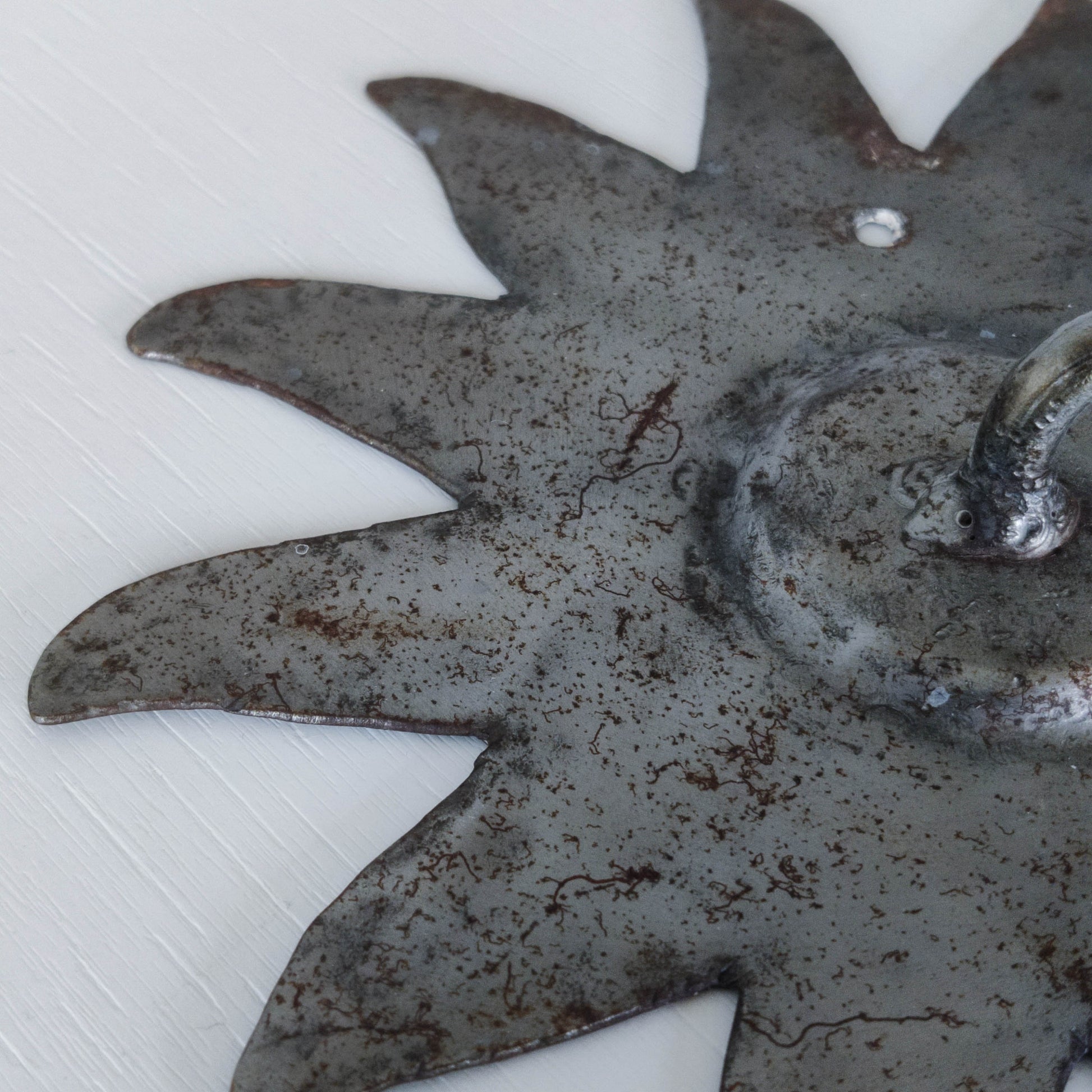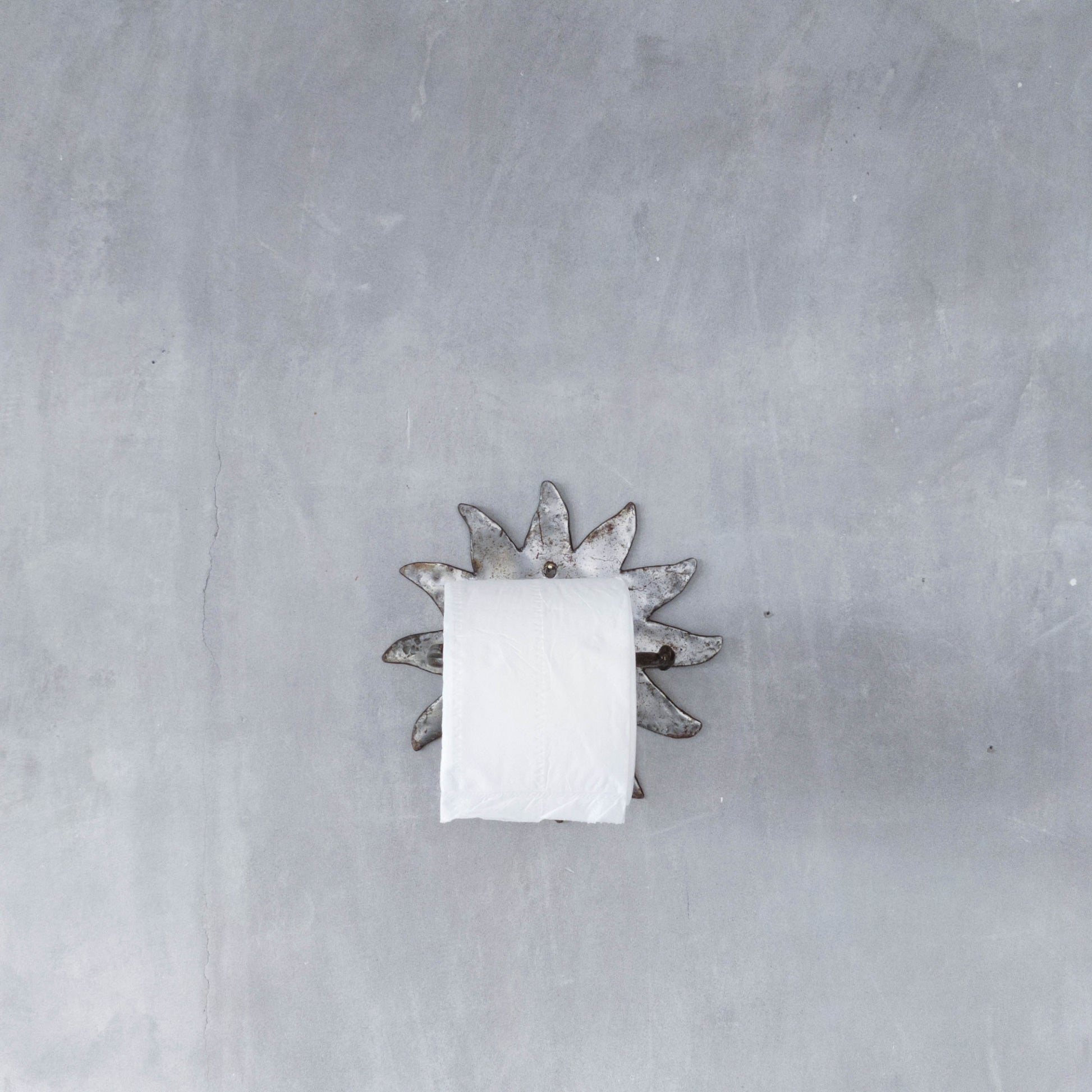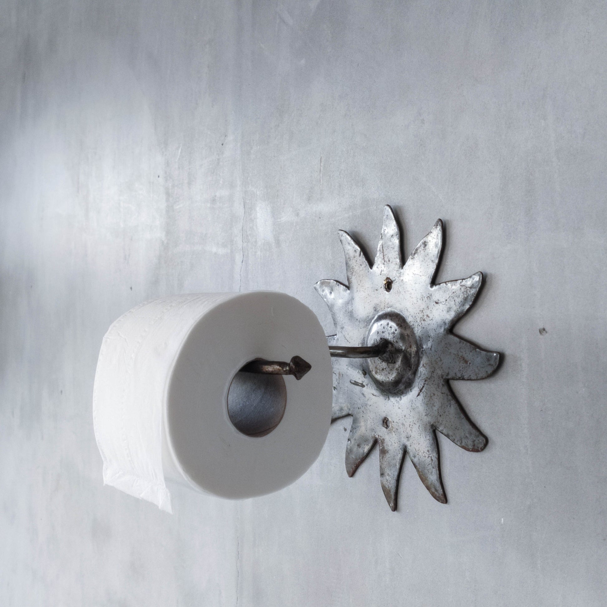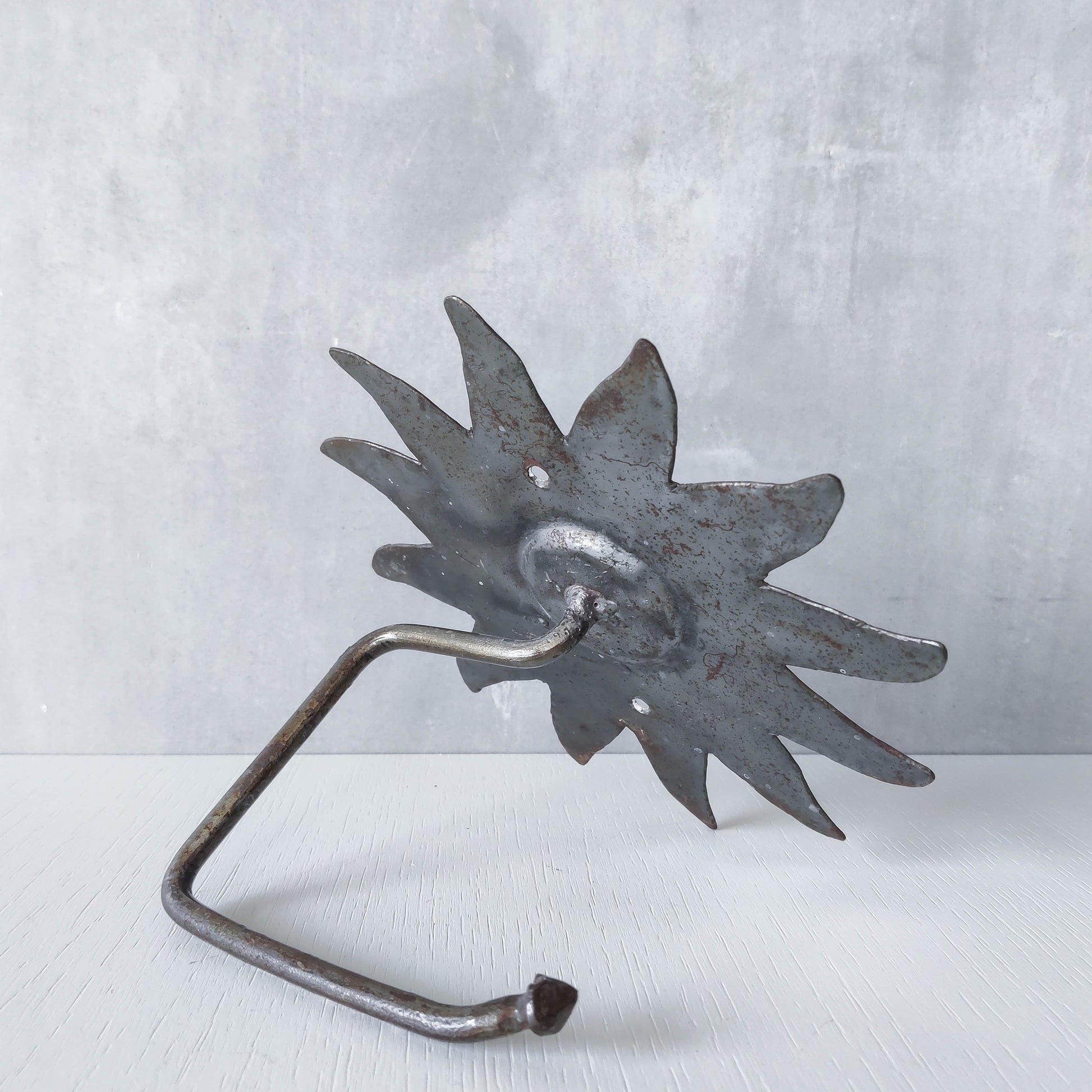 Vintage 1990s handmade artist metalwork steel cut sun toilet roll holder