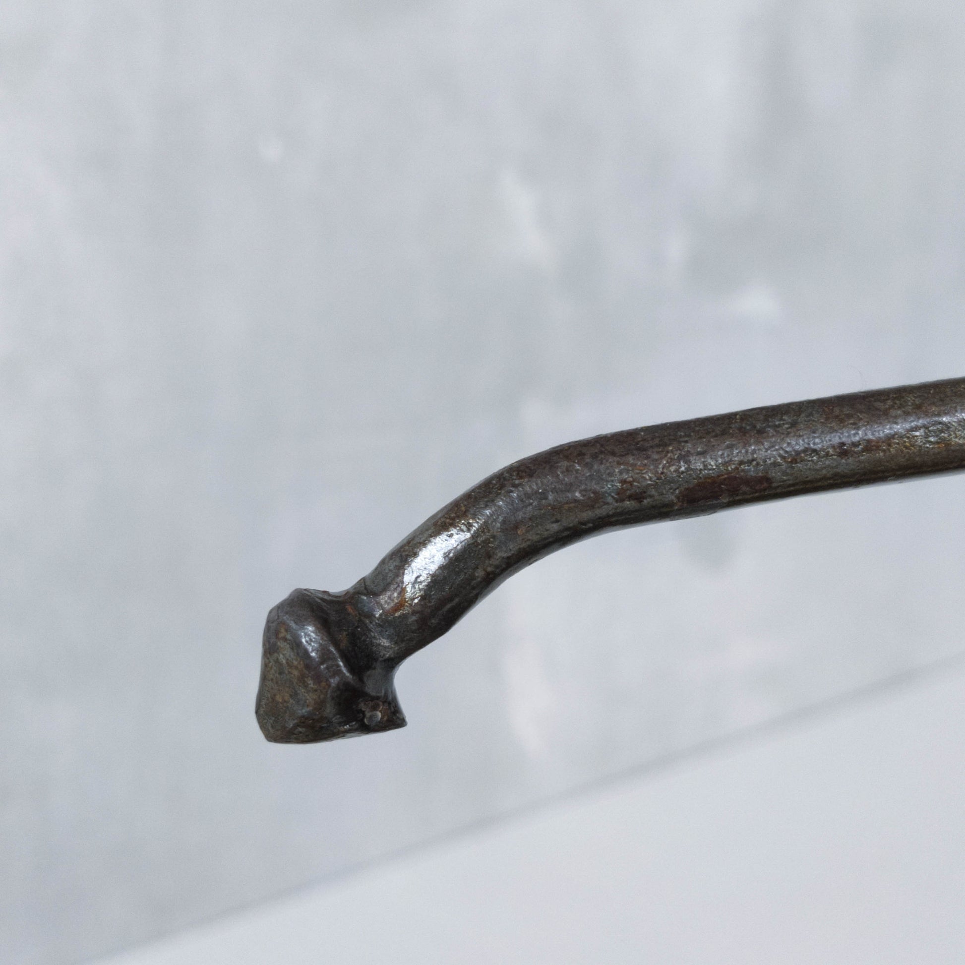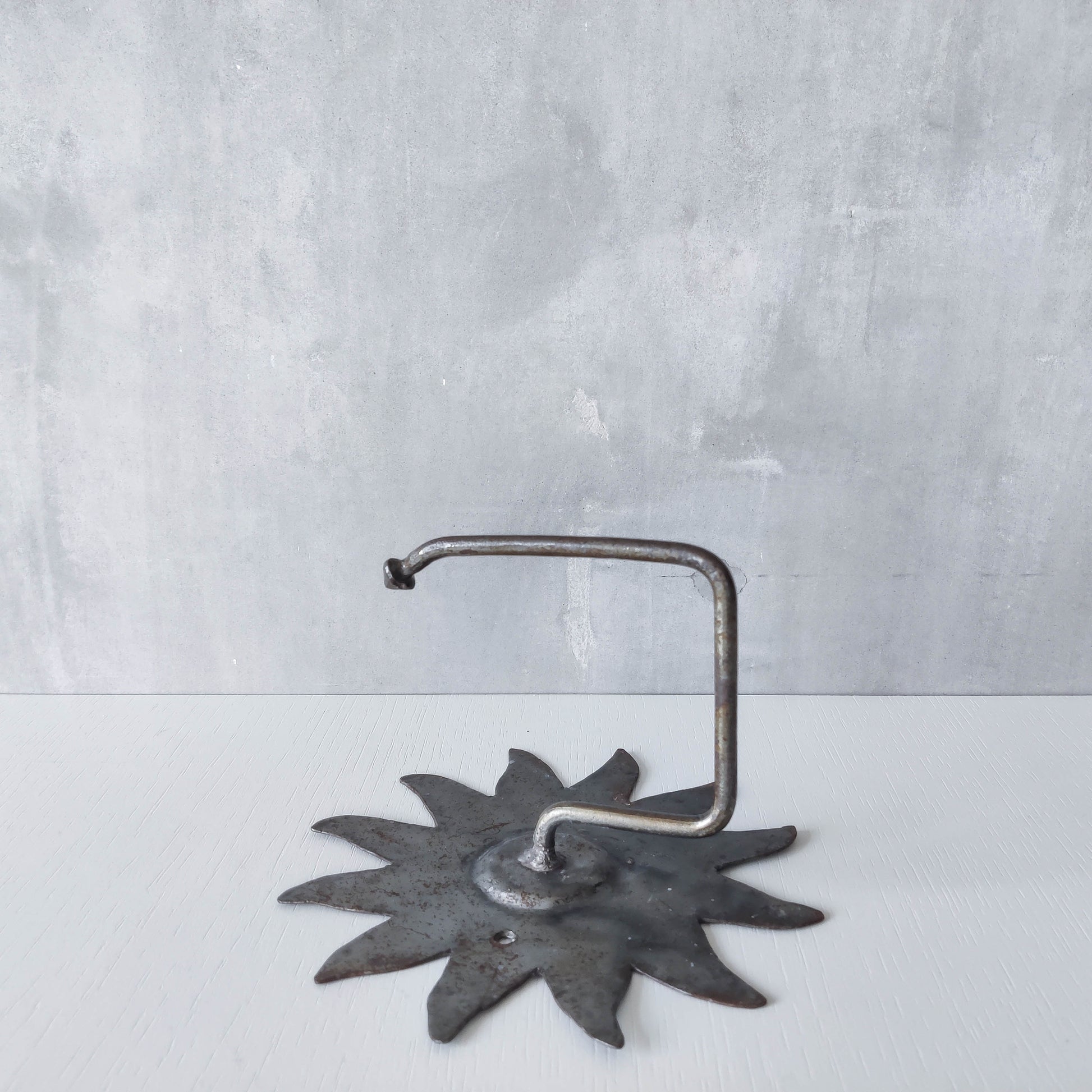 Brilliant vintage 1990s artist made toilet roll holder from cut and pressed steel with forged bracket with little spearhead finial end. Very handmade in form, nicely crafted. Lacquered steel. Please see photos and condition description.
