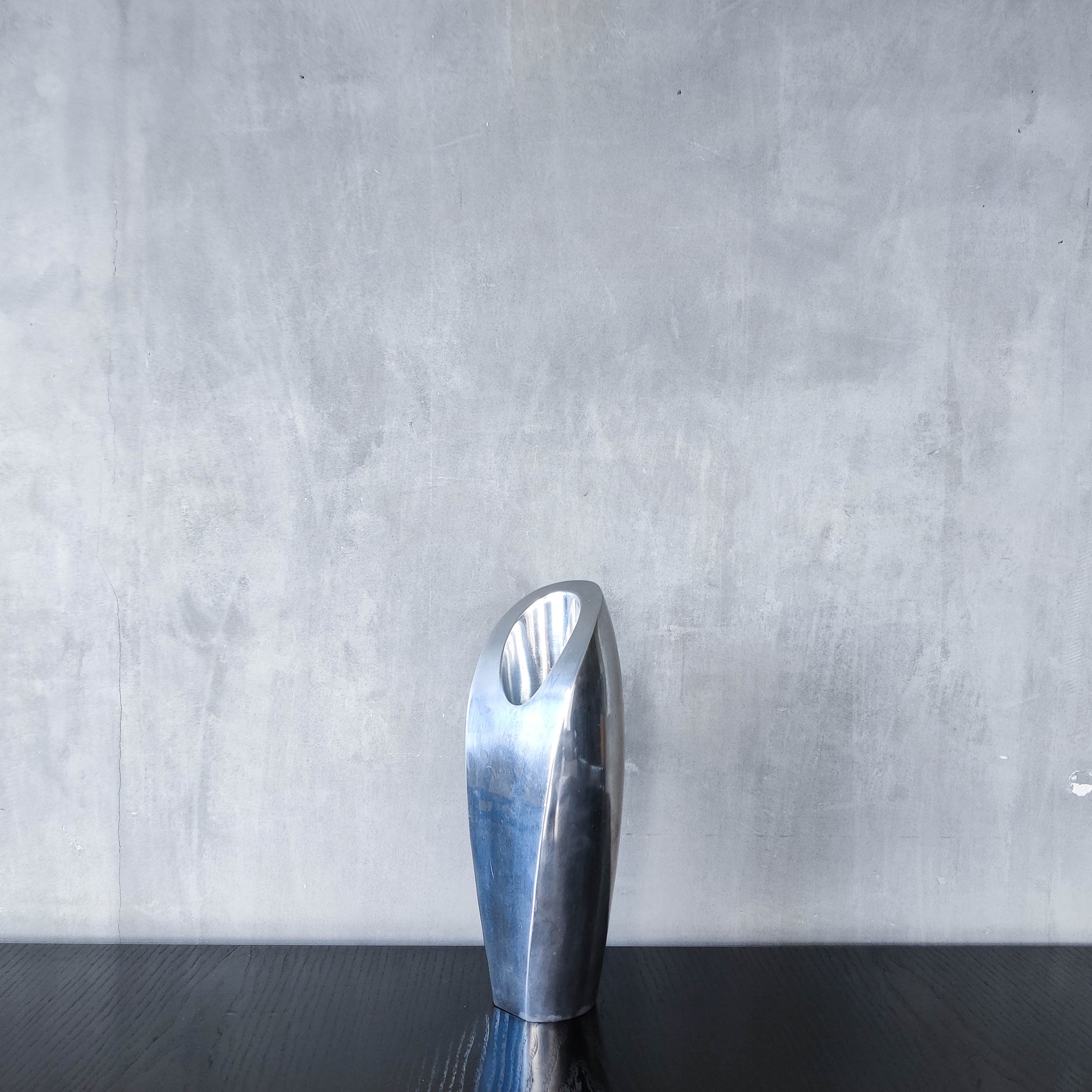 Sculptural chunky heavy cast aluminium vase very similar to Nambe (but not stamped). Incredible form and lovely scale. Please see photos and condition description.
