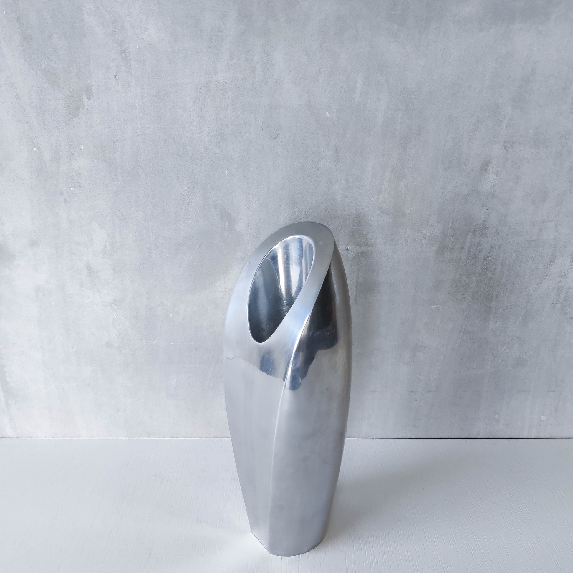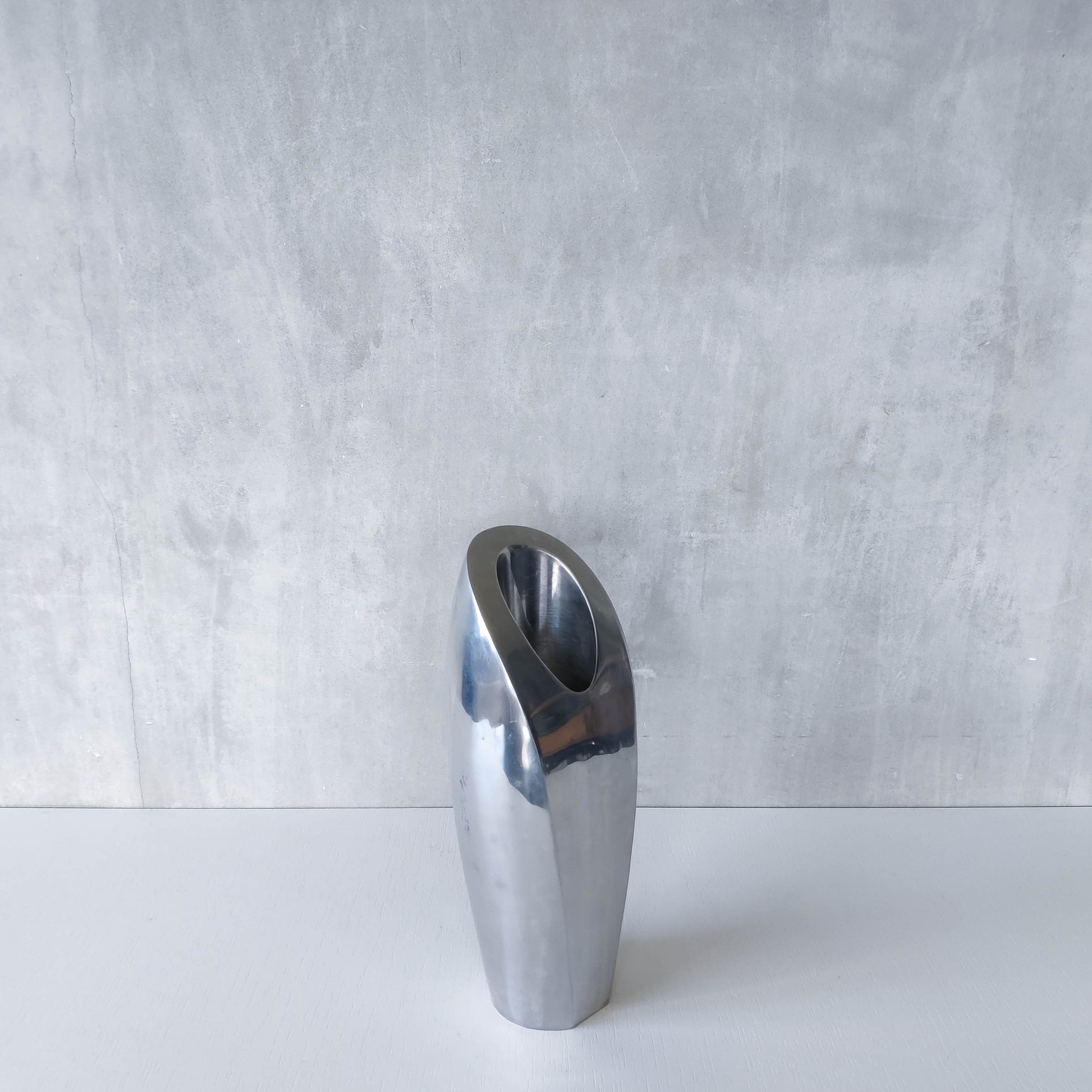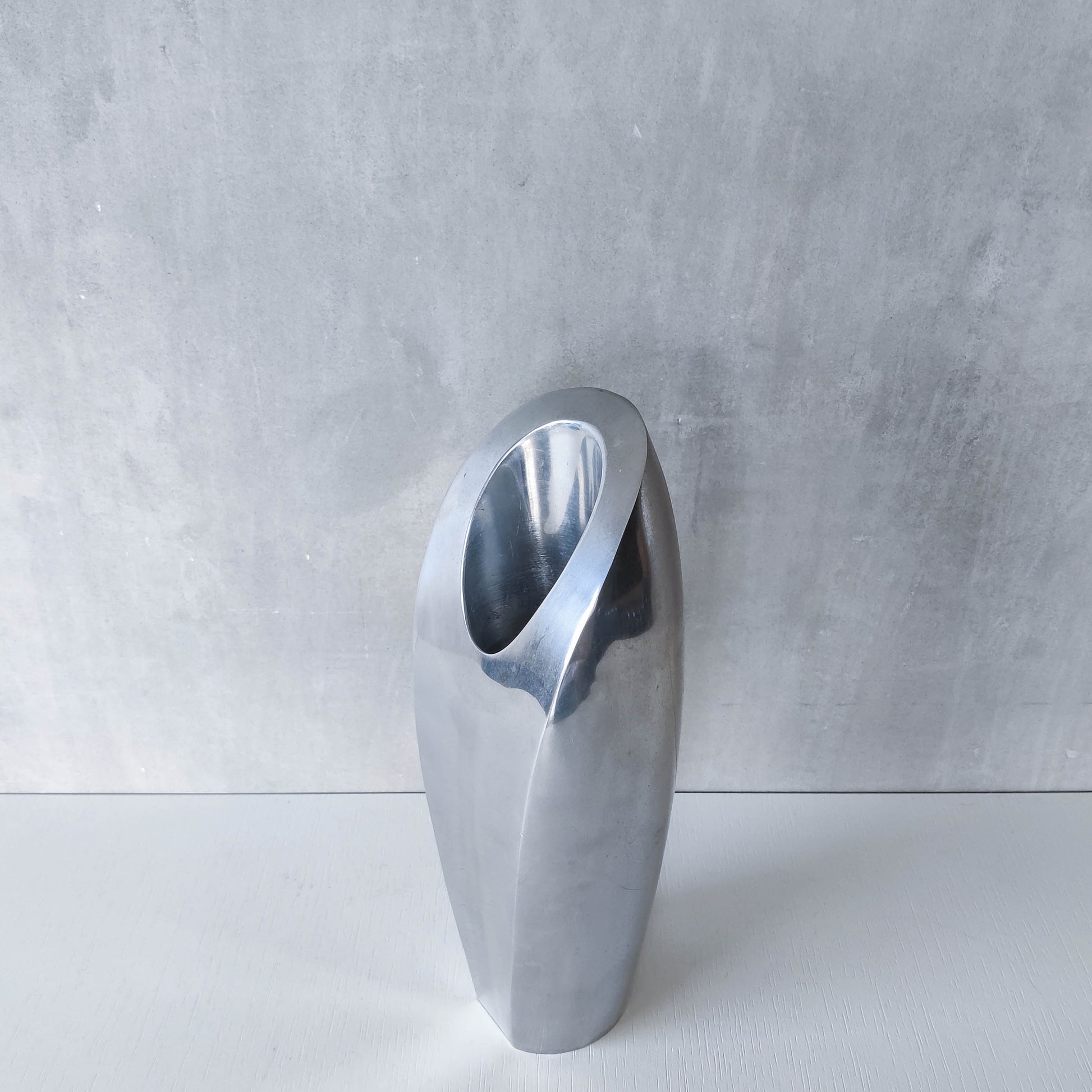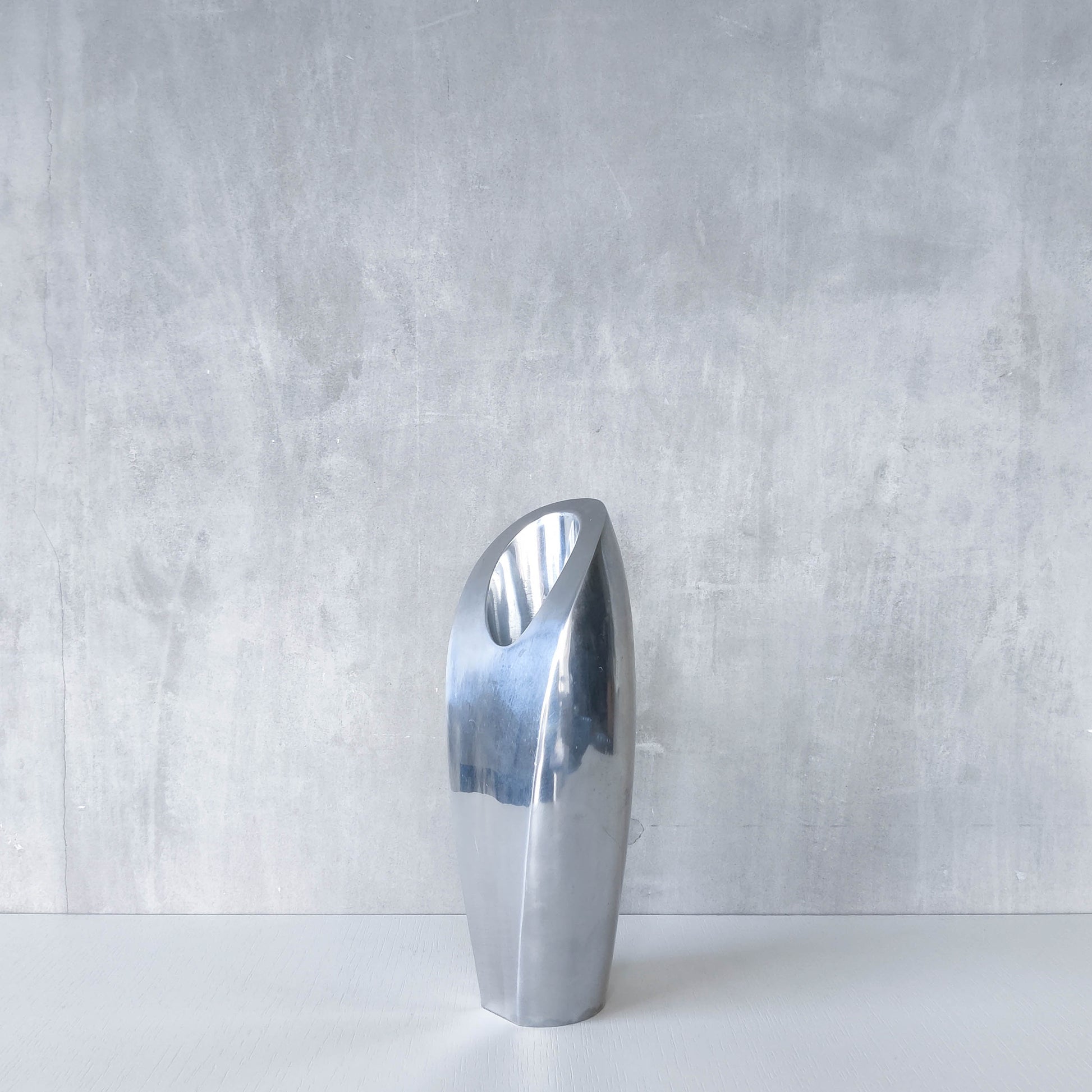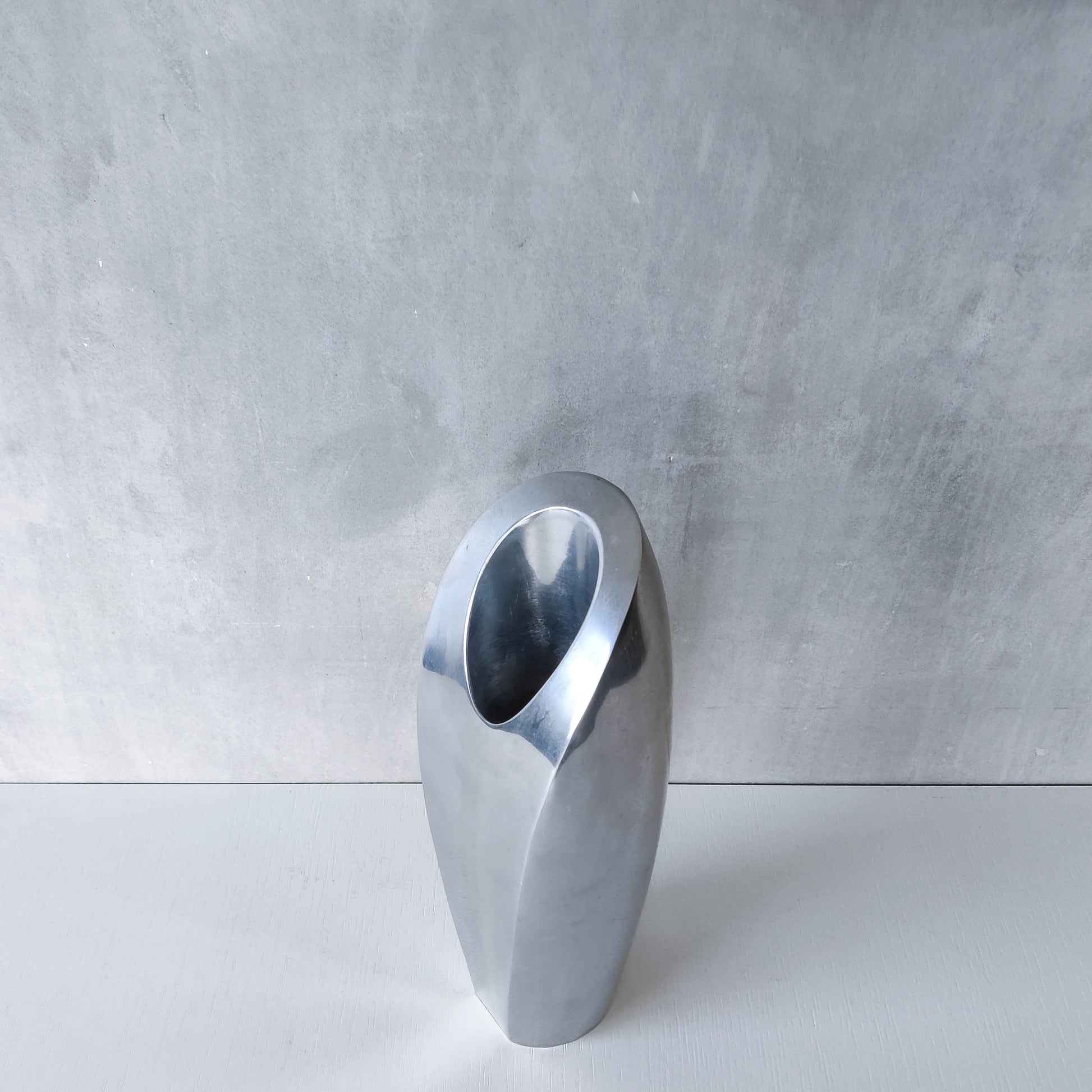 Vintage 1990s Nambe style large sculptural chunky cast aluminium vase