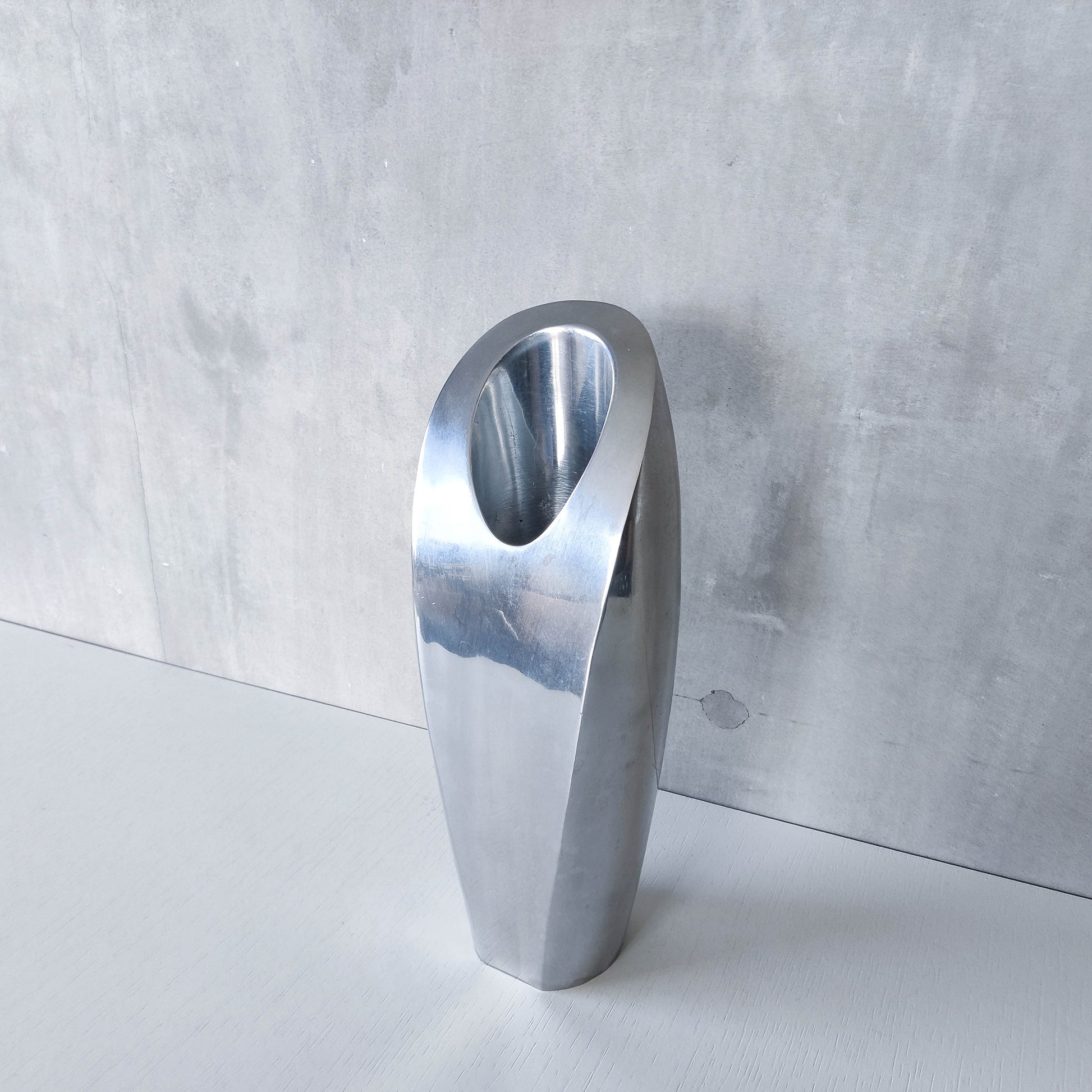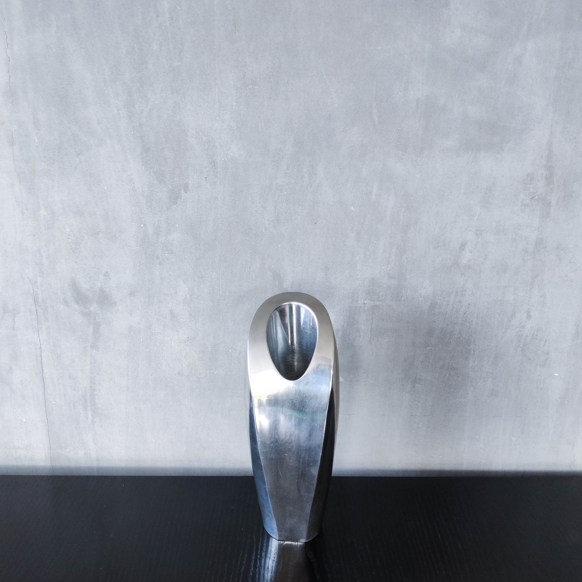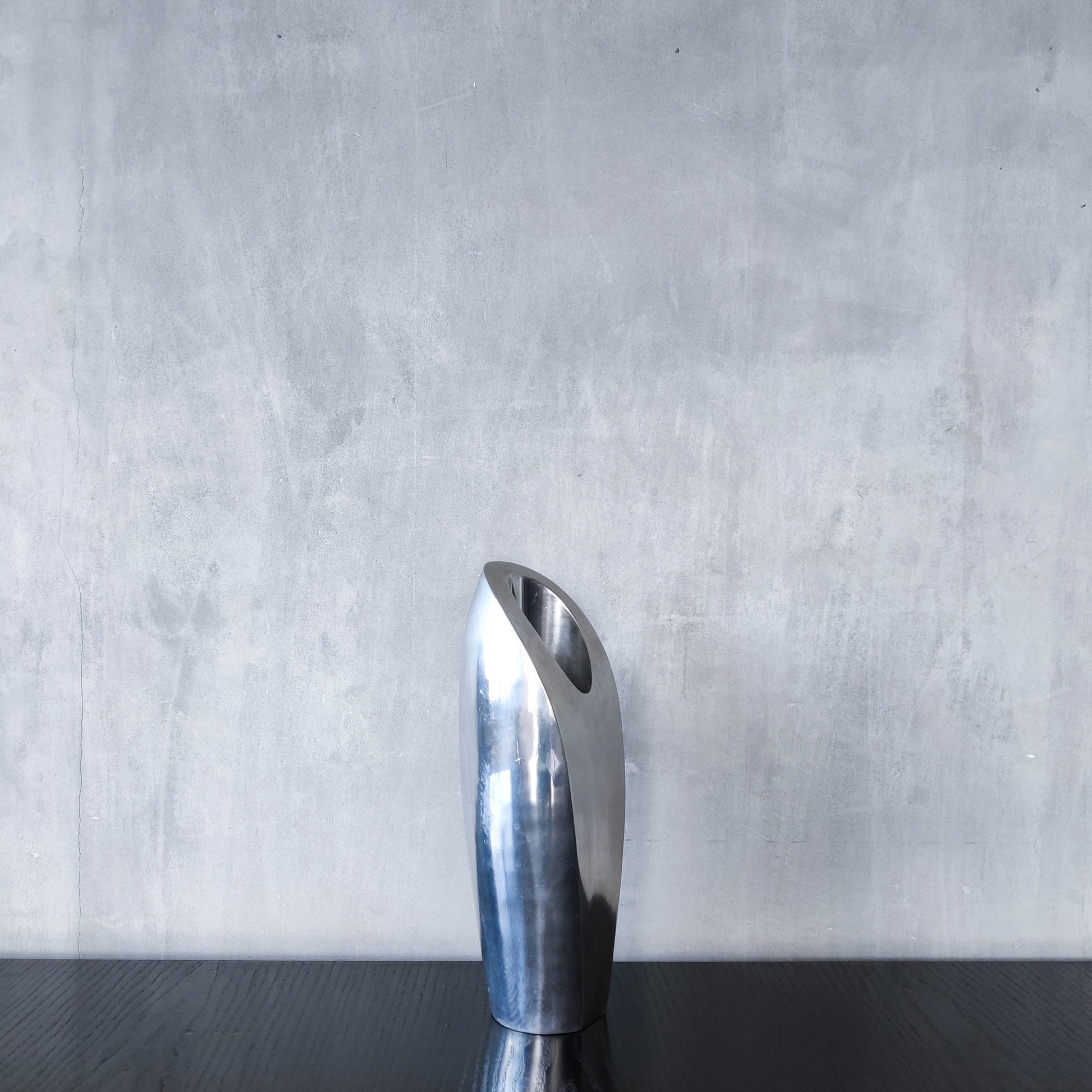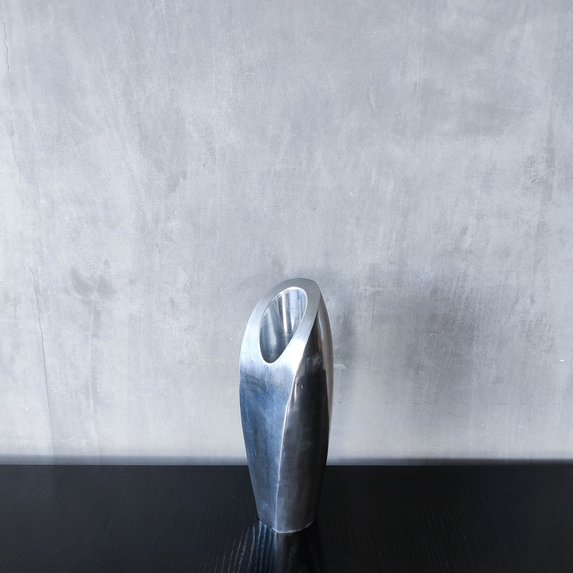 Vintage 1990s Nambe style large sculptural chunky cast aluminium vase