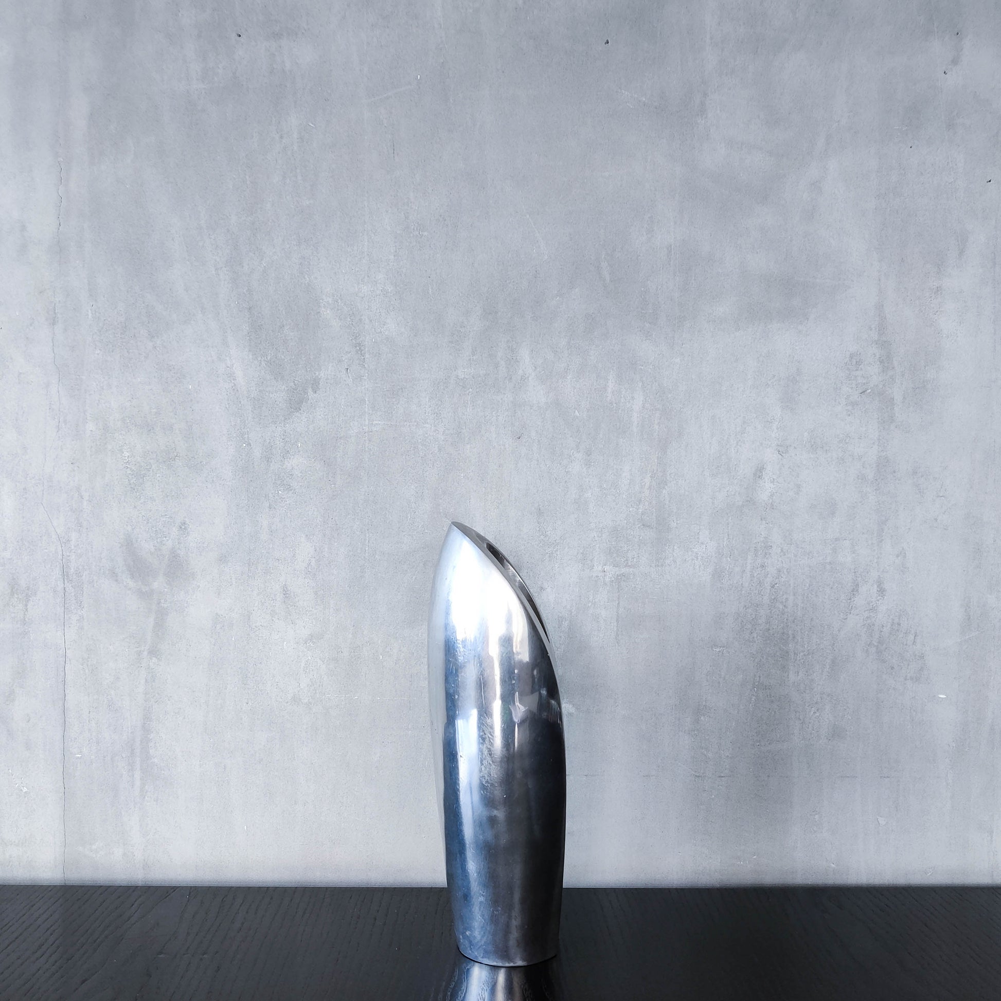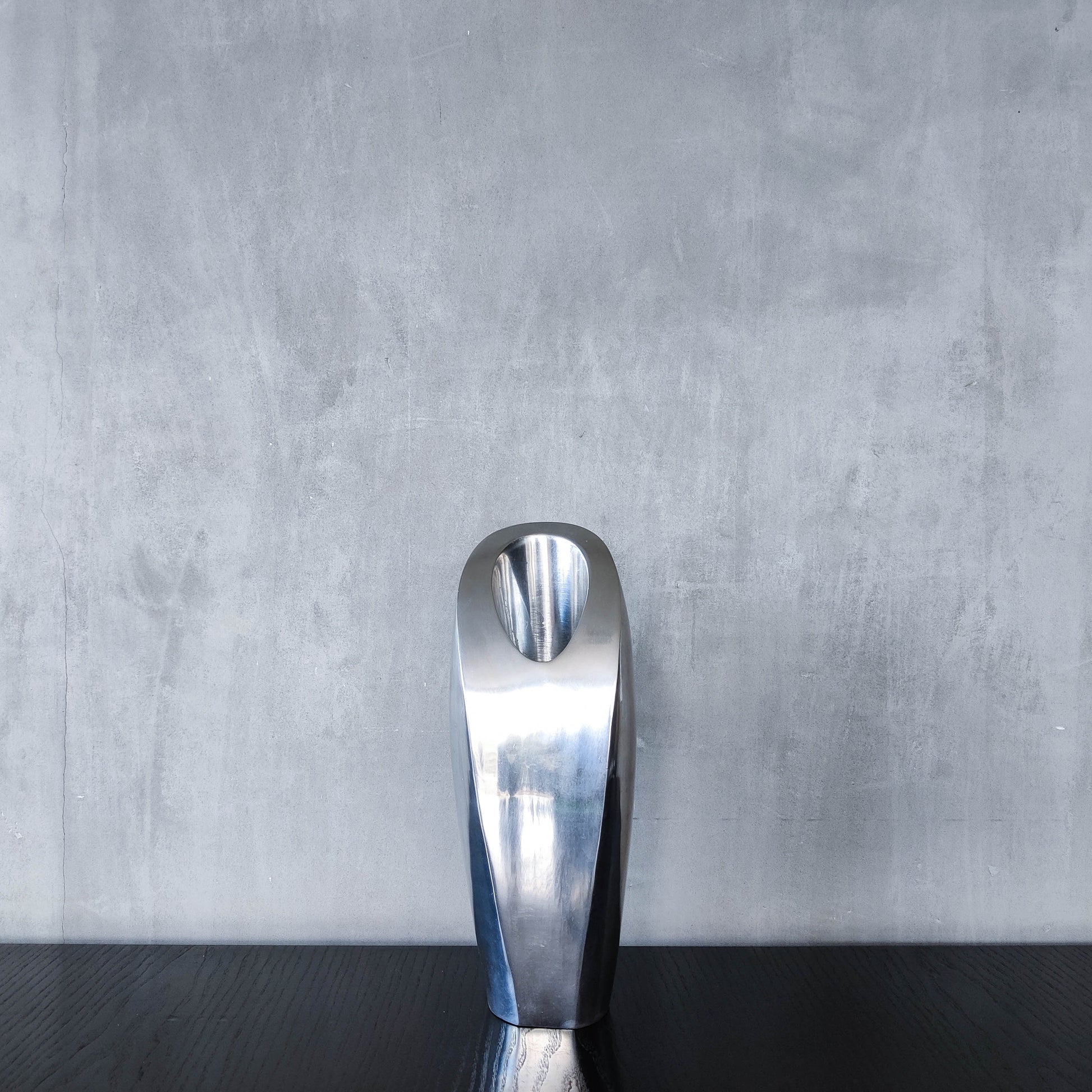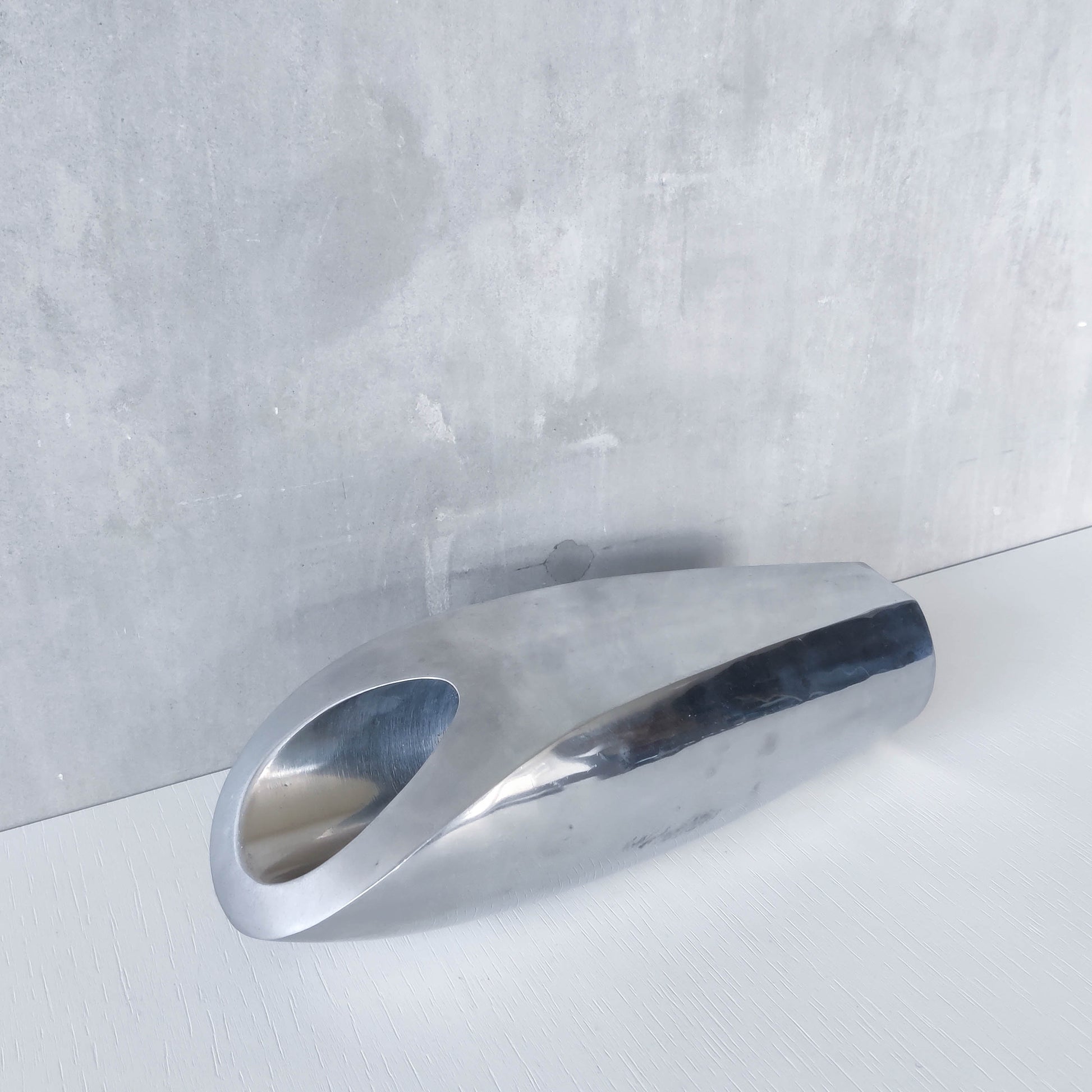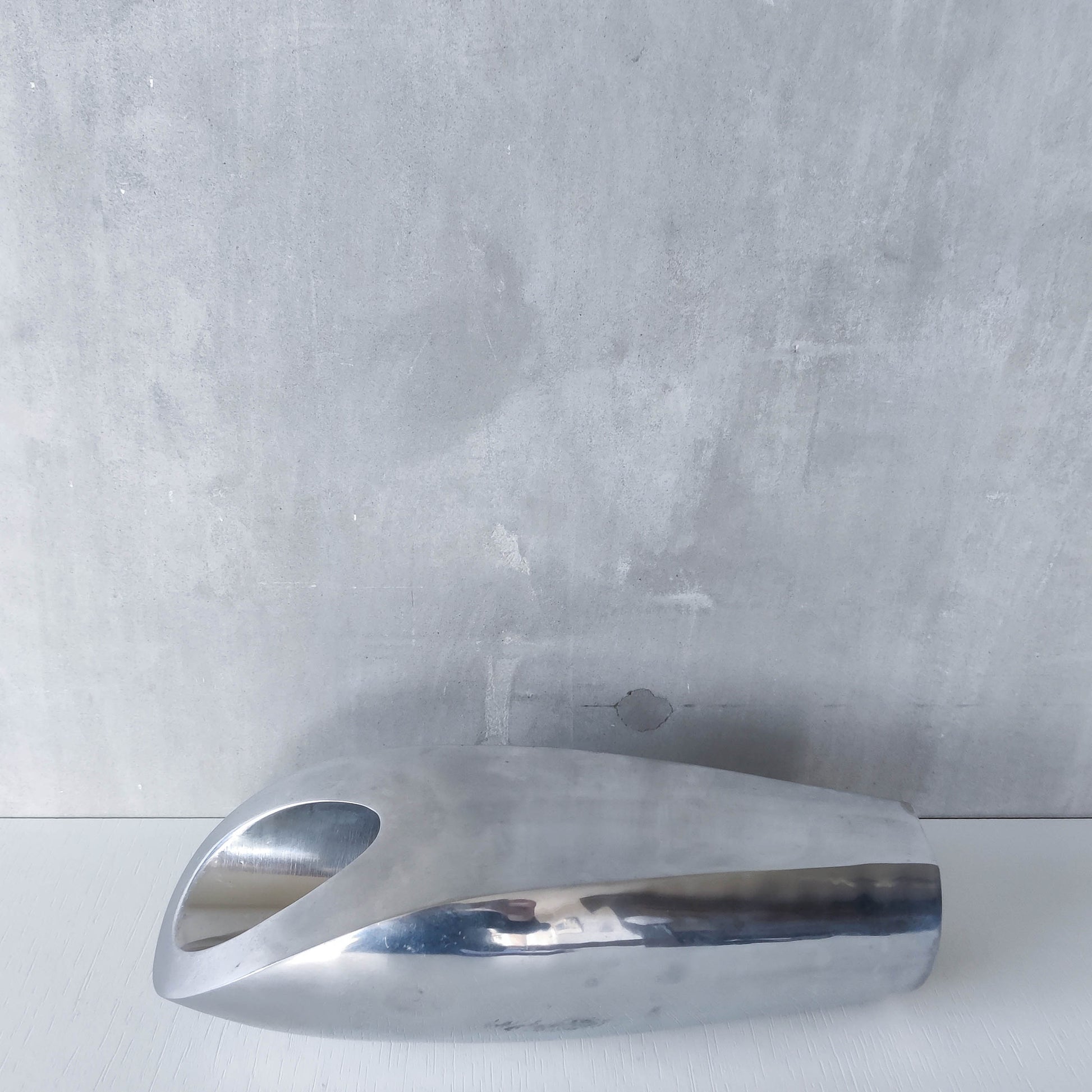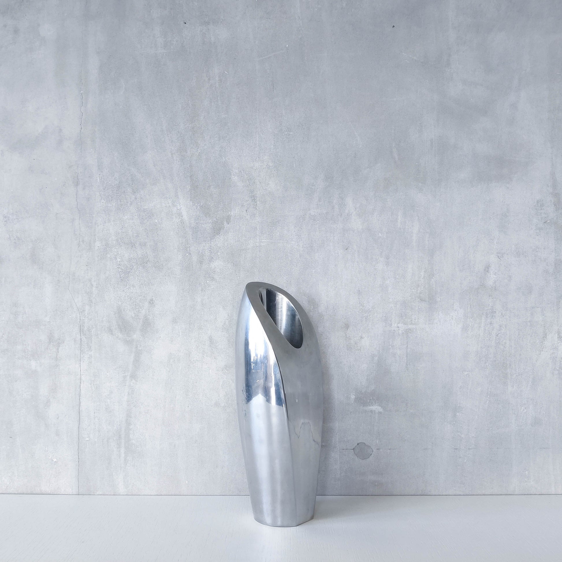 Vintage 1990s Nambe style large sculptural chunky cast aluminium vase