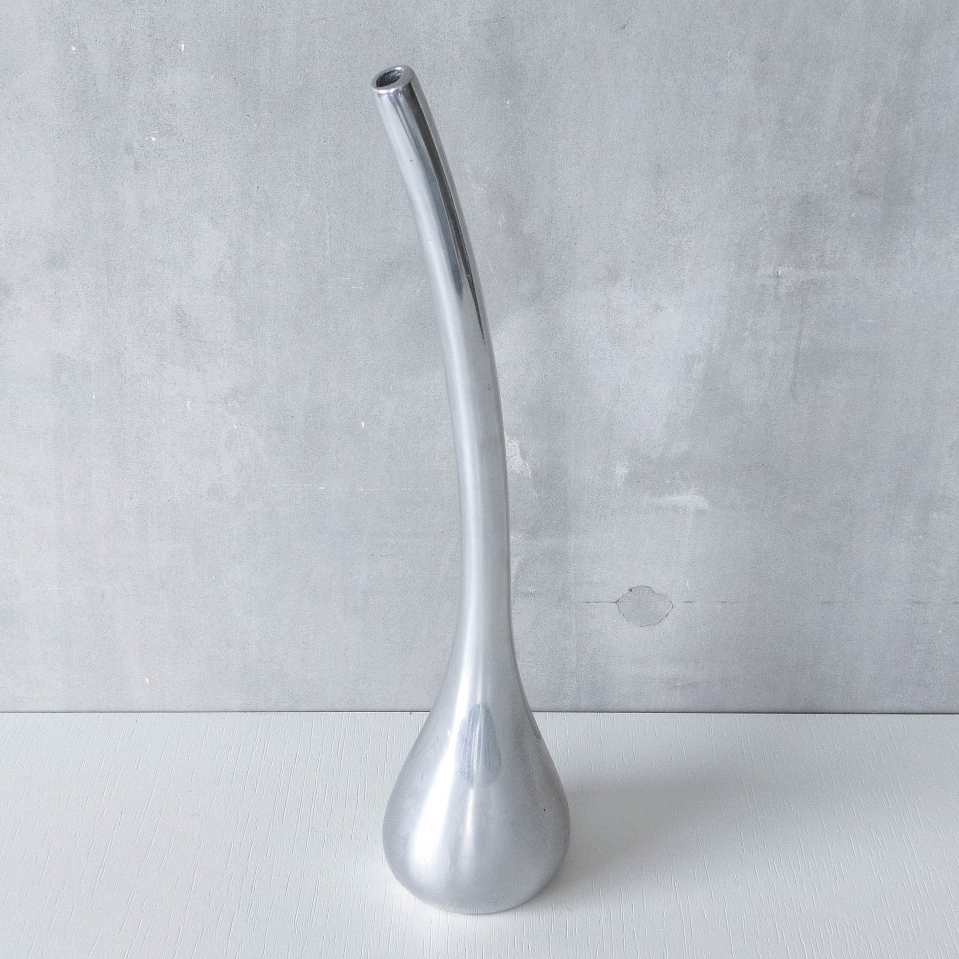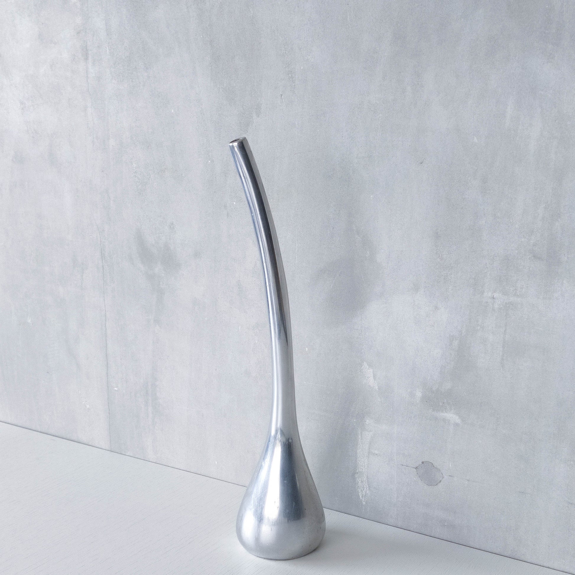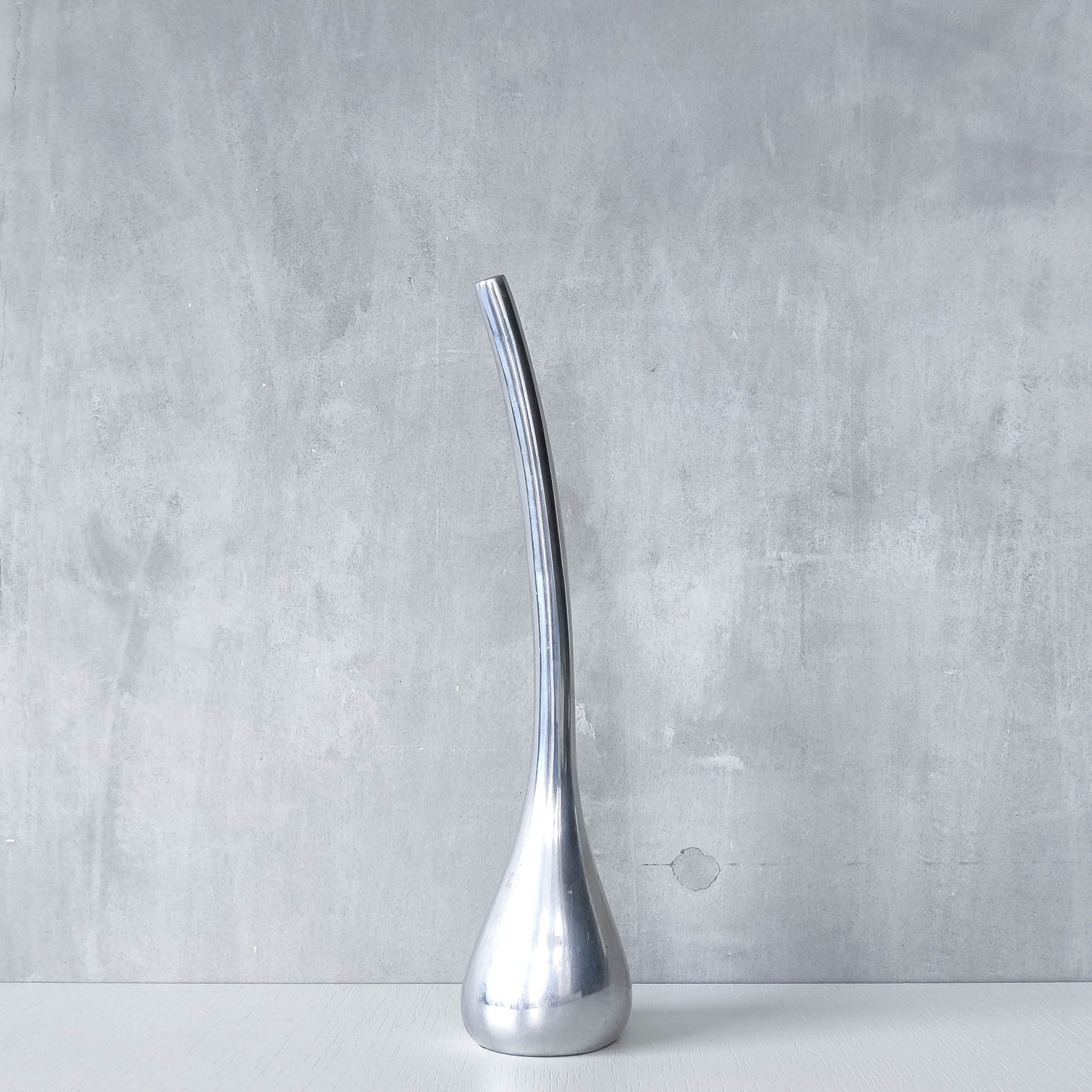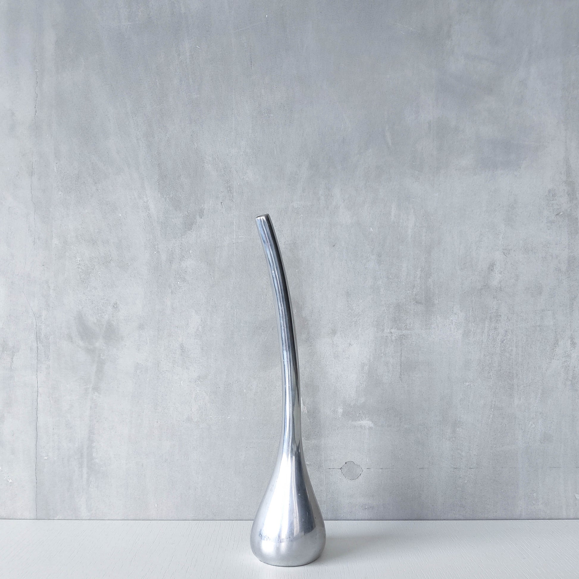 Vintage 90s sculptural sand cast aluminium sculptural organic form tall vase