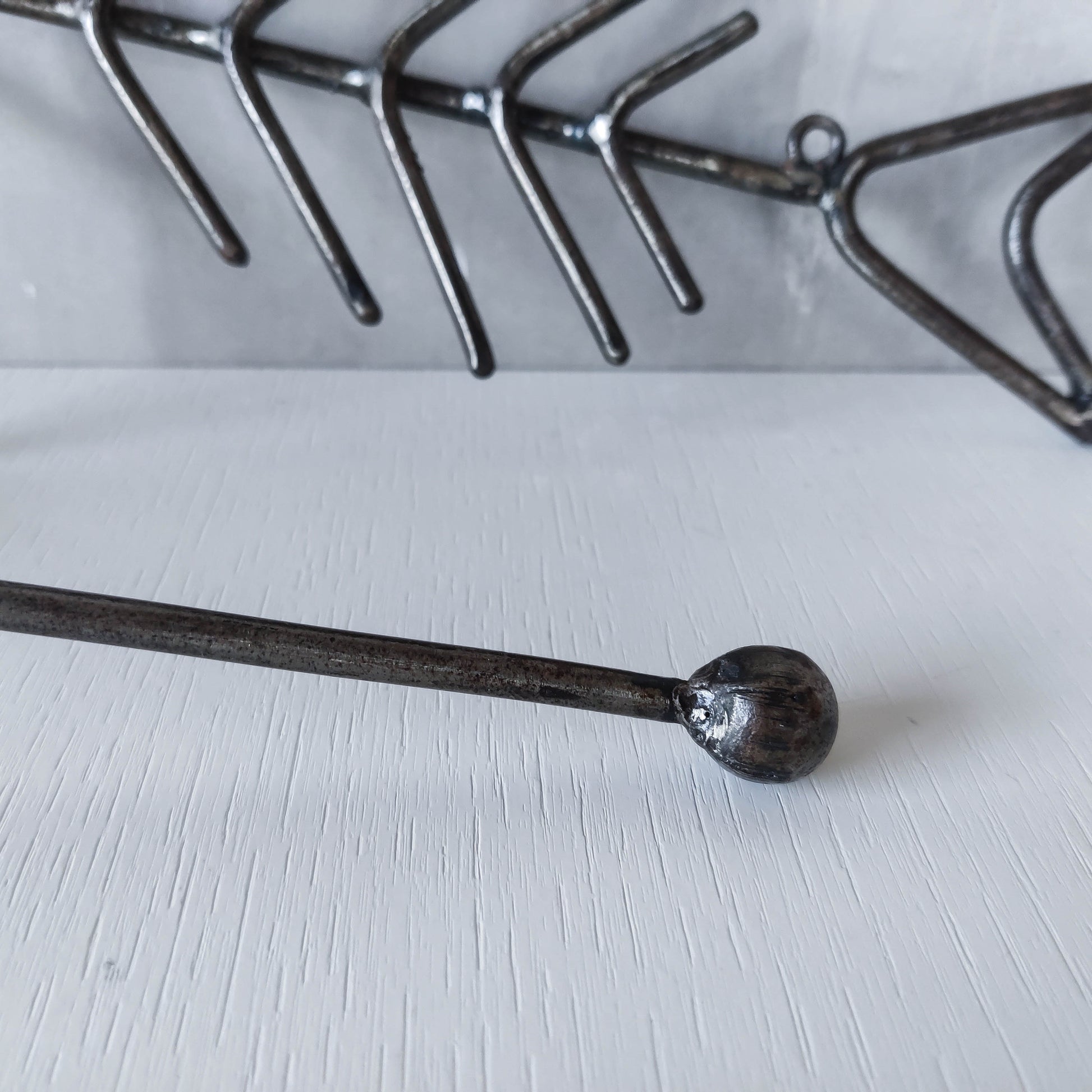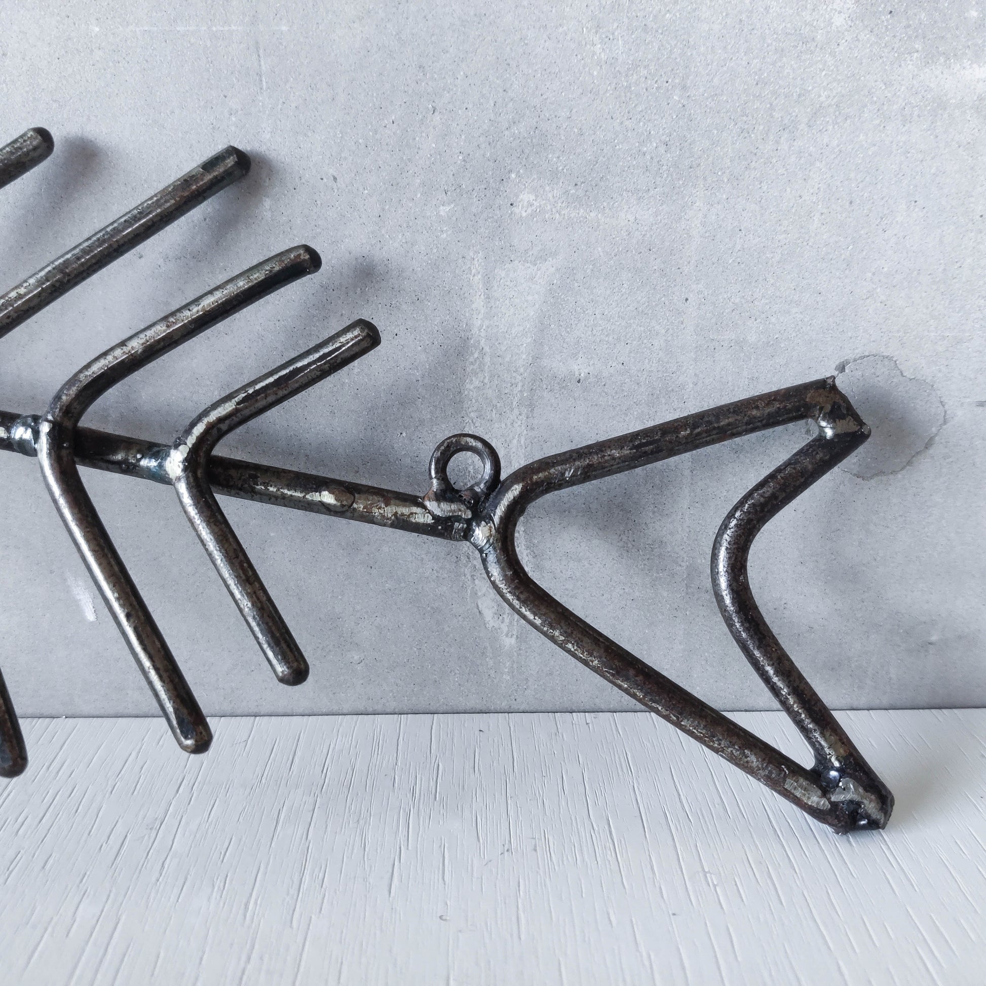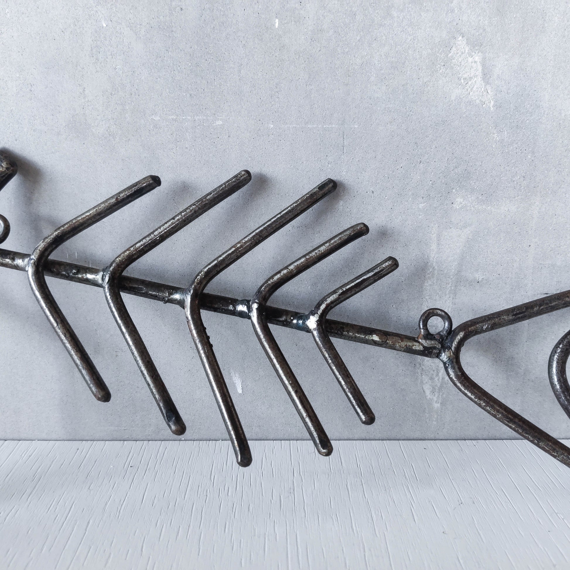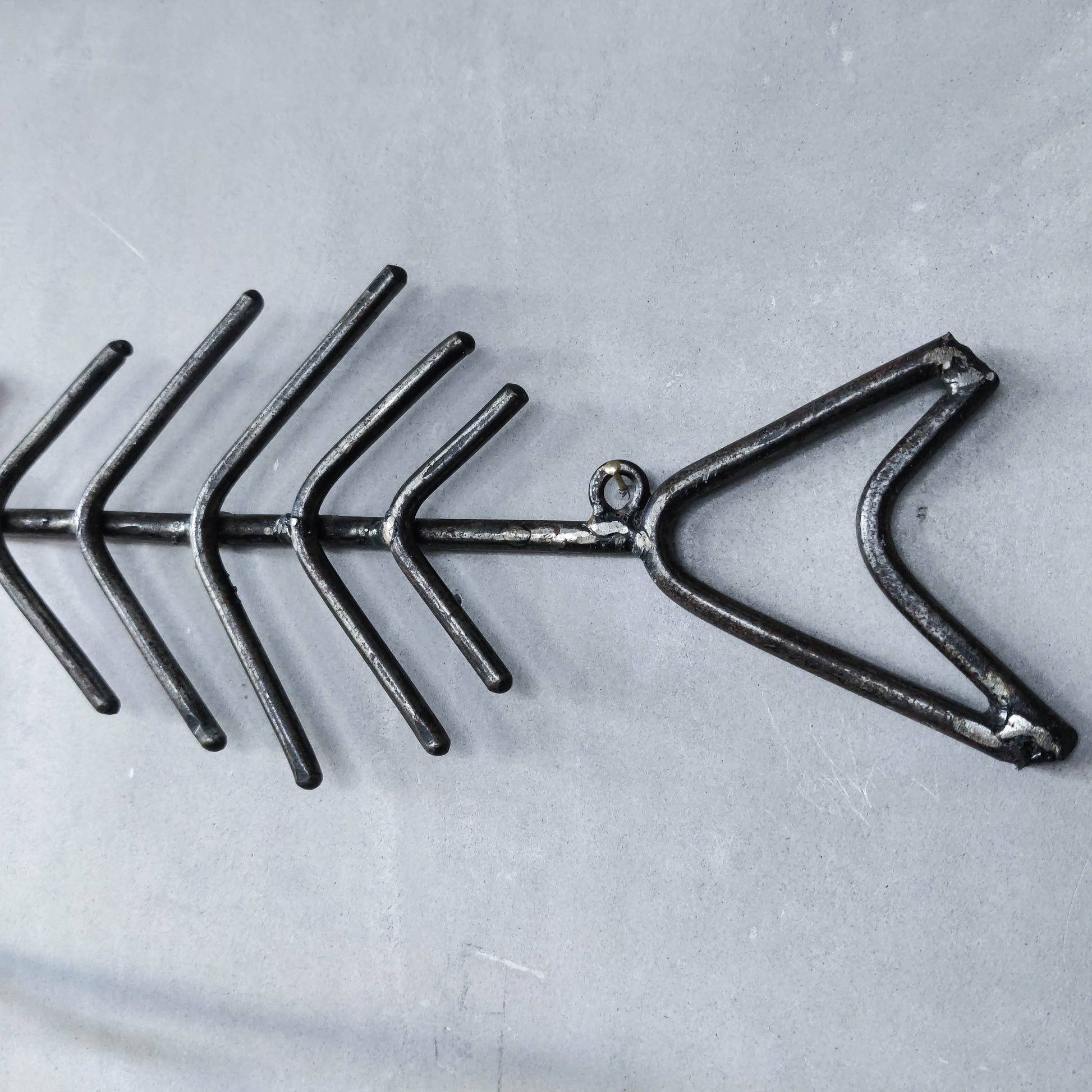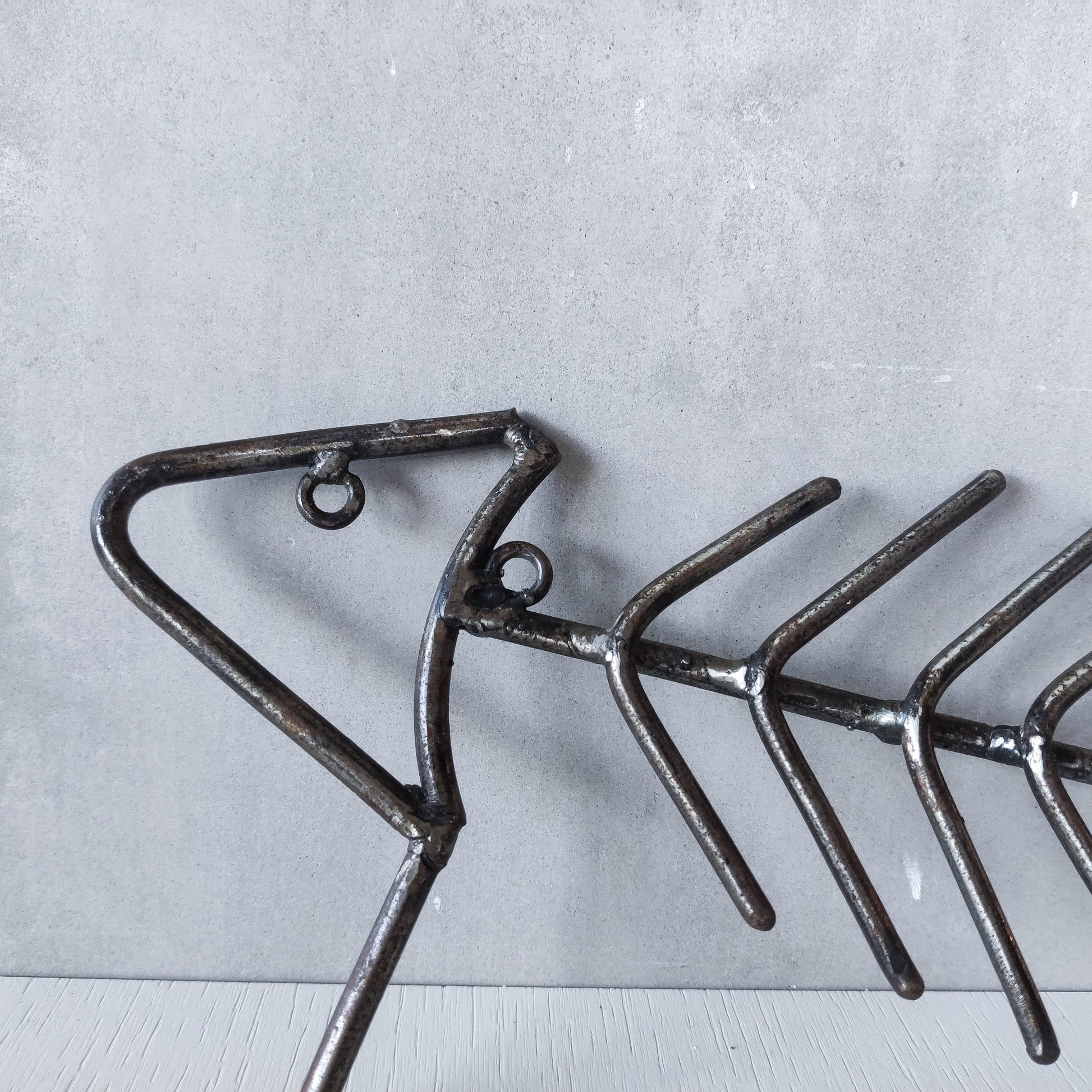 Vintage artisan made metalwork welded steel fish skeleton toilet roll holder