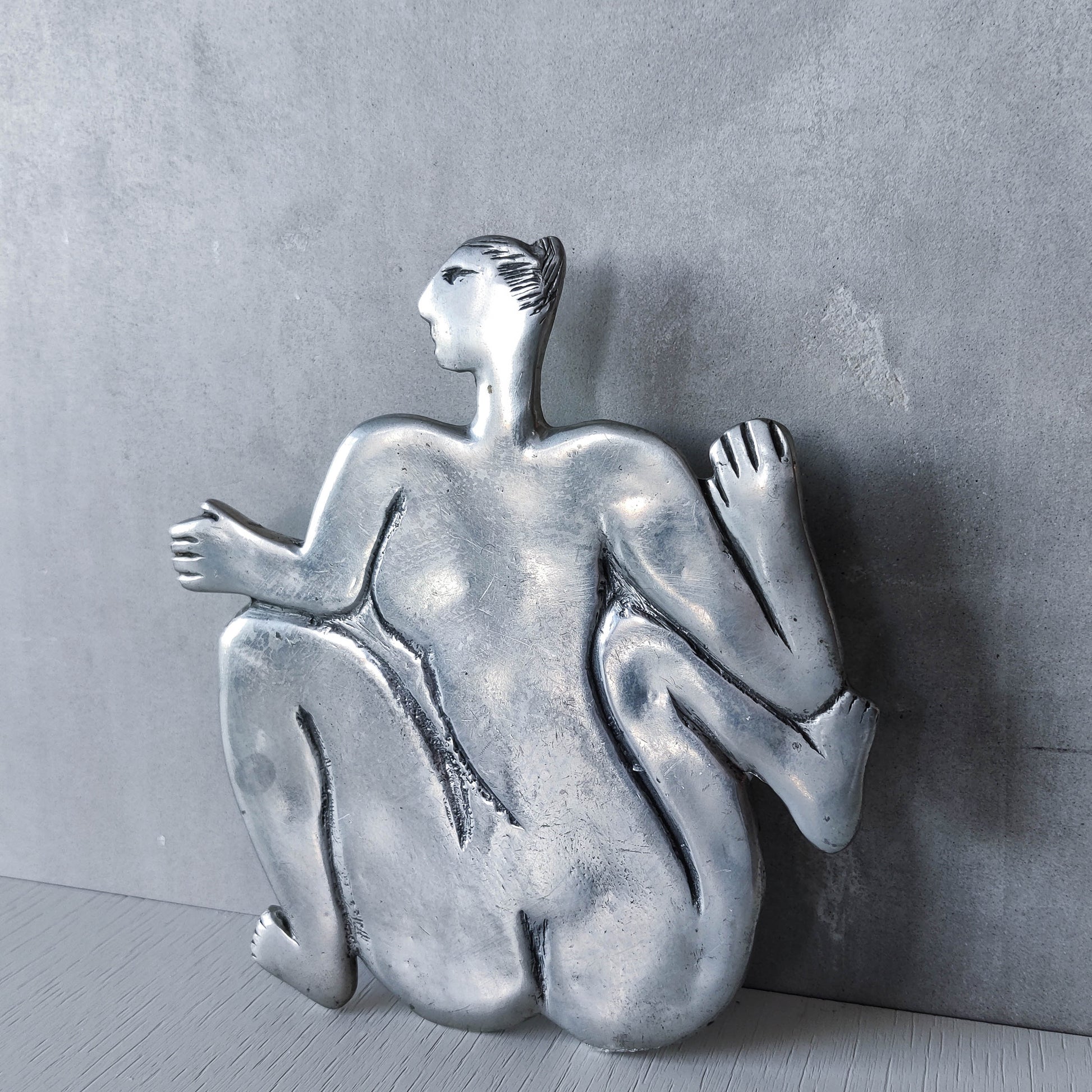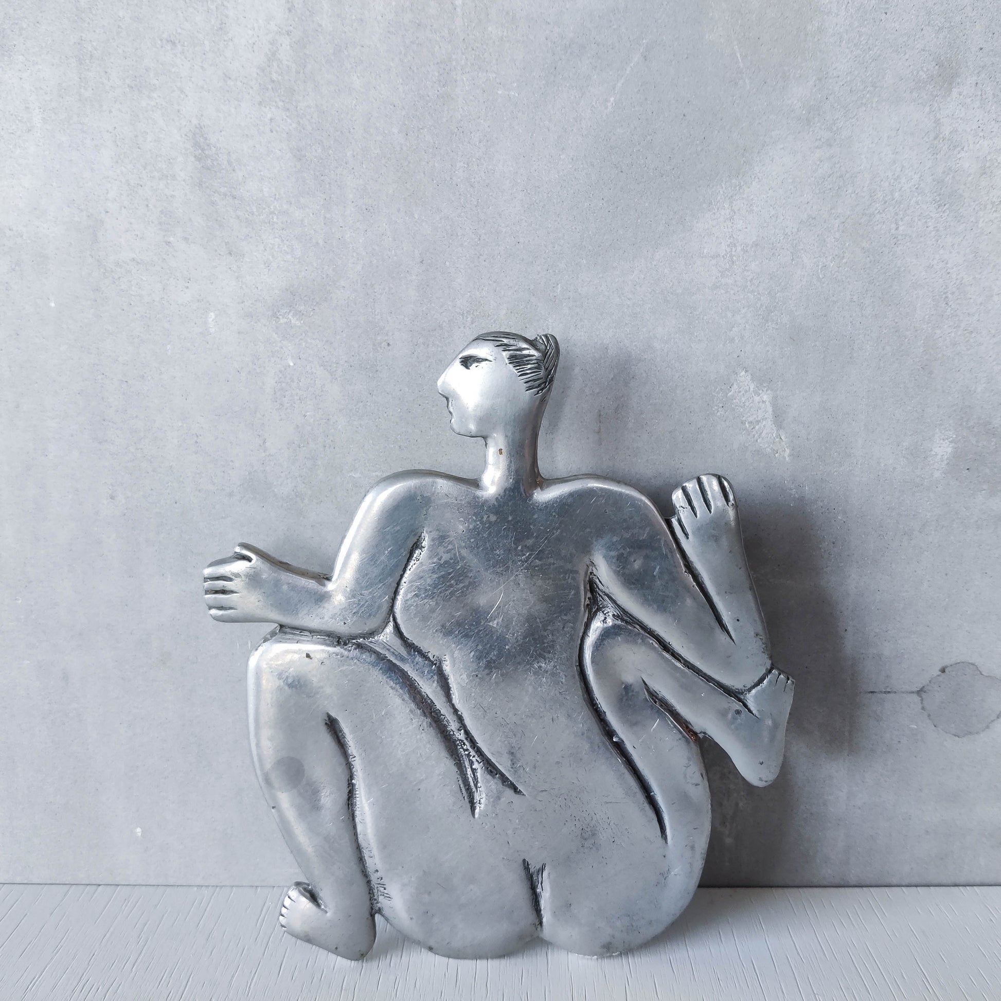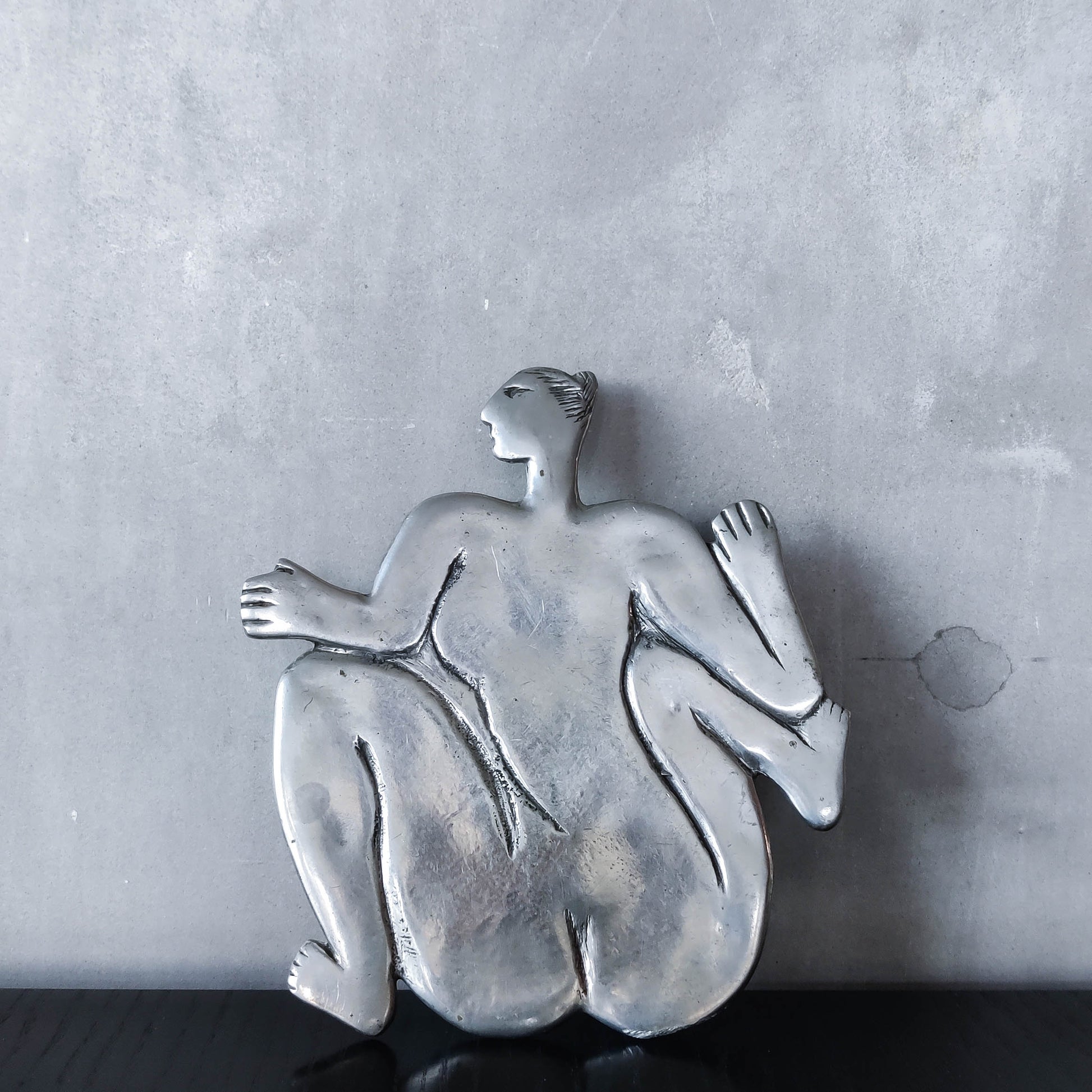 Vintage Carrol Boyes cast pewter whimsical figure nude trivet stand