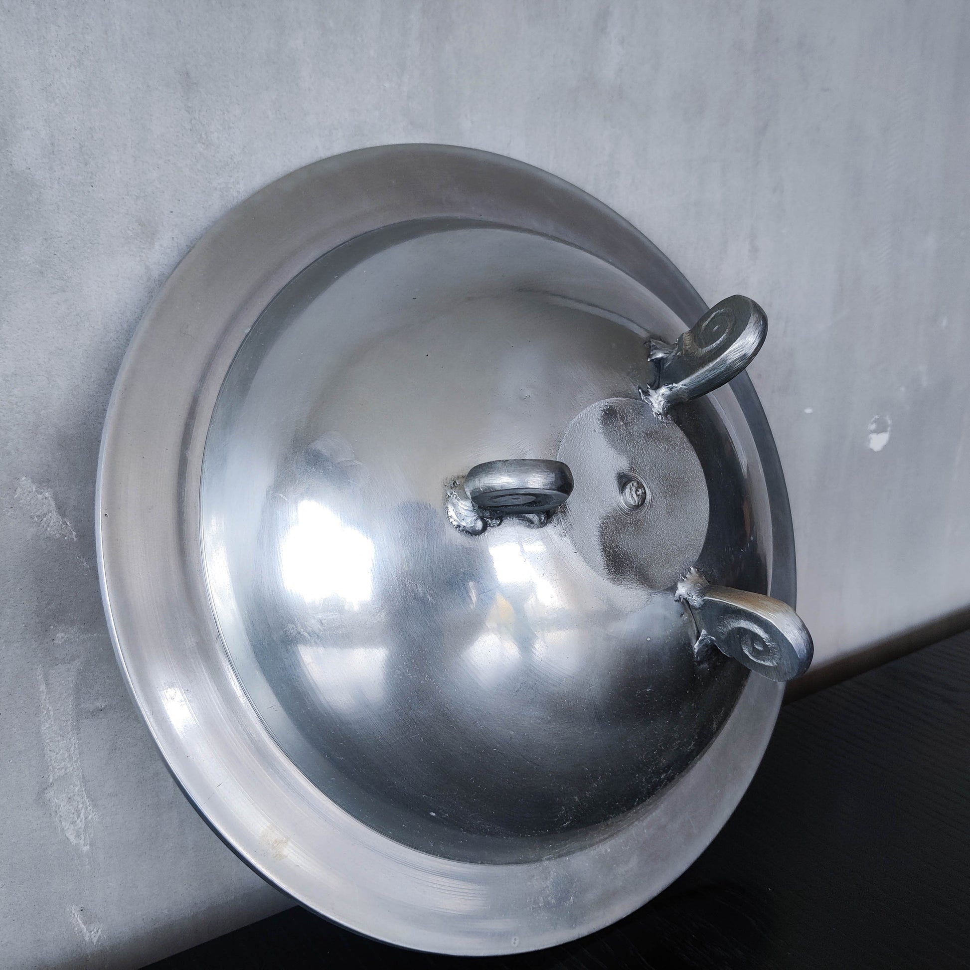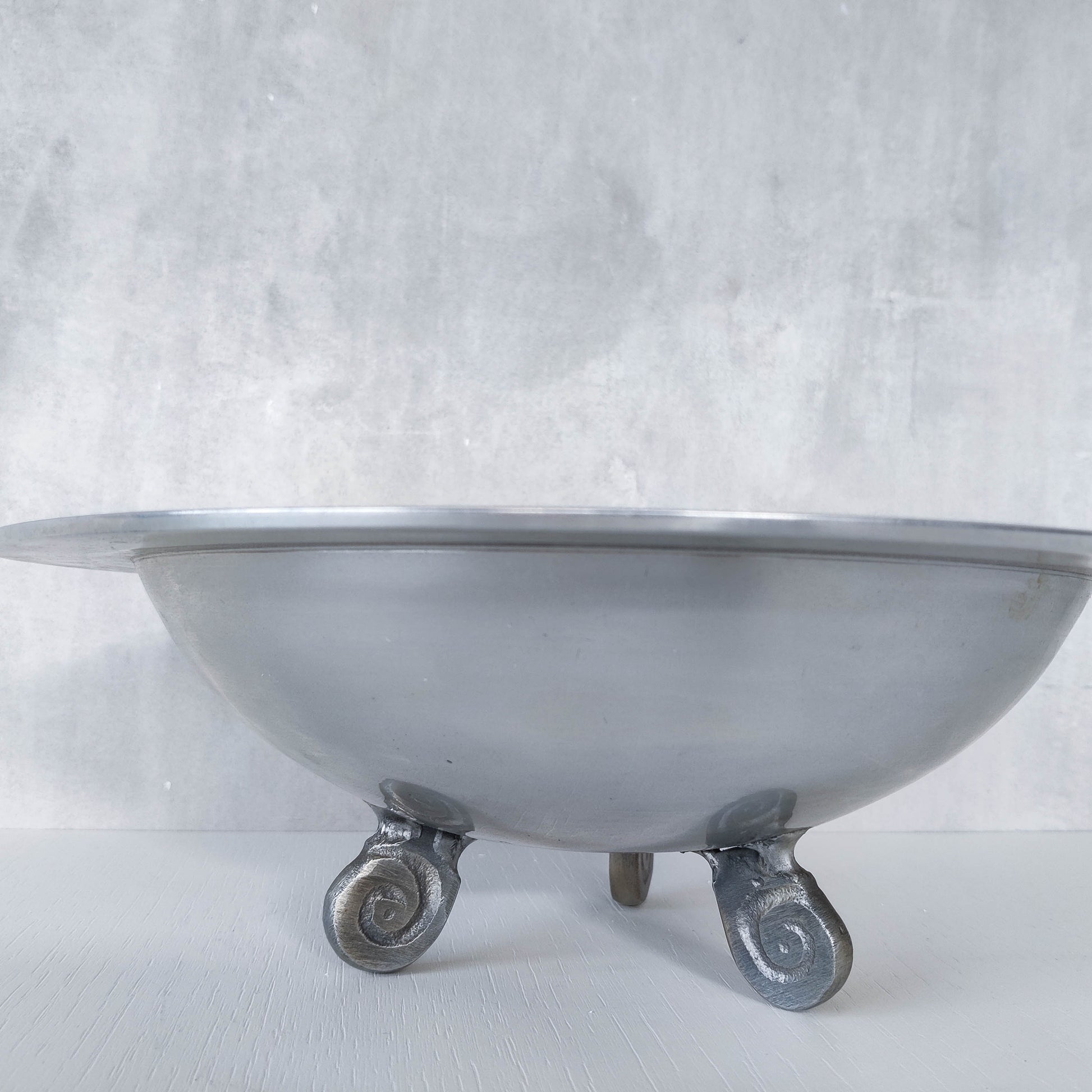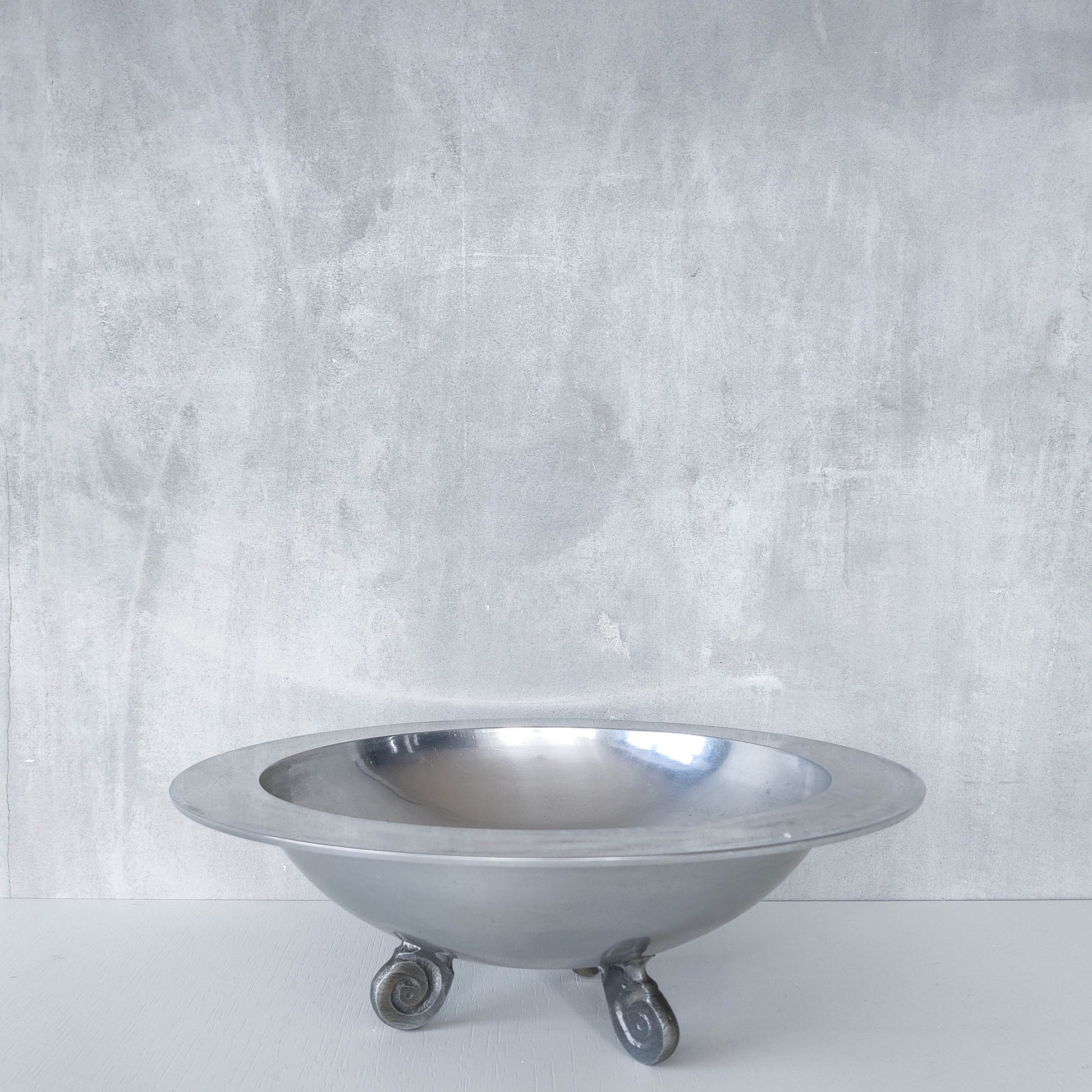 Vintage cast aluminium silver fruit bowl centerpiece with spiral feet footed