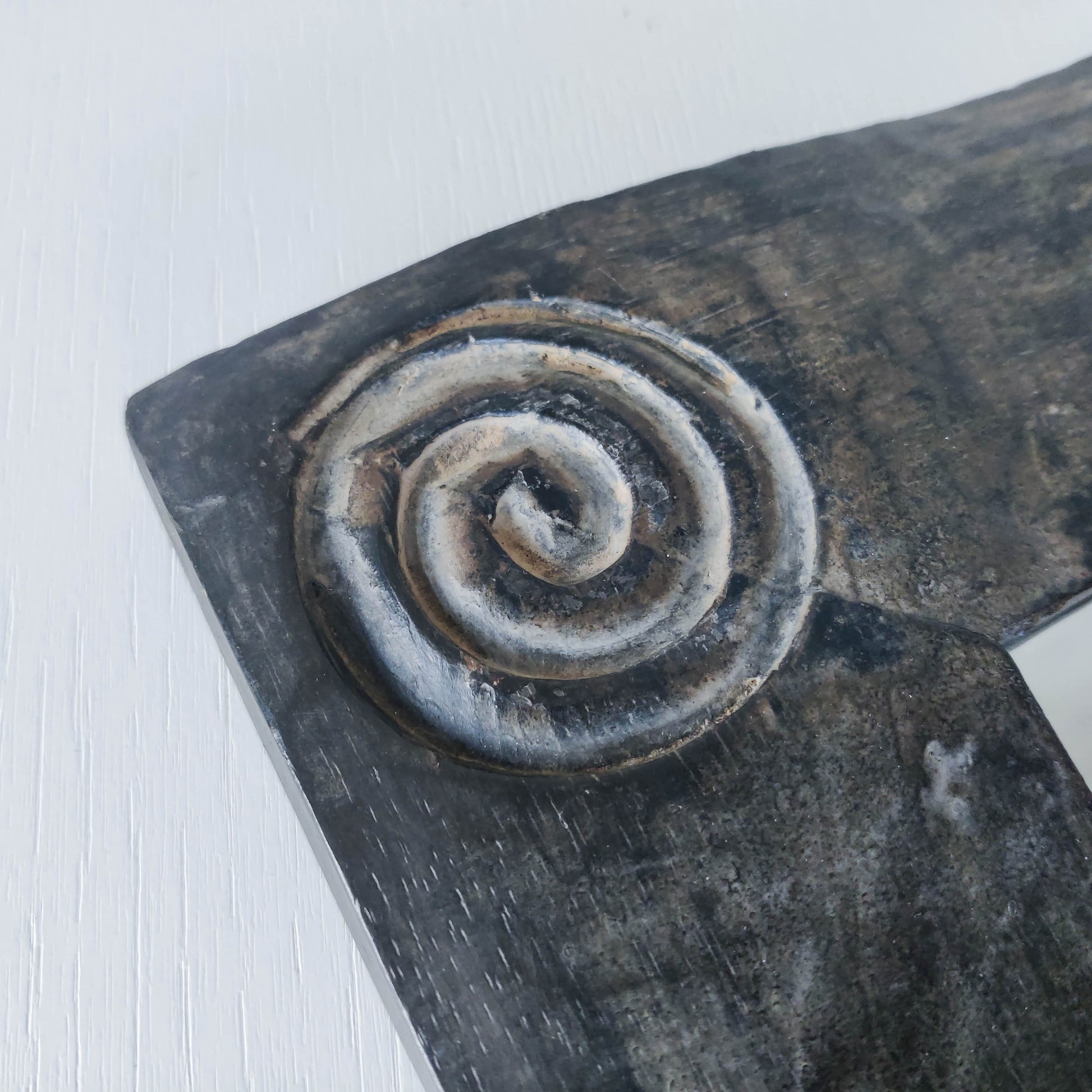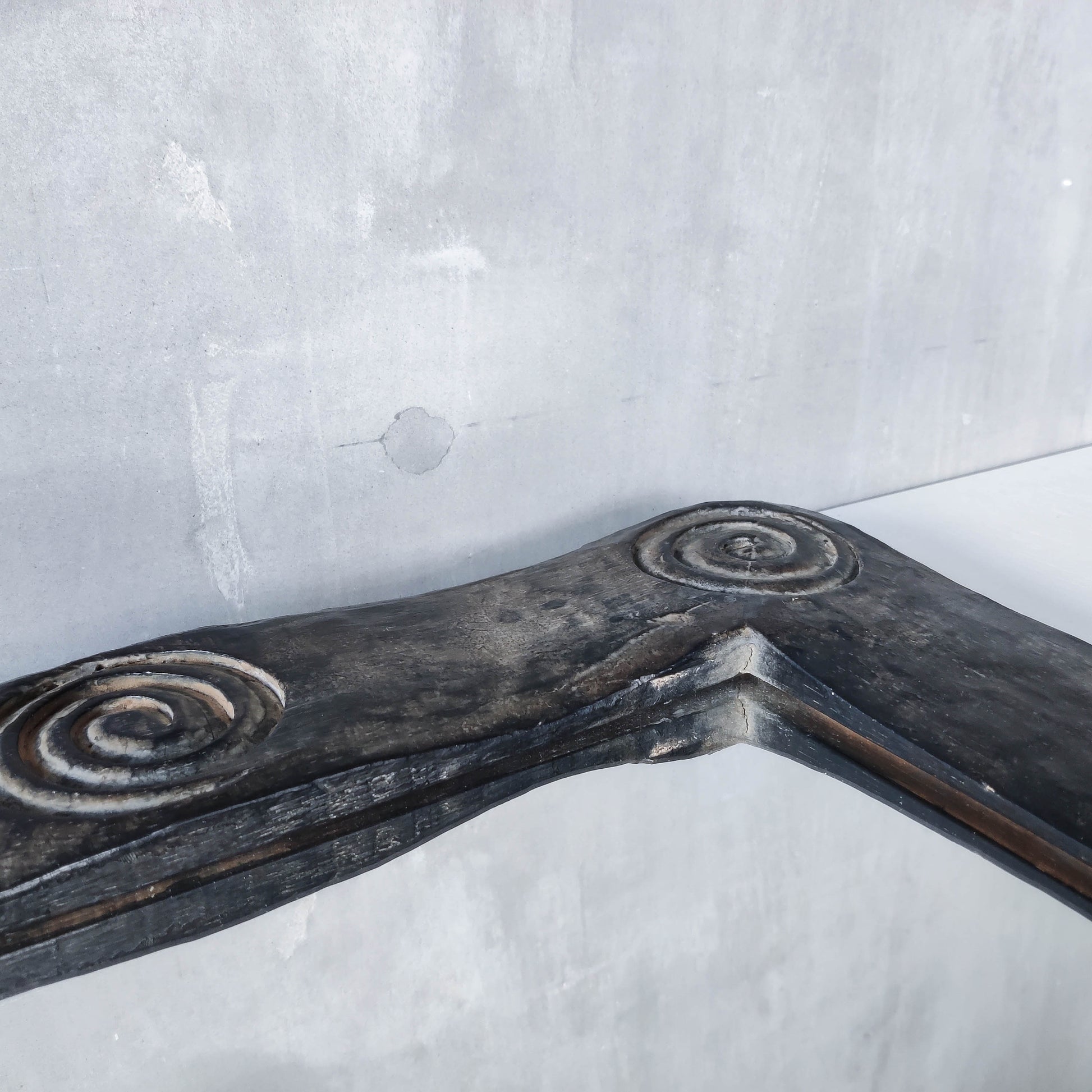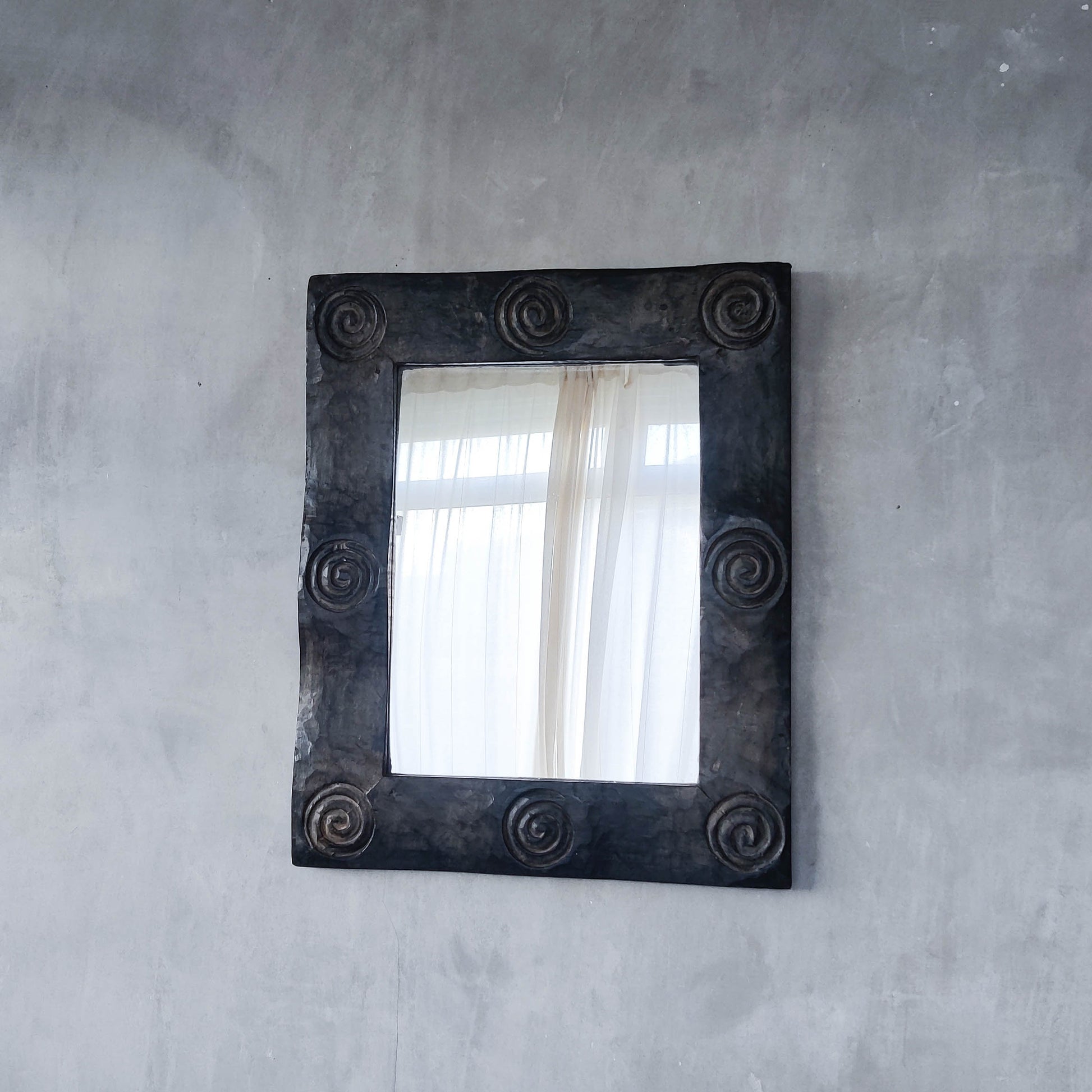 Vintage chunky solid hand carved hardwood wood spiral swirl sculptural mirror