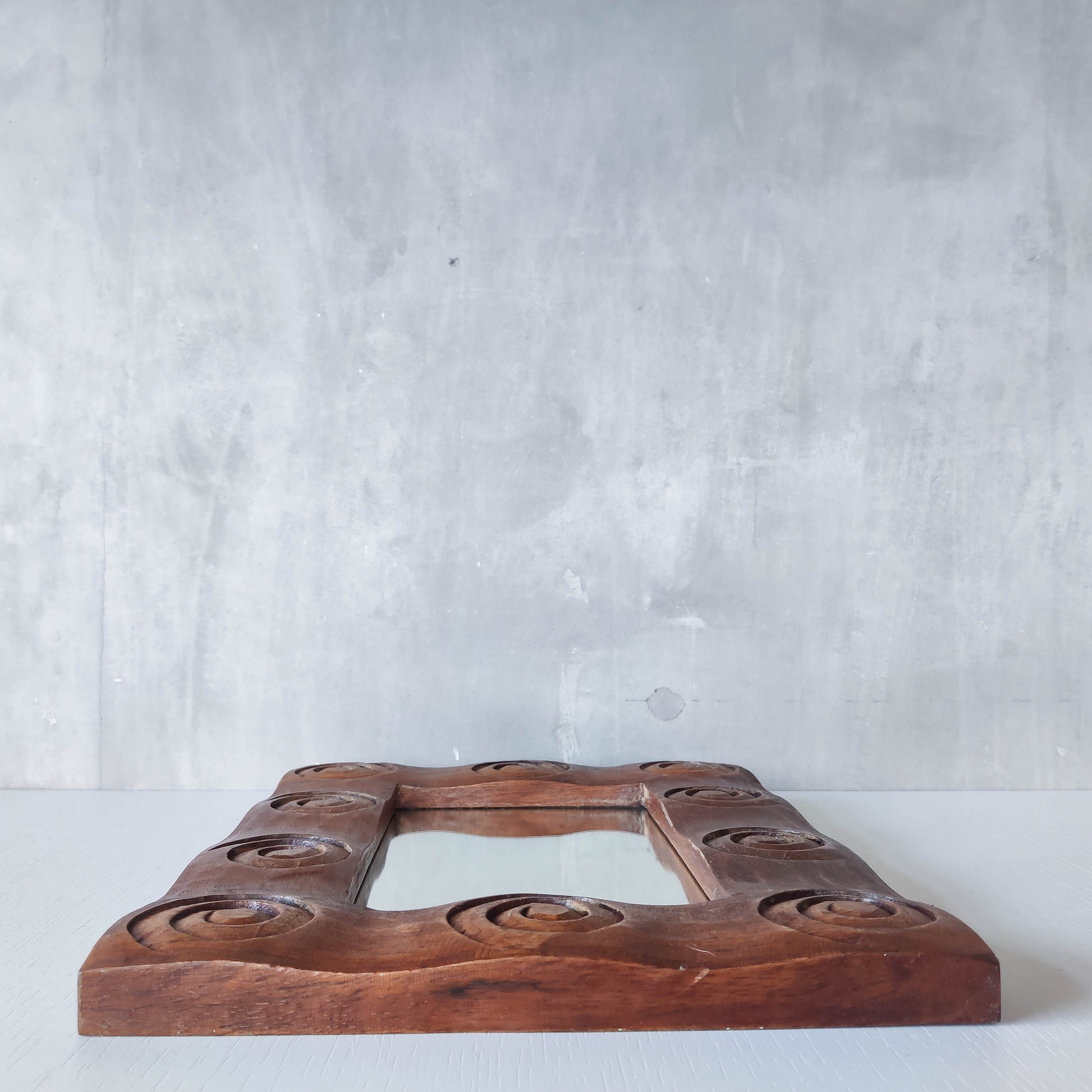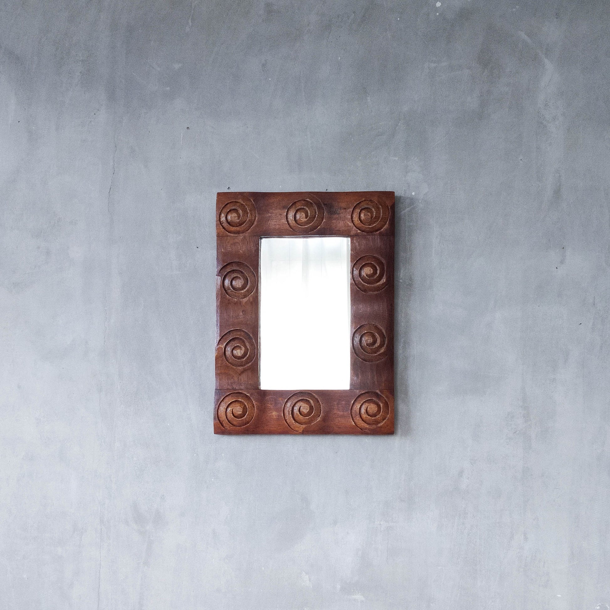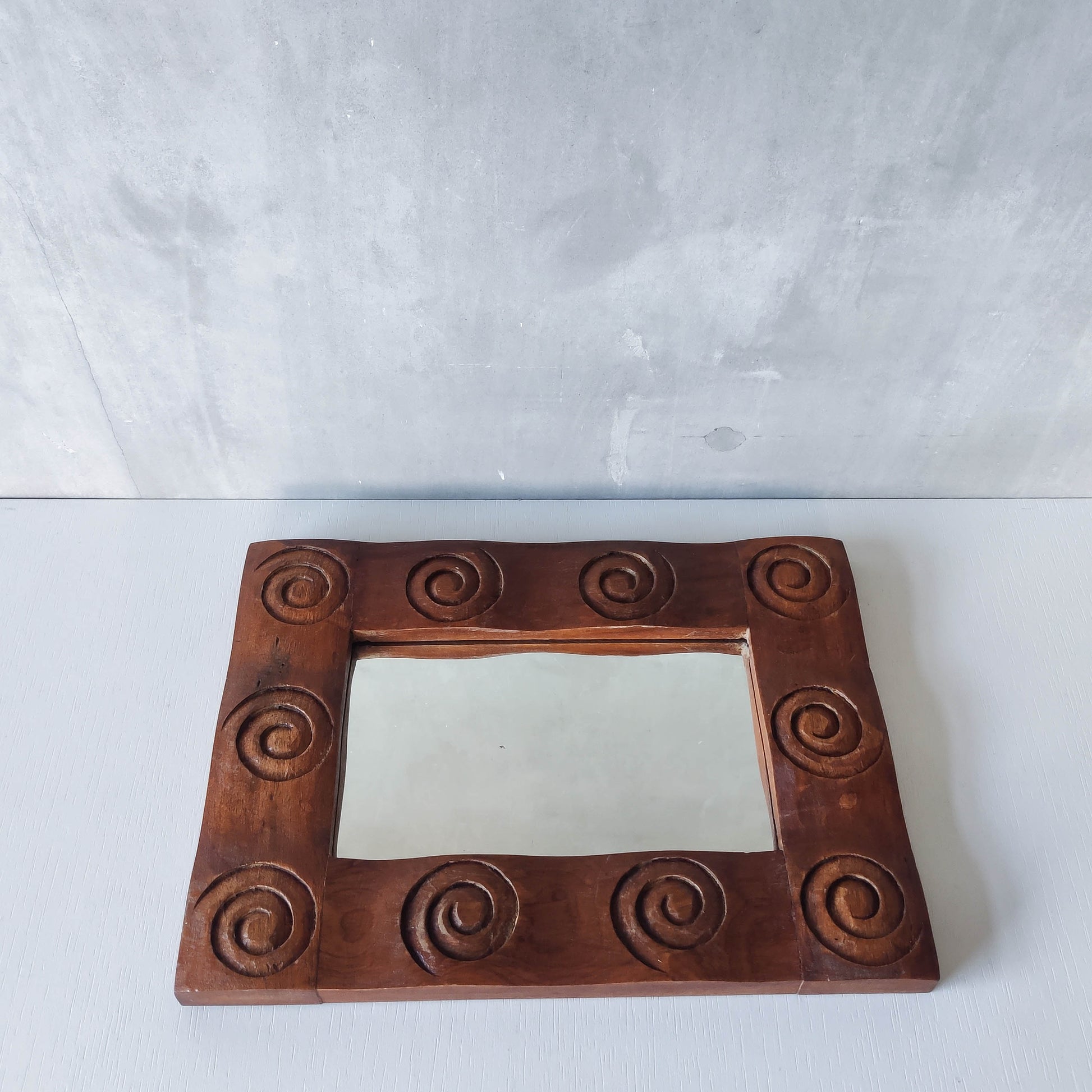Vintage chunky solid hand carved hardwood wood spiral swirl sculptural mirror