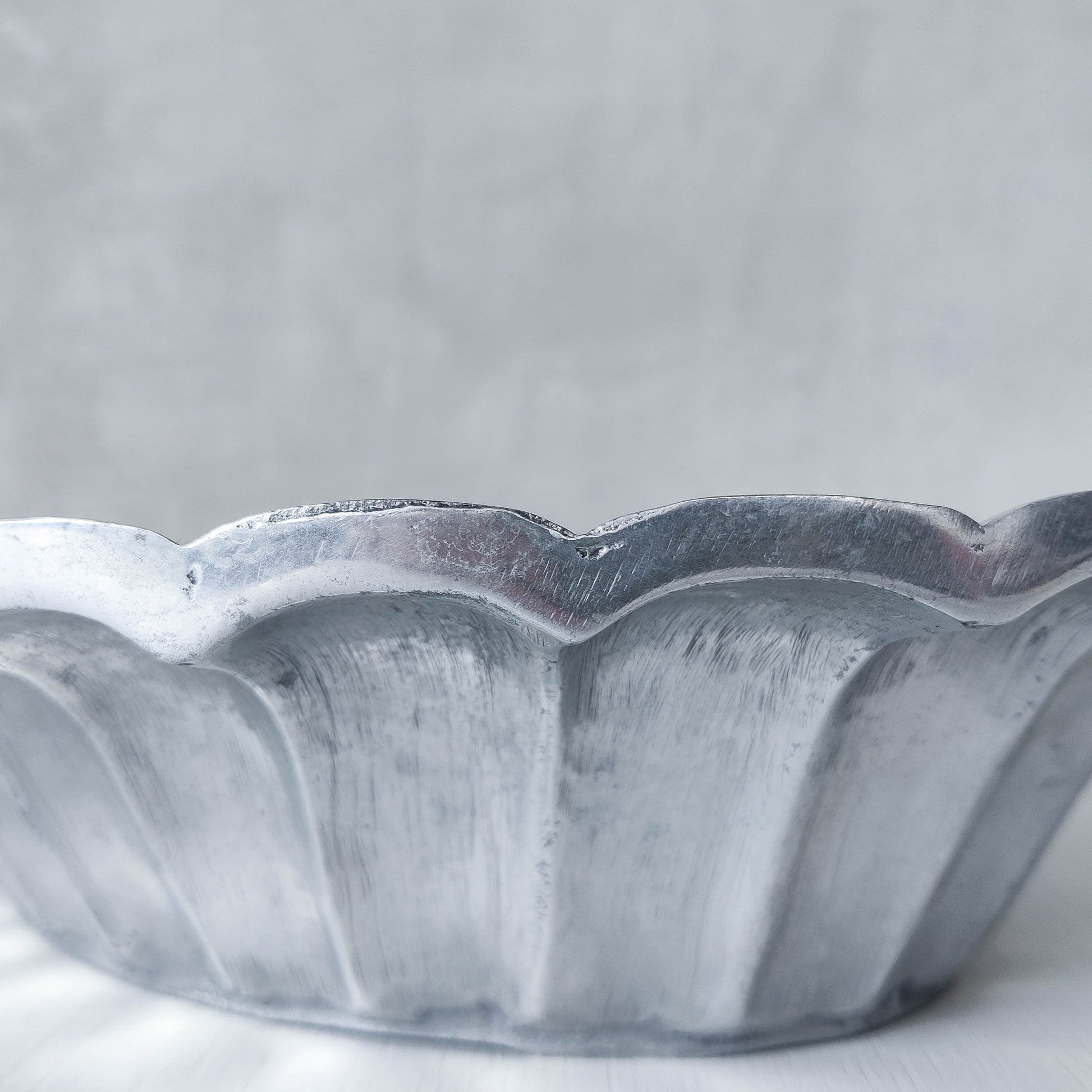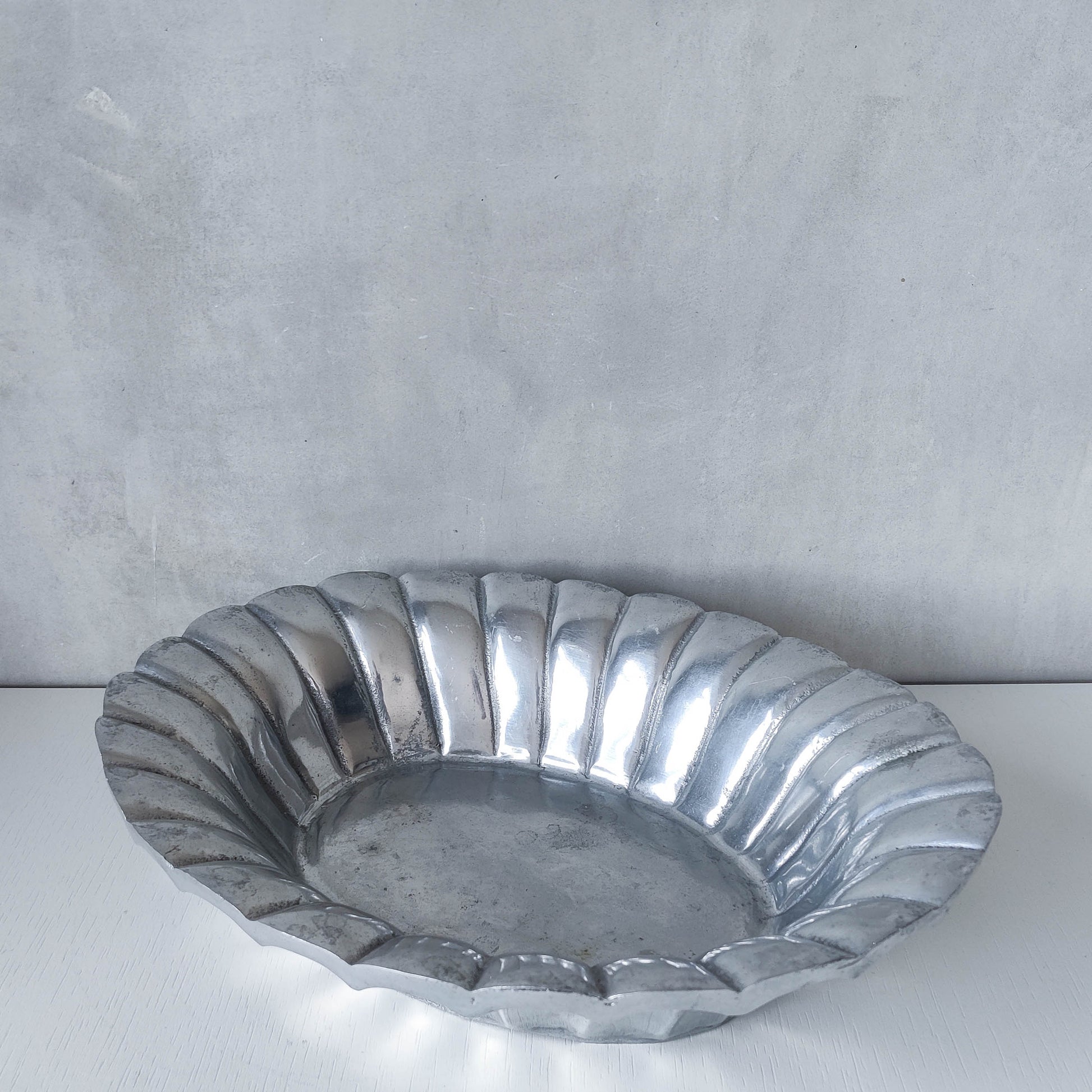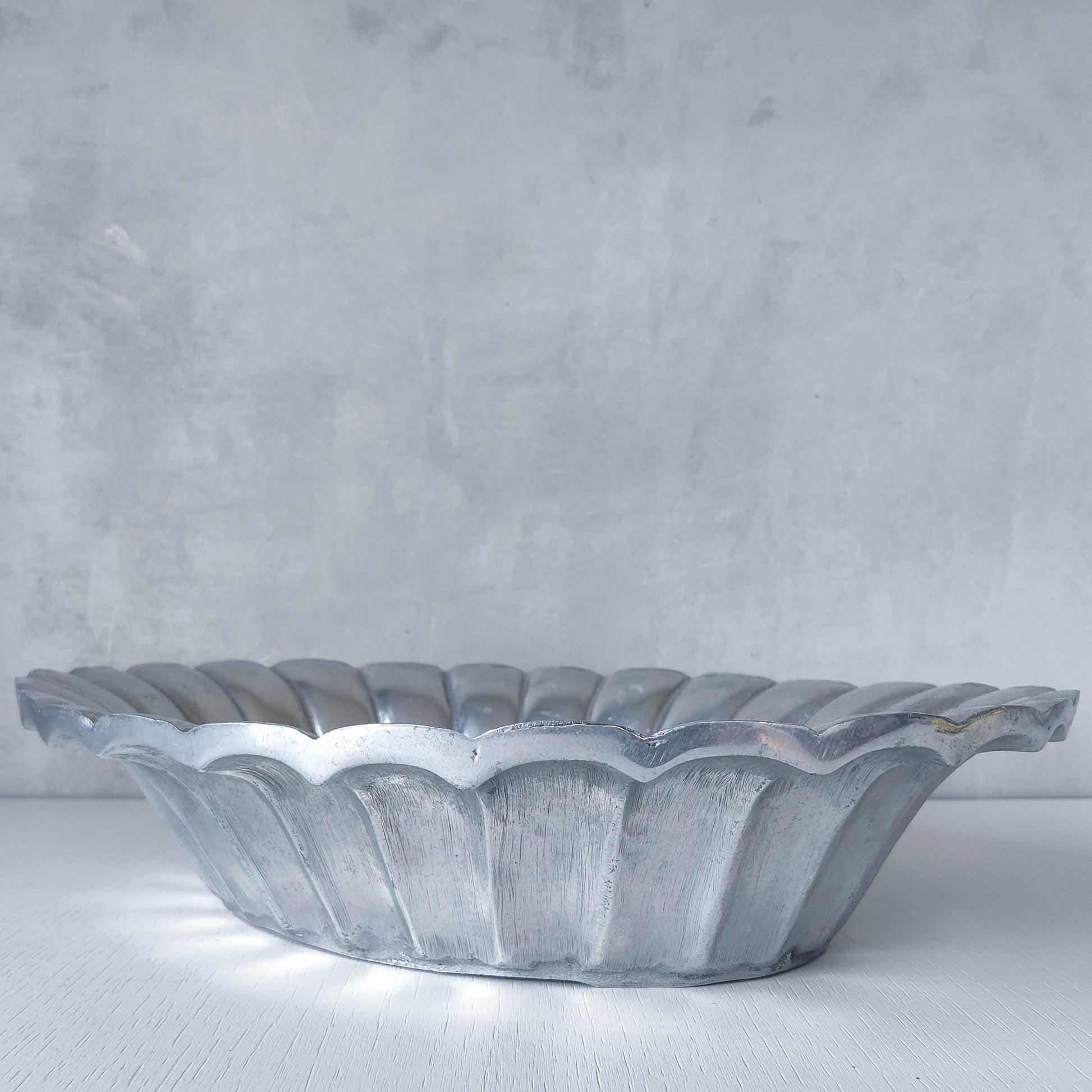 Vintage hand cast aluminium sculptural serving fruit bowl centrepiece scalloped