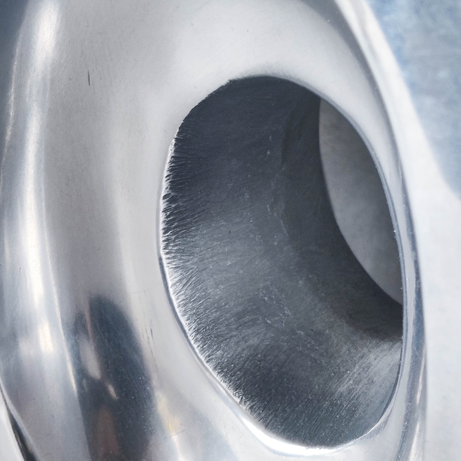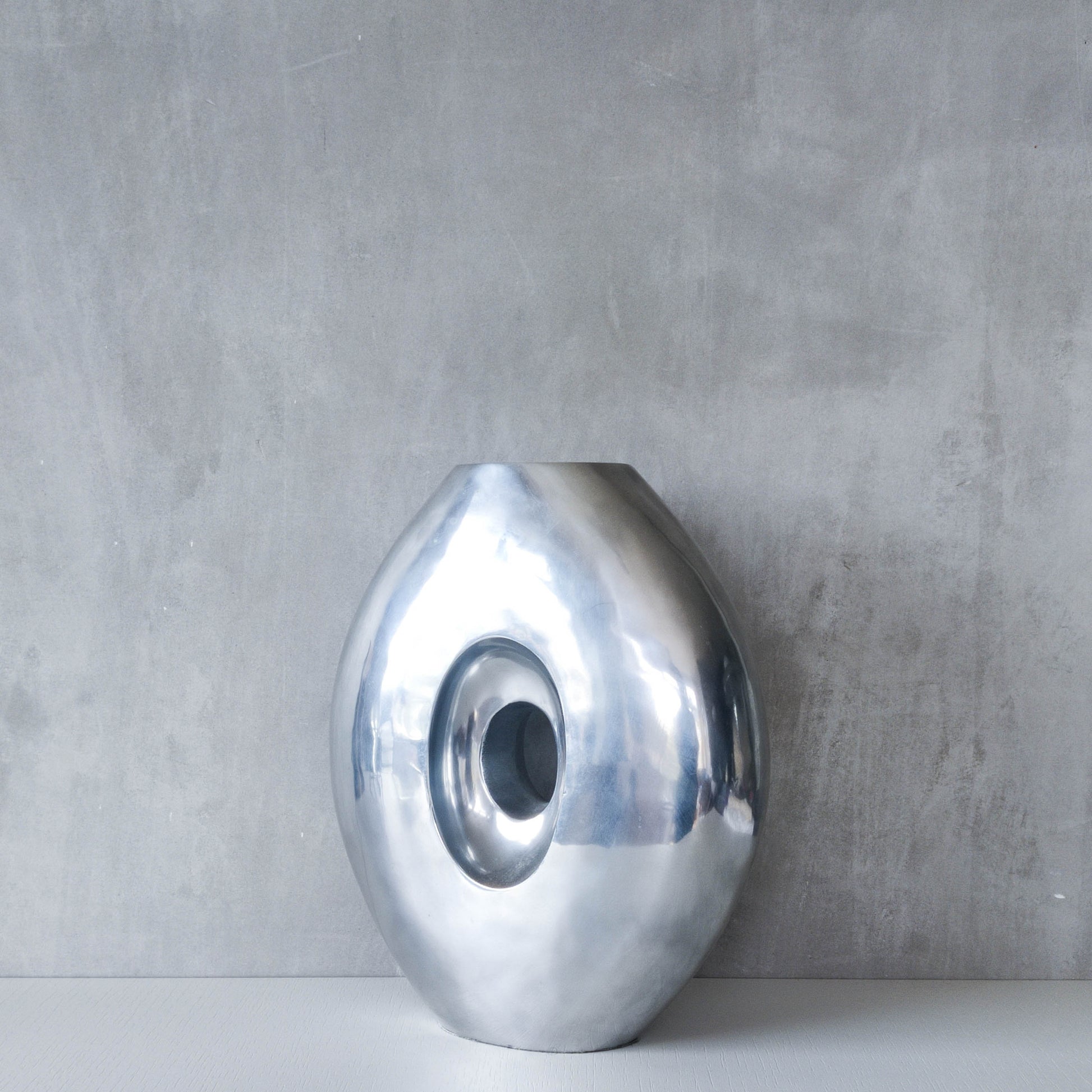 Vintage large sculptural modernist hand cast aluminium oval donut vase 32cm